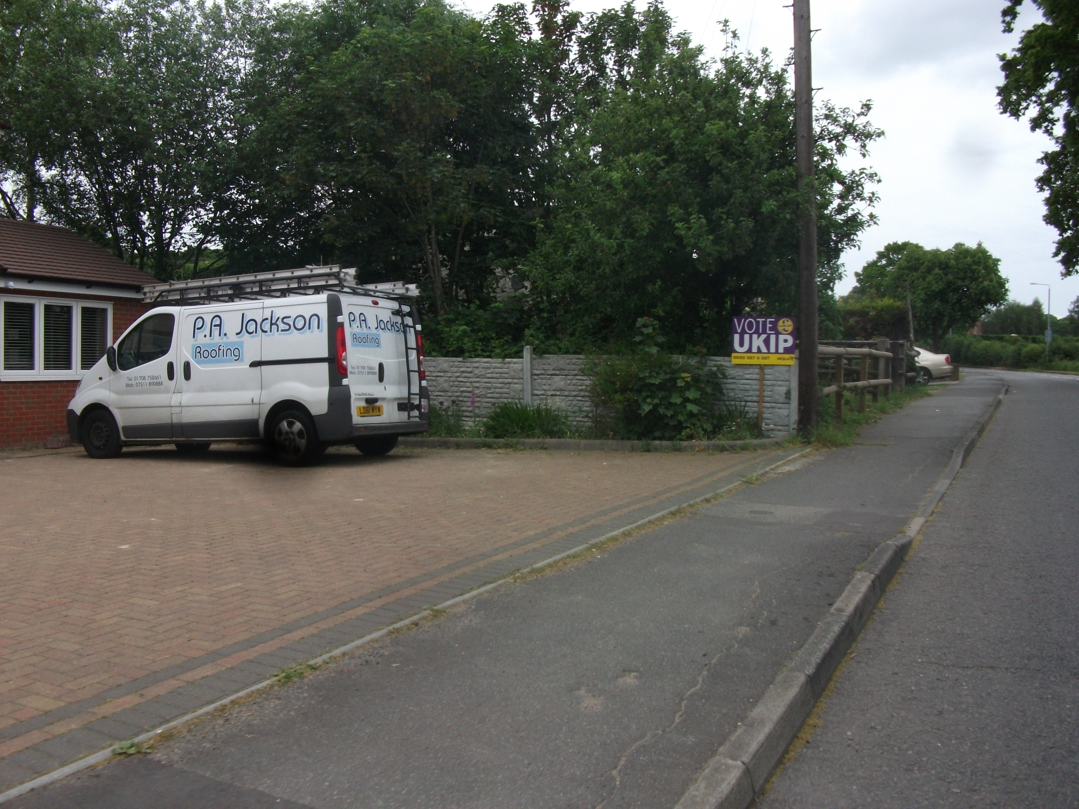 I mention all this because of what I encounter later in Harold Wood and Romford, where signs of a frustrated British tribalism appear. Out of the early 1930s’ semis competes two kinds of plastic flora: vote Conservative in blue, or vote UKIP in purple. The signs seem particularly aggressive just as I leave the largely non-white areas around Ilford, indicating some kind of invisible frontier.