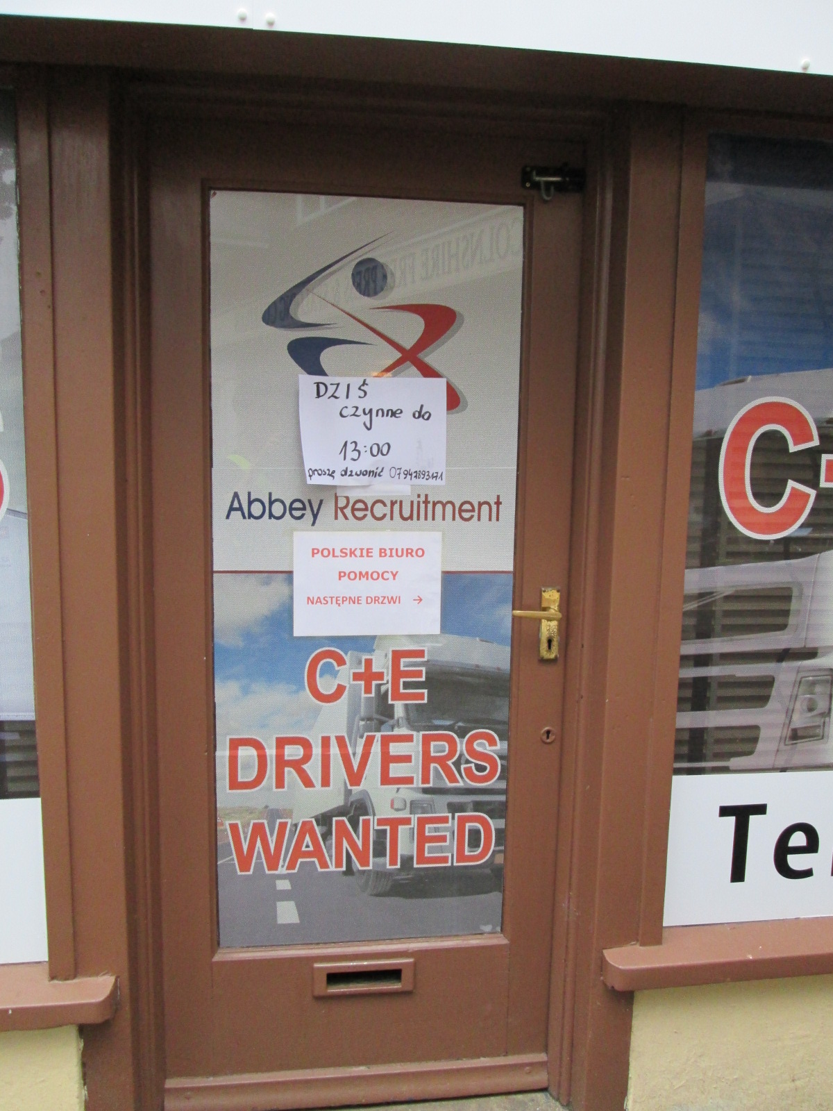 This feeling is further confirmed when I get to Spalding. On arrival it seems like another down-at-heel market town of the sort I’ve been coming across regularly, flanked with warehouses and large stores with a mediocre town centre of pubs and poundshops, Indian and Chinese takeaways, off-licences and betting shops. Yes, it is that in part (though there are few open pubs here), but it is also full of Polish shops, and employment agencies targeting Poles, with ads written in Polish.
