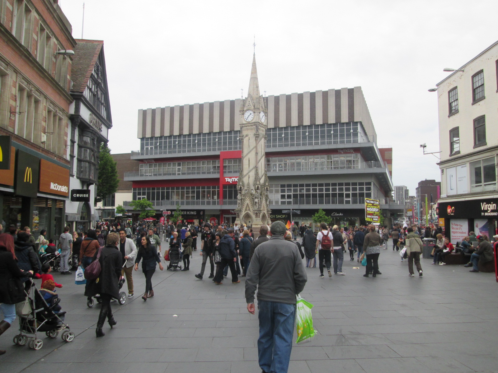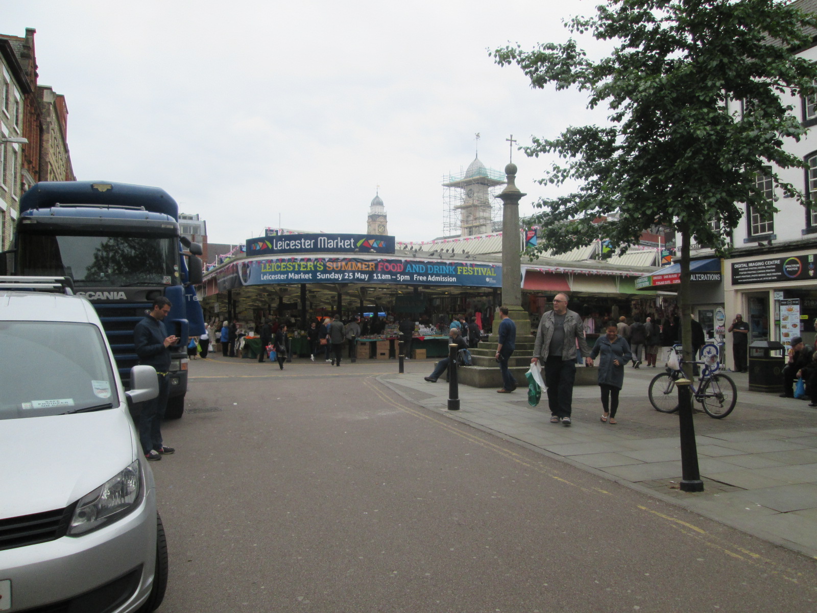 I brave the major roads back towards the town centre. I am liking Leicester a great deal. The combination of building styles and communities is a continual surprise. It is full of quirks. There is a dedicated exhibition to Daniel Lambert, once the fattest man in recorded history, who once exhibited his 50-stone bulk to passing visitors during the early 19th century in order to make money. He was a jail-keeper and dog-breeder, and as I cycle along the cobbled lanes, I picture this huge man fighting a bear in the town centre. I am told that Bradgate Park is also a mythical and beautiful place, with its sleepy deer and tumbled down manor ruins. I potter through the pedestrianized shopping precincts, where refreshingly there are a number of independent shops and restaurants and a huge market. This is not a British Town Centre.