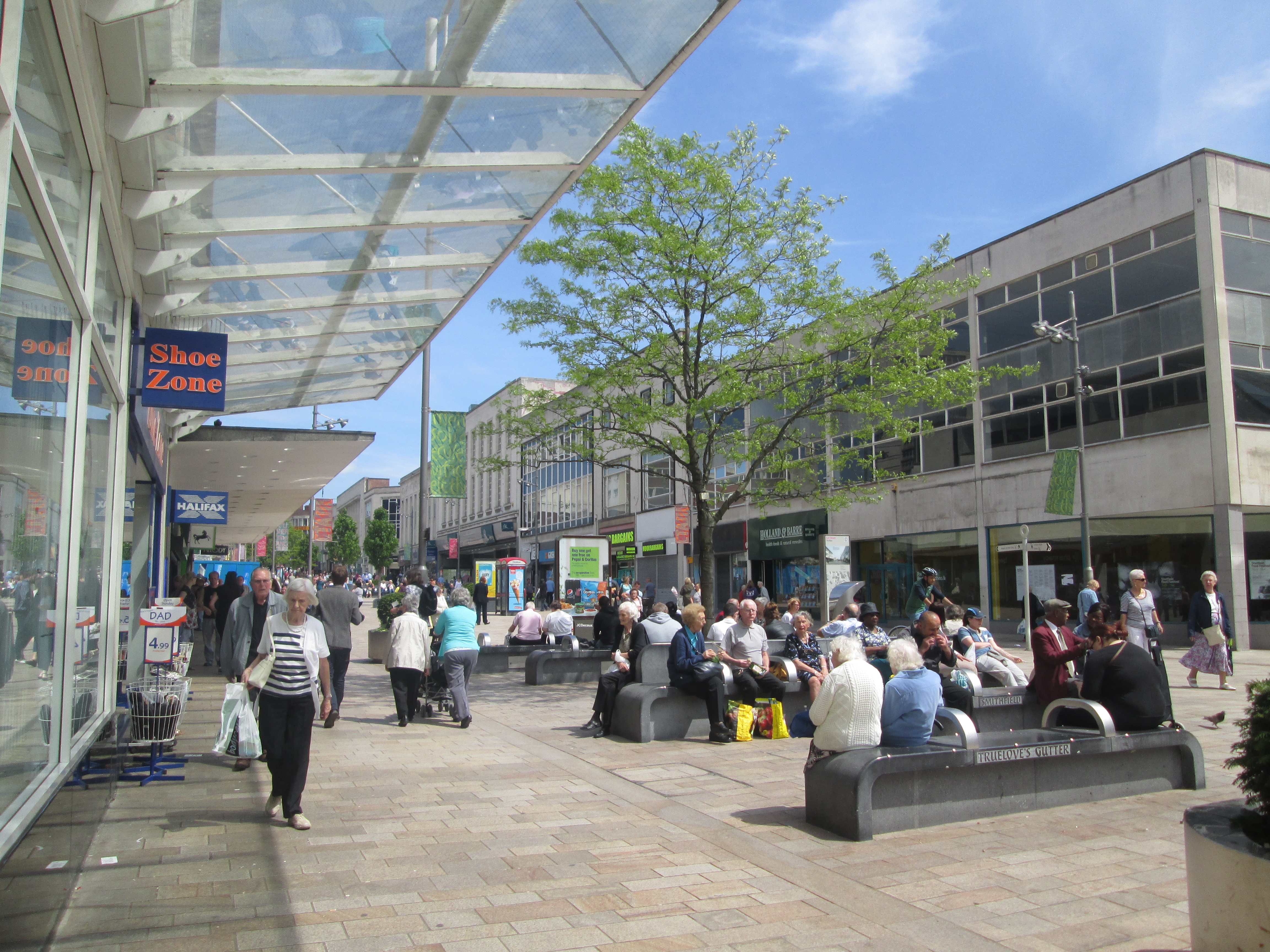 Looking for work, one has the choice of either warehouse assistant, call-centre customer service or working in a shop. ‘Ain’t much round here’, Rory tells me. He likes the town centre but warns me that the outlying areas are a bit rough. As we look around, I see pretty Victorian buildings in a depopulated city centre that, in a good era and in good weather, would make for a fine and relaxing place.