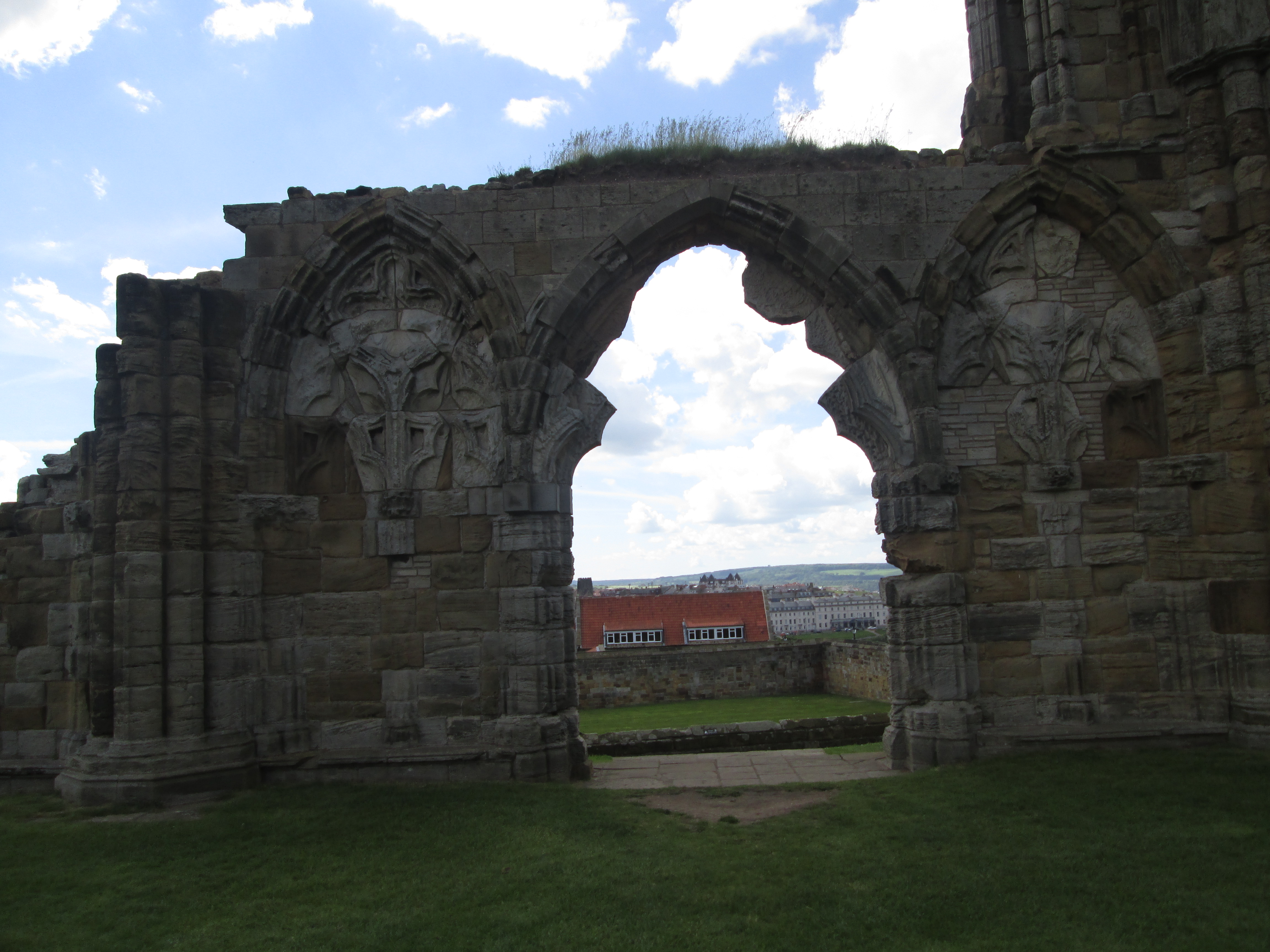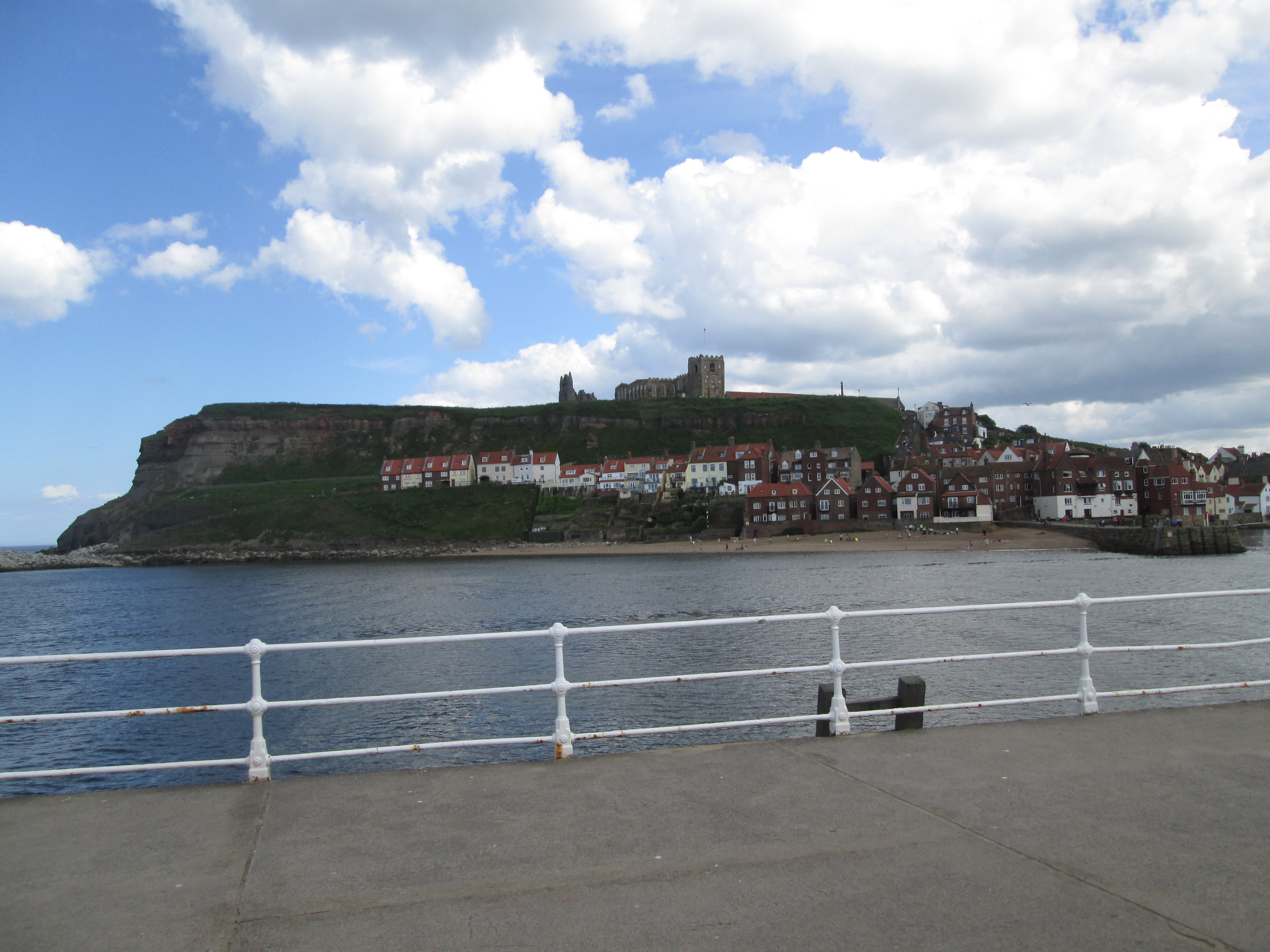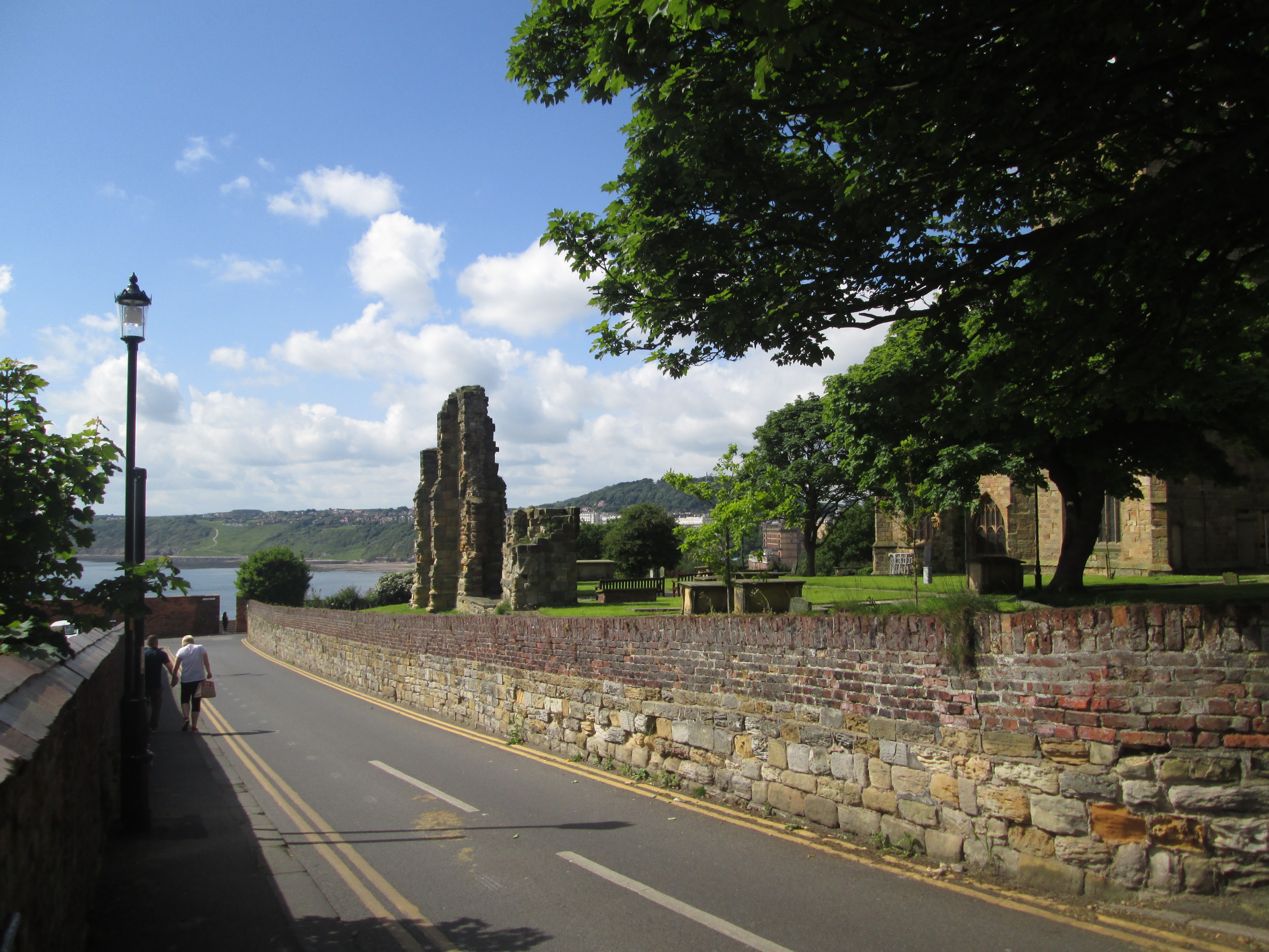 The abbey looms ahead in the distance, a curious old ruin that perches out on the cliff overlooking the dense but small seaside town. It’s pretty enough, though the abundance of visiting kids kills any atmospheric scenes of Bram Stoker’s Dracula emerging out of his nocturnal bolthole and seducing the local beauties with intensely dreamy desires. The abbey itself is expensive and not worth the entrance, to my mind. The views from beyond give enough, and the exhibition about the place is pretty incoherent and a wasted opportunity to tell a story. Compared to the free ruins of Leeds’ Kirkstall, anyway. I pull the bike down a long staircase into the town, no longer bothered with the bumps after the staircases of the Cleveland Way, and enter into the town.