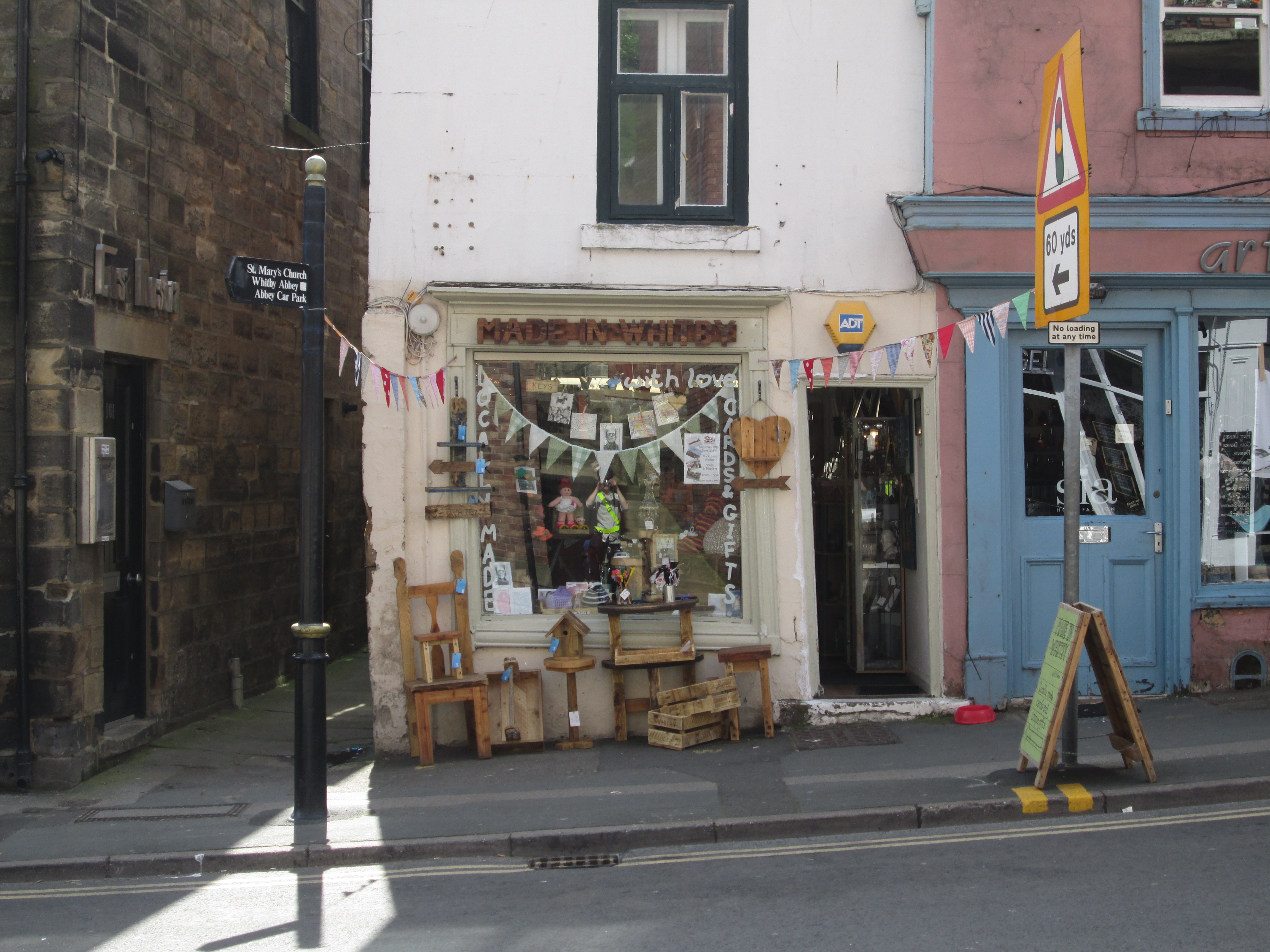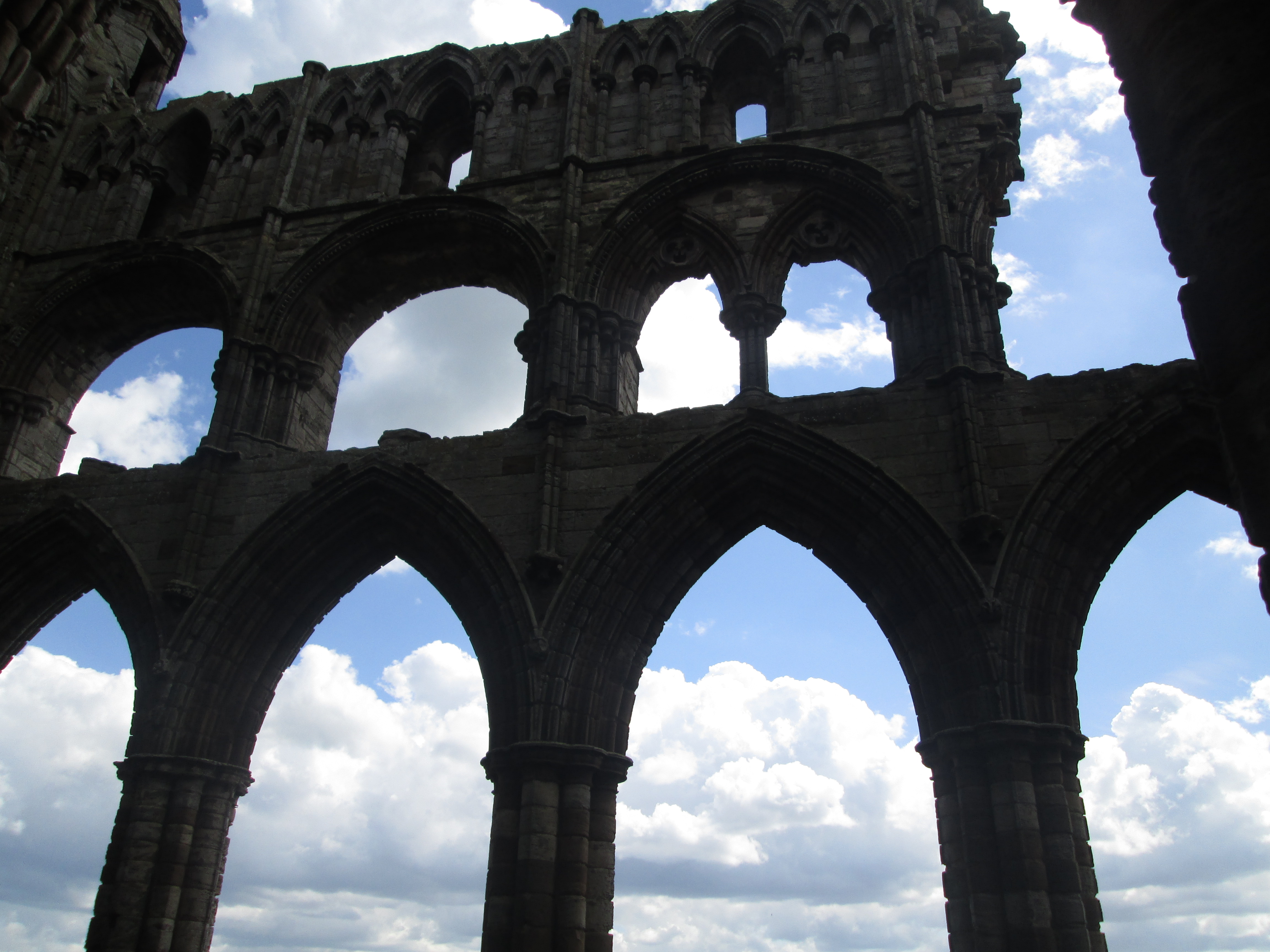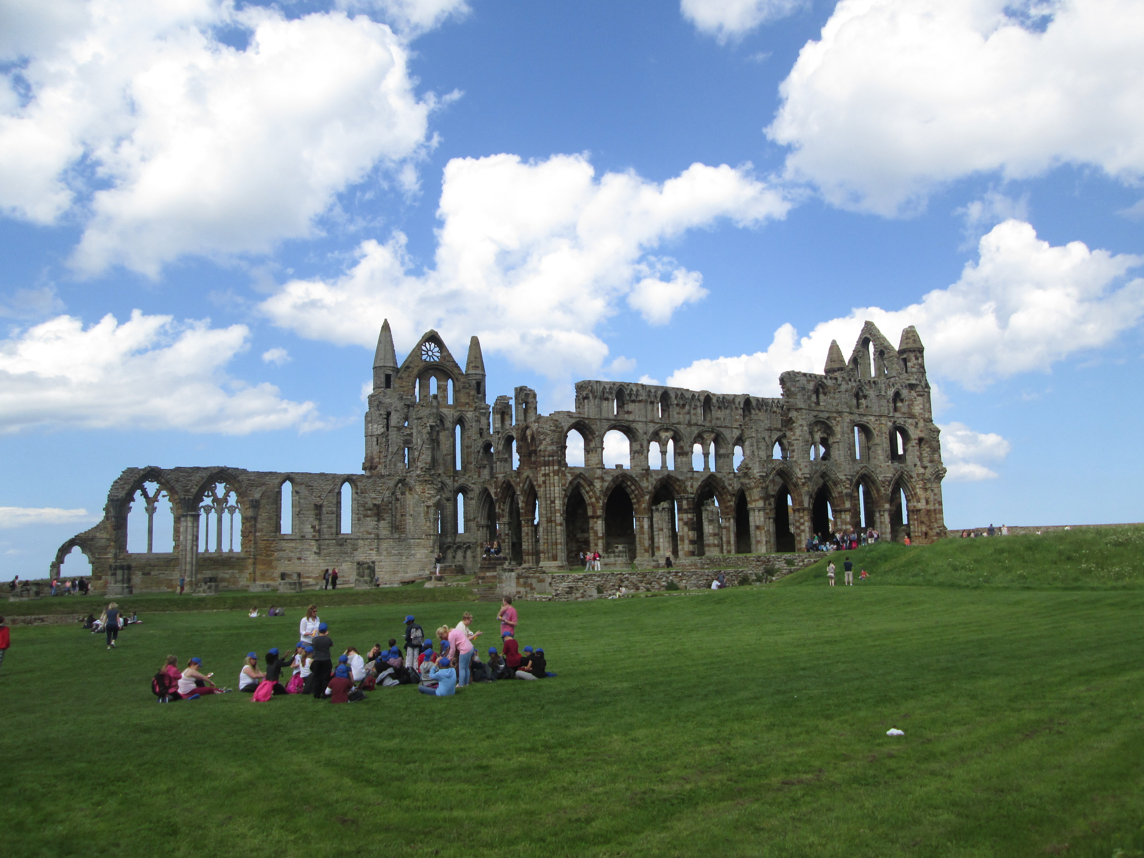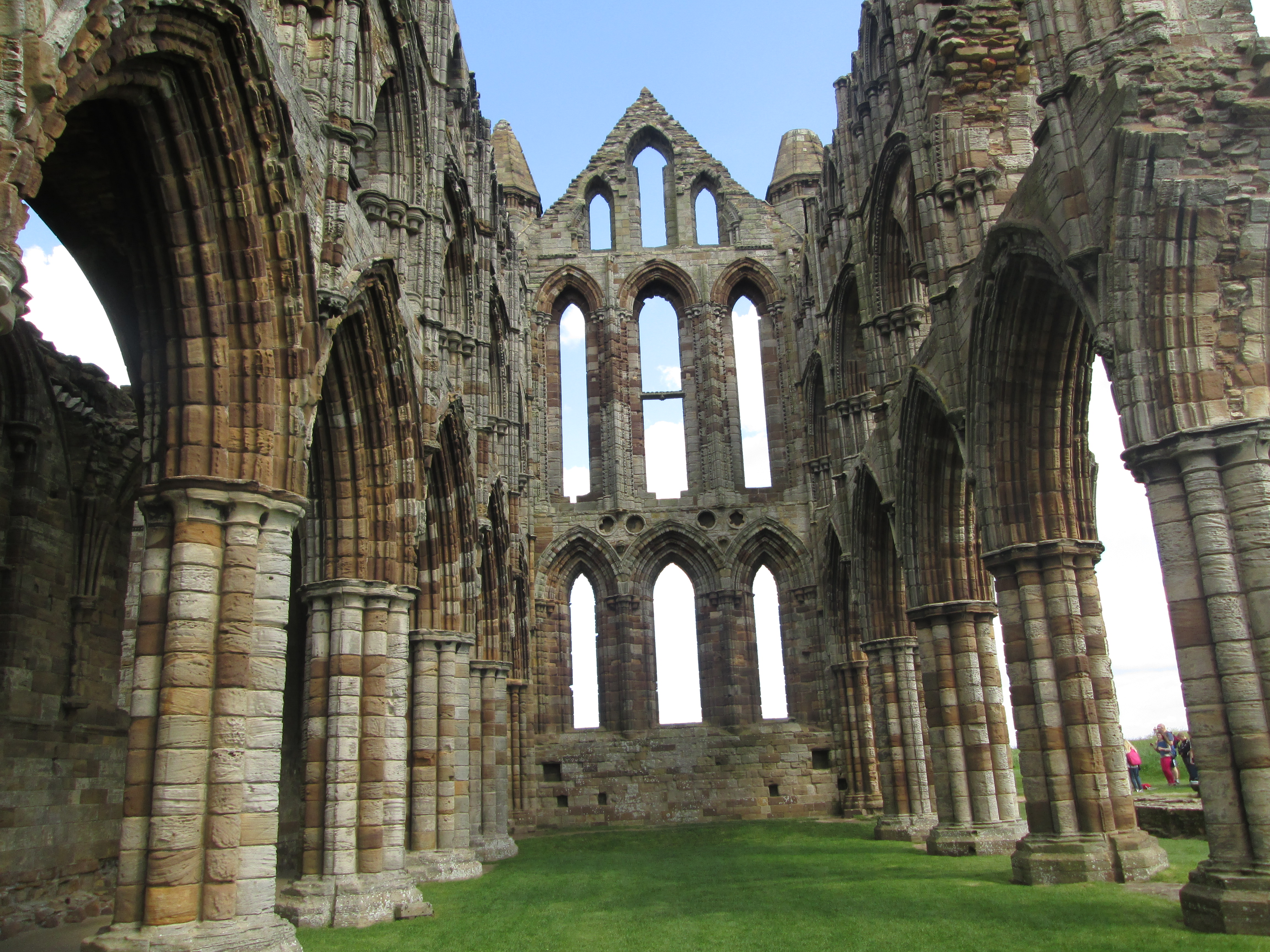 The abbey looms ahead in the distance, a curious old ruin that perches out on the cliff overlooking the dense but small seaside town. It’s pretty enough, though the abundance of visiting kids kills any atmospheric scenes of Bram Stoker’s Dracula emerging out of his nocturnal bolthole and seducing the local beauties with intensely dreamy desires. The abbey itself is expensive and not worth the entrance, to my mind. The views from beyond give enough, and the exhibition about the place is pretty incoherent and a wasted opportunity to tell a story. Compared to the free ruins of Leeds’ Kirkstall, anyway. I pull the bike down a long staircase into the town, no longer bothered with the bumps after the staircases of the Cleveland Way, and enter into the town.