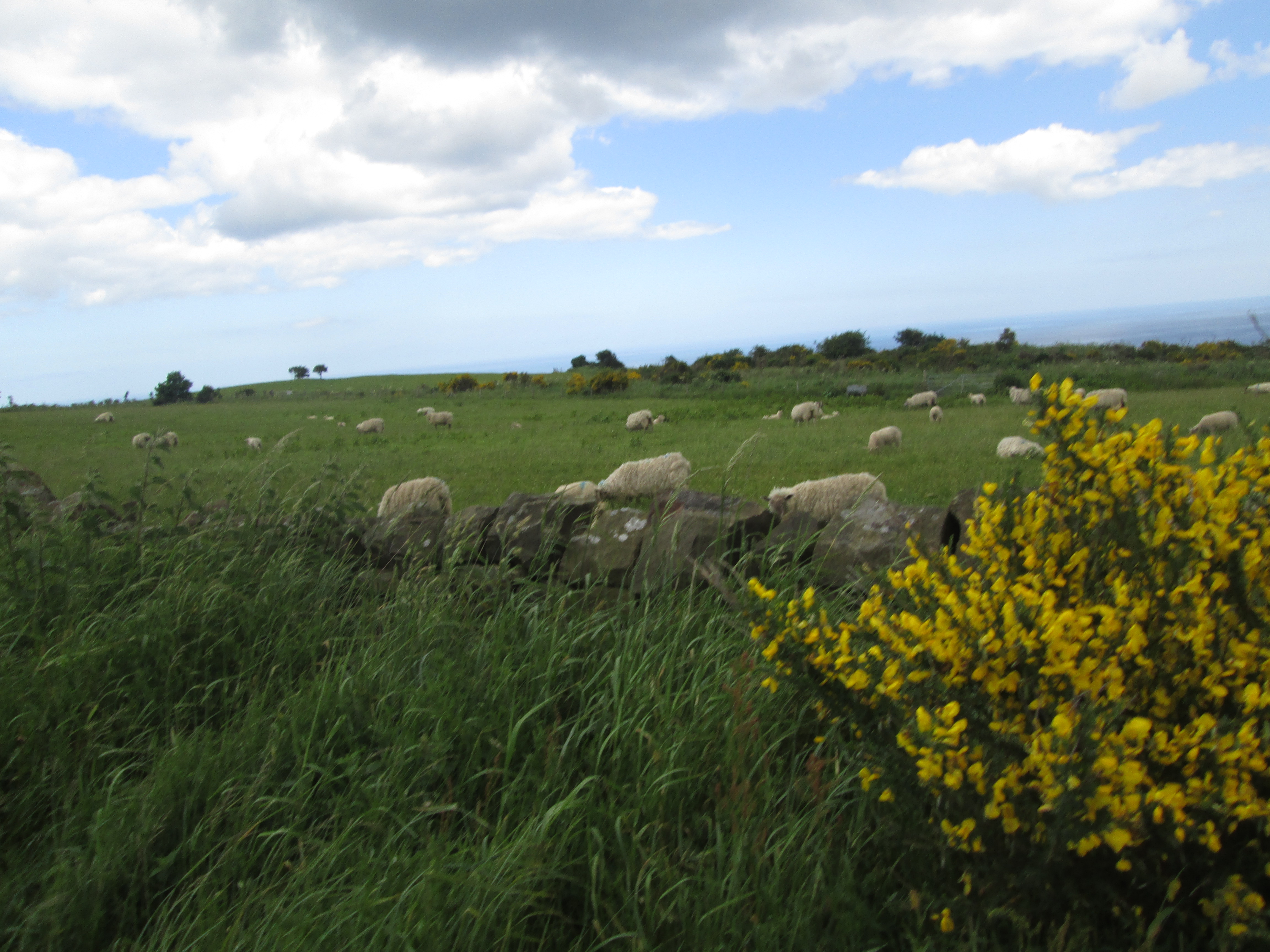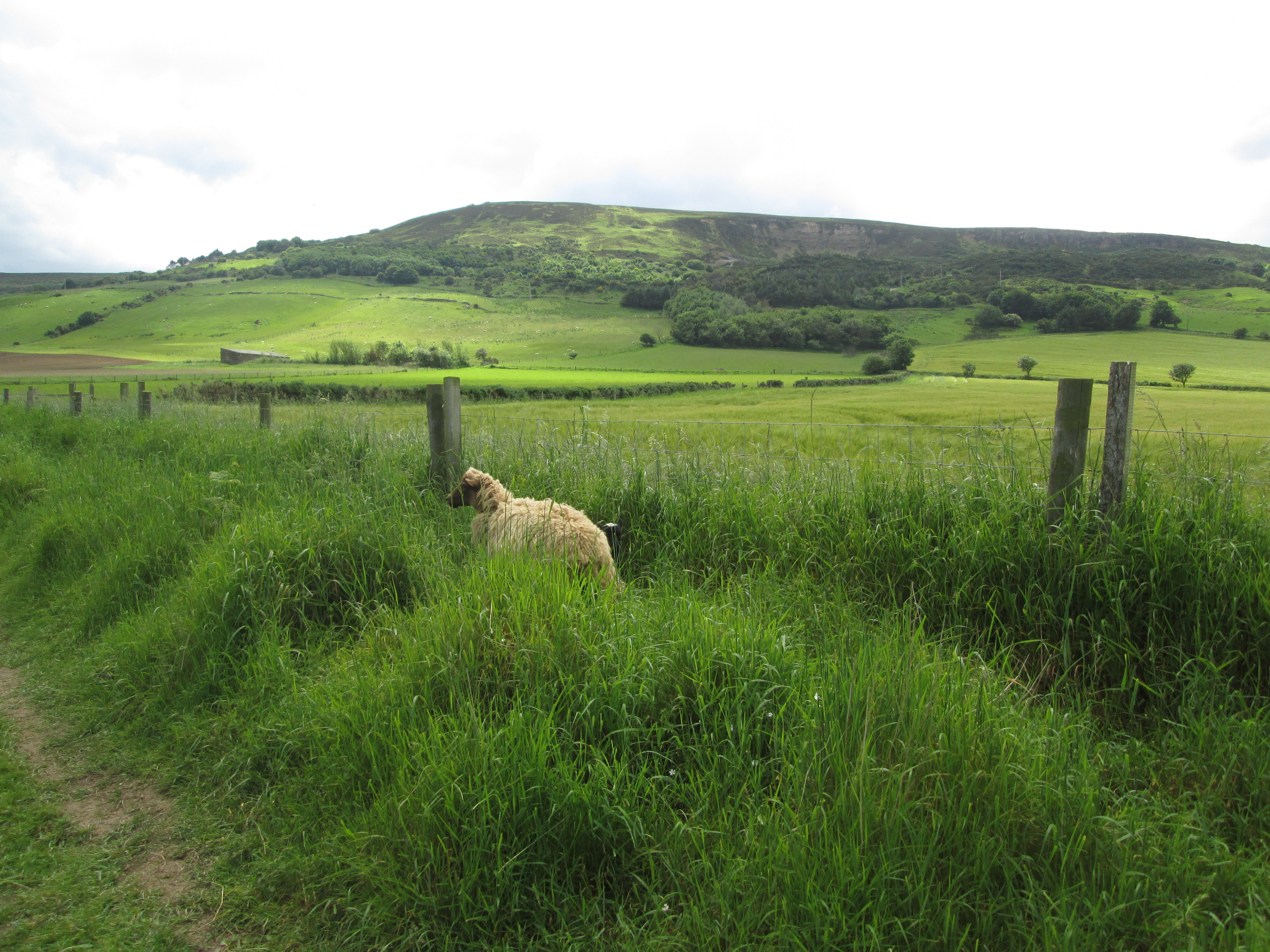 I leave Scarborough and follow a cycle trail up to Whitby. I’m loathe to break my own rules but it’s the only route that will take me up to Robin Hood’s Bay, and along what I’m told is some spectacular coast. It’s along an old rail route so the track is a little bumpy, built on cinders rather than crushed stone, but thankfully flat. I pass along some very pretty countryside scenes, with lazy robins and desperate butterflies, happy sparrows and other songbirds flitting across hedgerows and, beyond, sheep idly chewing grass and gazing up at a whizzing mix of metal and man. I pass through little woods to my left and beautiful sea coastline to my right. Meandering thoughts get interrupted by one dale where all hell has broken loose, as a murder of crows wages war against a smaller group of birds. The natural world is never totally peaceful.