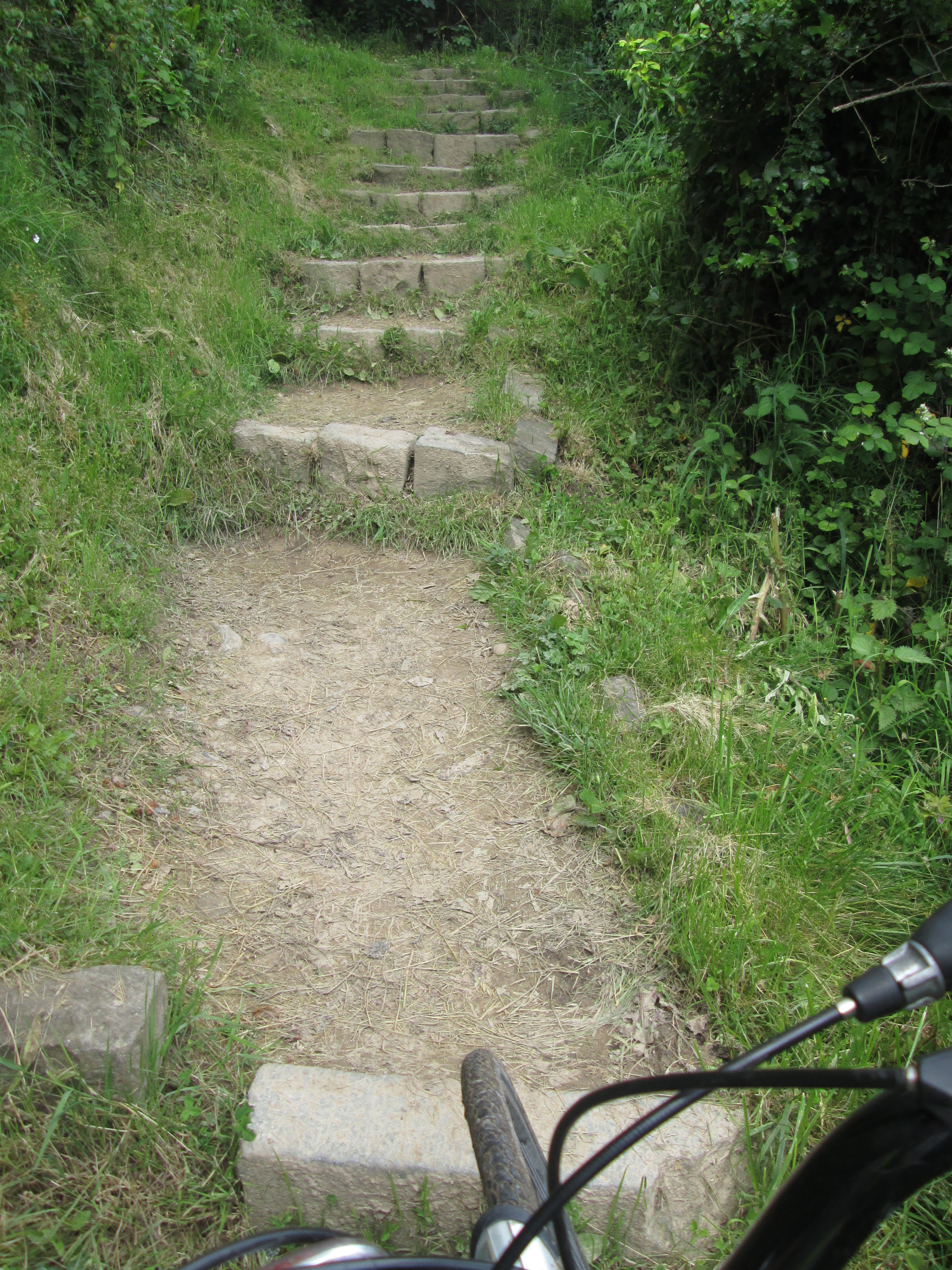 I curse myself, think about offering up a prayer to whichever local sympathetic deity might assist me, and wear on. It is absolutely exhausting. The bike is struggling and I can barely push it up some of these steps and hills. The tide has come in, flooding Stoupe Beck Sands, a stretch of beach that might have provided a short cut, and I am finally compelled to lift everything up what feels like a large pyramid of jutting, broke-up steps. It is a moment of intense agony and despair.