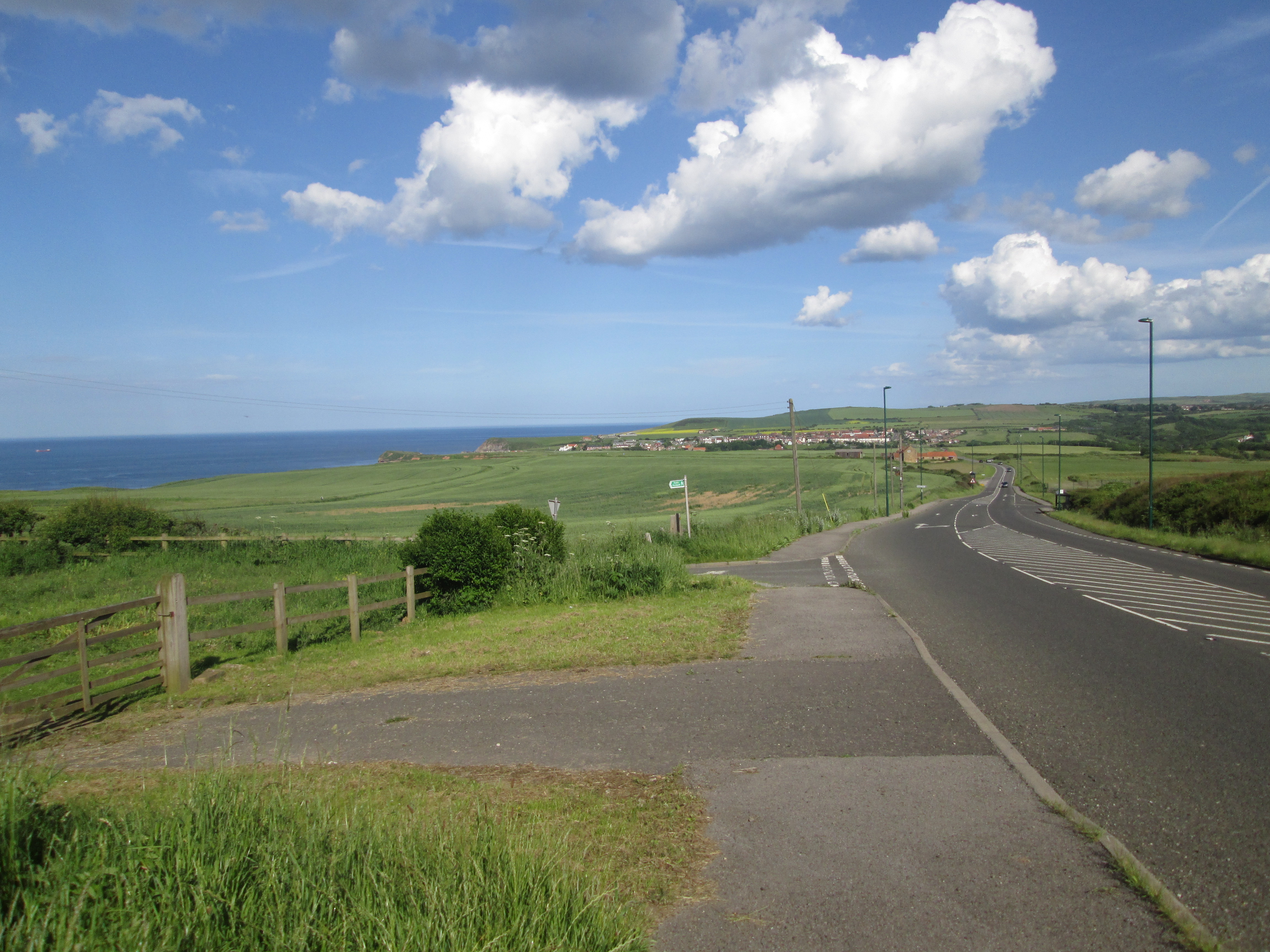 I hold onto this thought, and start to mouth it and shout it as I reach the summit of this monstrous mountain. My chain falls off at the top, but I can handle it. I hold onto those thoughts, of the idea of agape, a love for all human beings, and a little later, the hills give in to a smooth rolling plateau and, later, a nice swooping set of declining roads. I pass through Loftus, a large village-town of a kind I will continue seeing on this coast. Largely composed of a main road with terraced housing facing each other, with a few roads leading off, these communities were usually built around local mines, often going several miles under the ocean. Today there is very little. I pass groups of bored teens and the place seems rough and ready. Not much is open and clearly there’s little to do. One 15-year old swigs back a can of Stella outside an offy, and I think to myself, fair enough. I’m inclined to join him, but my travails today have set me back some hours and I have arranged a time to meet tonight’s host.