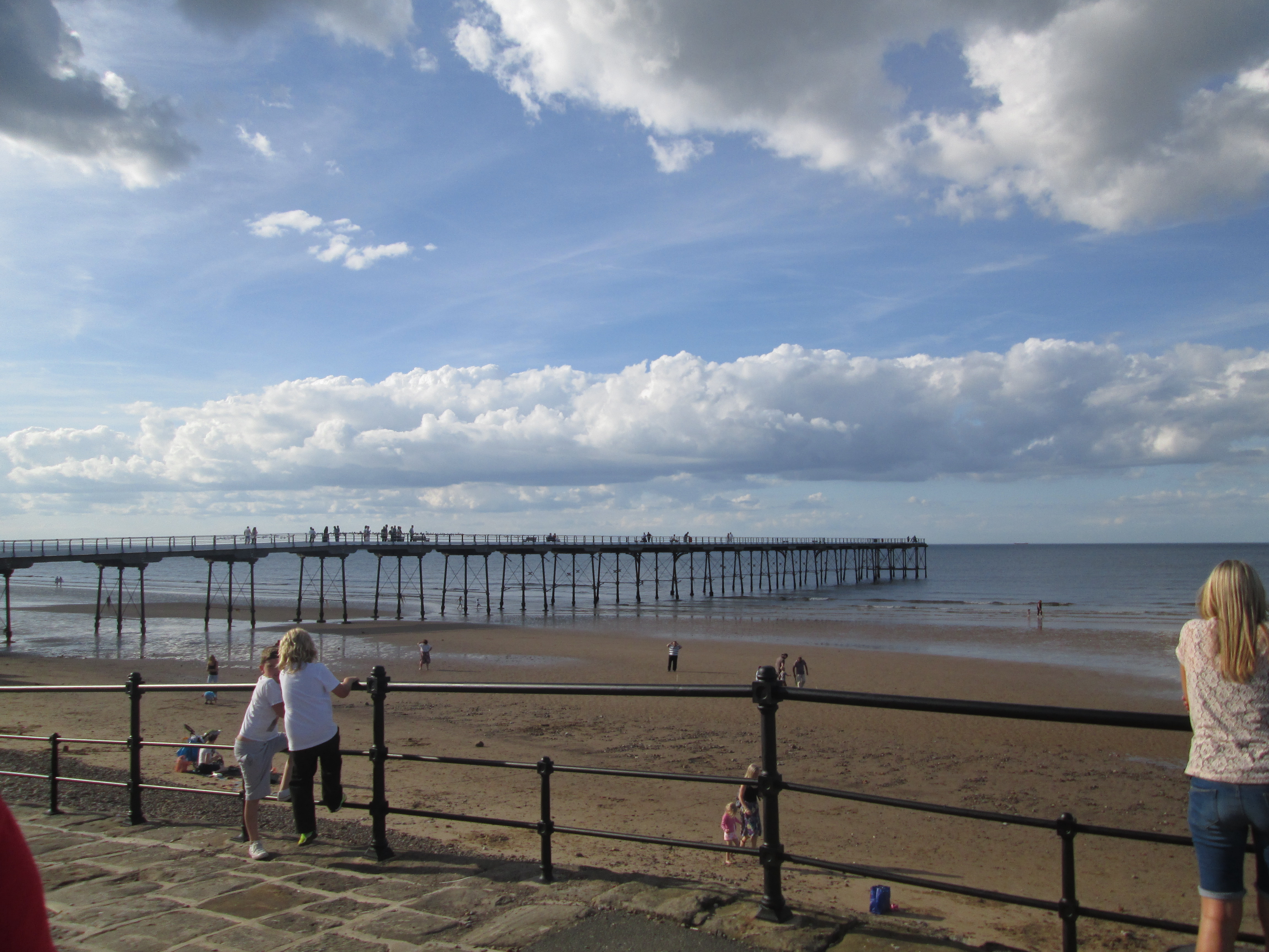 I reach Saltburn, a small Victorian seaside resort with little about it today. A pier has been restored recently but seems in disrepair again, and there’s a chippy and a few grotty hotels clustered together. It’s on hard times and is a bit ugly, though the number of families playing about on the golden sands gives an air of joviality to the area. I’m famished and queue up for chips. I’m hoping for curry sauce, so I ask if it’s vegetarian. As it turns out, all the chips are cooked in beef dripping. This will be another recurring thing around the north-east. (Another thing is the frequency of public loos, which to the male traveller on a budget, beats leaking in hedges).