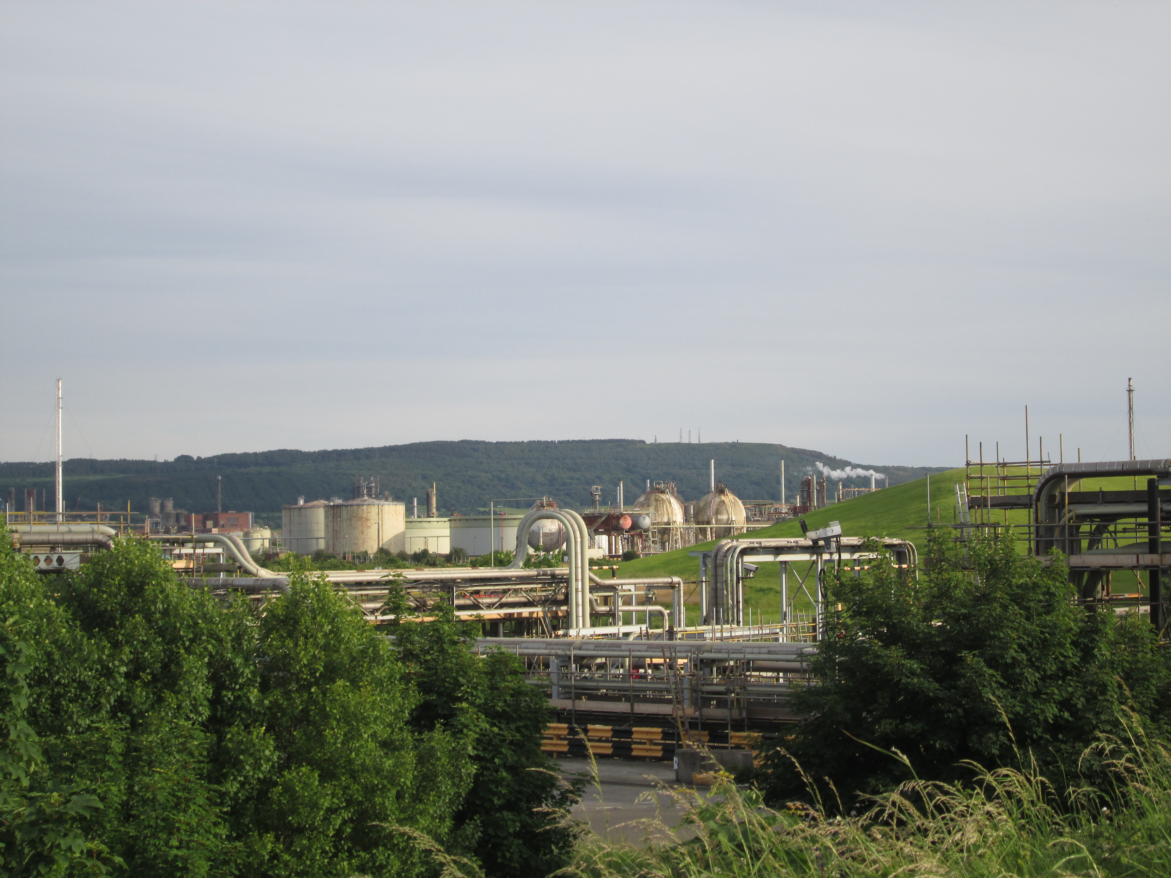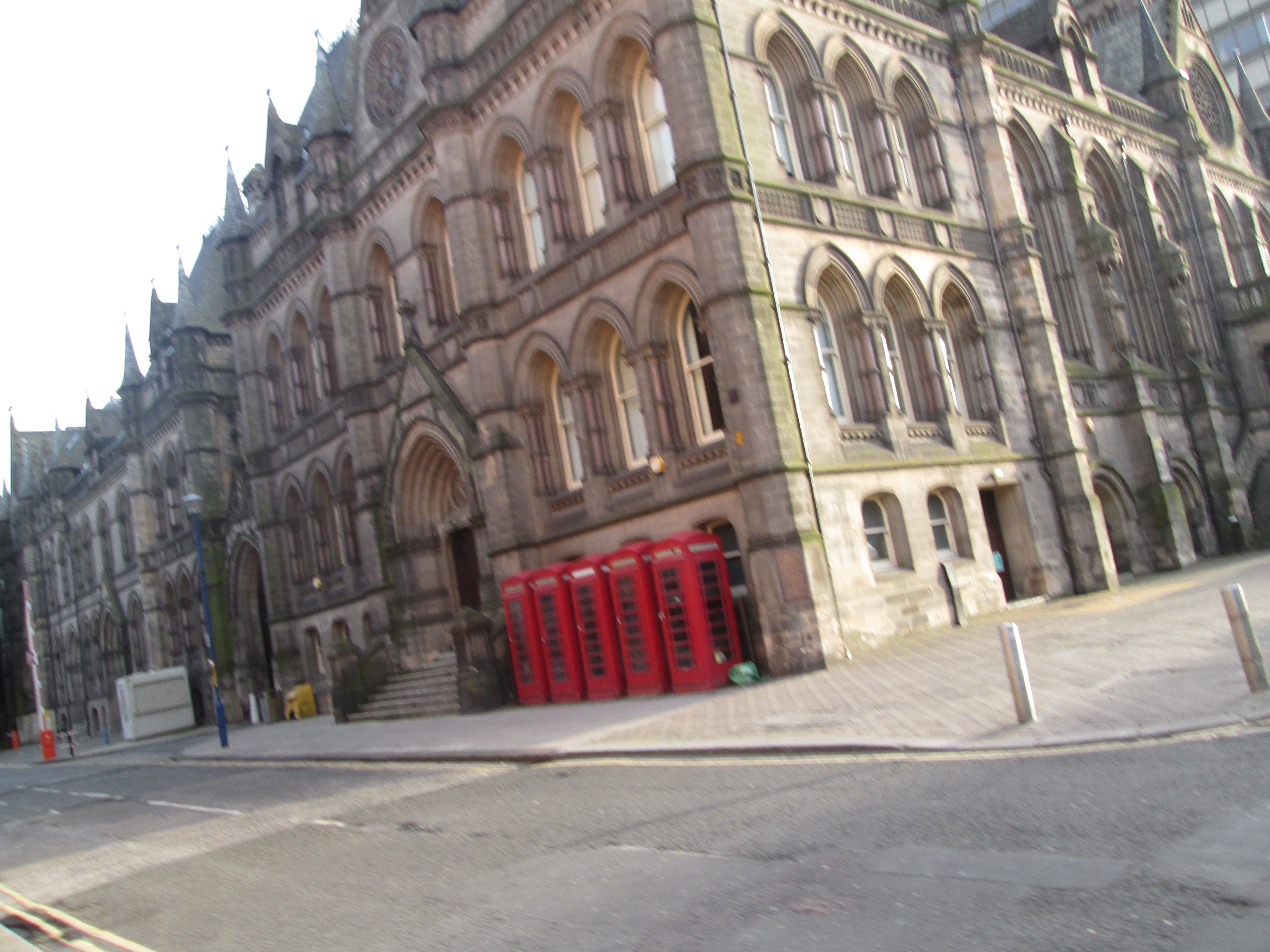No, the journey leaving Redcar is interesting. I pass Corus and what remains of the steel-works, along an intensively industrial landscape that intrigues me. I eventually make it into Middlesbrough, a small town that spills out its suburbs into the roads. I follow a cycle route that has famously confused everyone who has passed before. Mike Carter in One Man and his Bike writes about being advised to avoid it, as it runs through a council estate and is full of broken glass. Lo, the path is covered in broken things and old refuse and incoherently ends in the South Bank estate. I have no idea where to follow, and decide to get back on the A-road which I can at least be sure leads somewhere. After a time I make it into the deserted town centre, and wait by the old town hall for Janet, the mother of one of my good friends, to arrive.