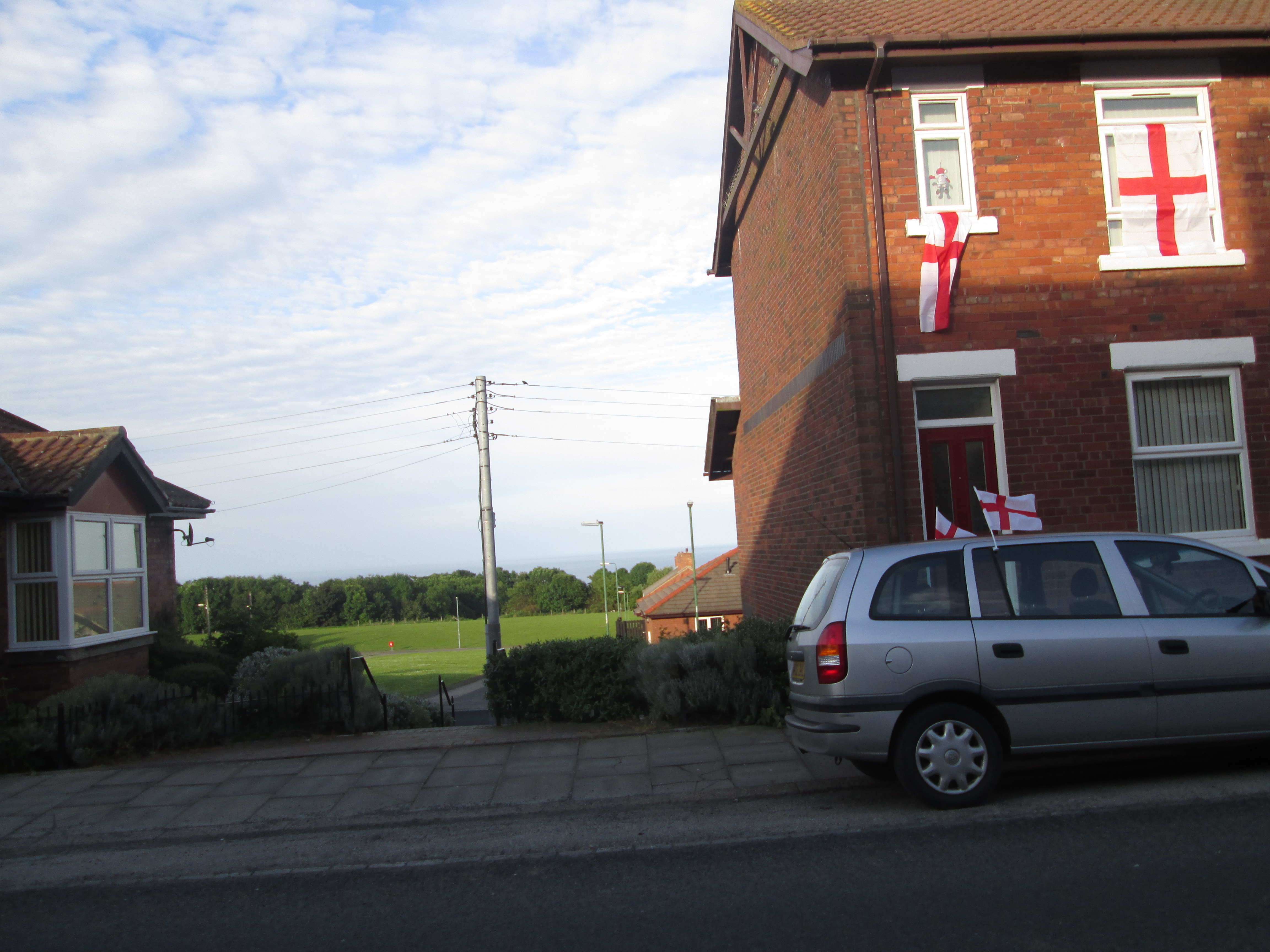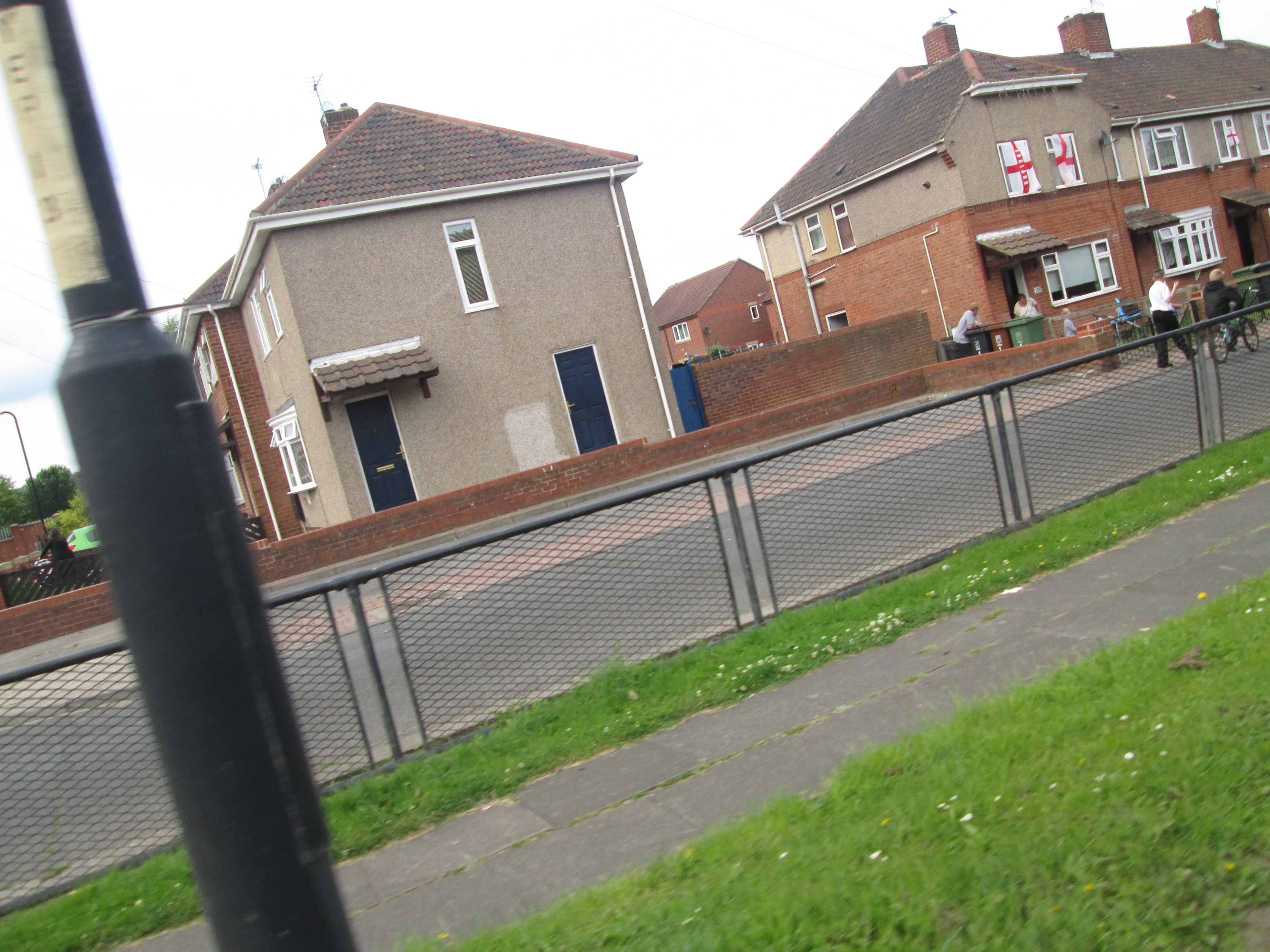 So, I awake in Middlesbrough, where I’ve stayed at the place of Joe’s family, a mate and former work colleague, who are all away. It’s a comfortable terraced house situated on a large council estate, and I take some time to have a long bath, the first on this trip and, oh man, absolutely wonderful. The place is situated in Acklam Garden City, or just ‘Acklam’, a suburb to the south-west with long low-level terraces and the occasional square stretching into the distance. One nearby has been decorated with St. George flags to celebrate the World Cup that’s about to start.