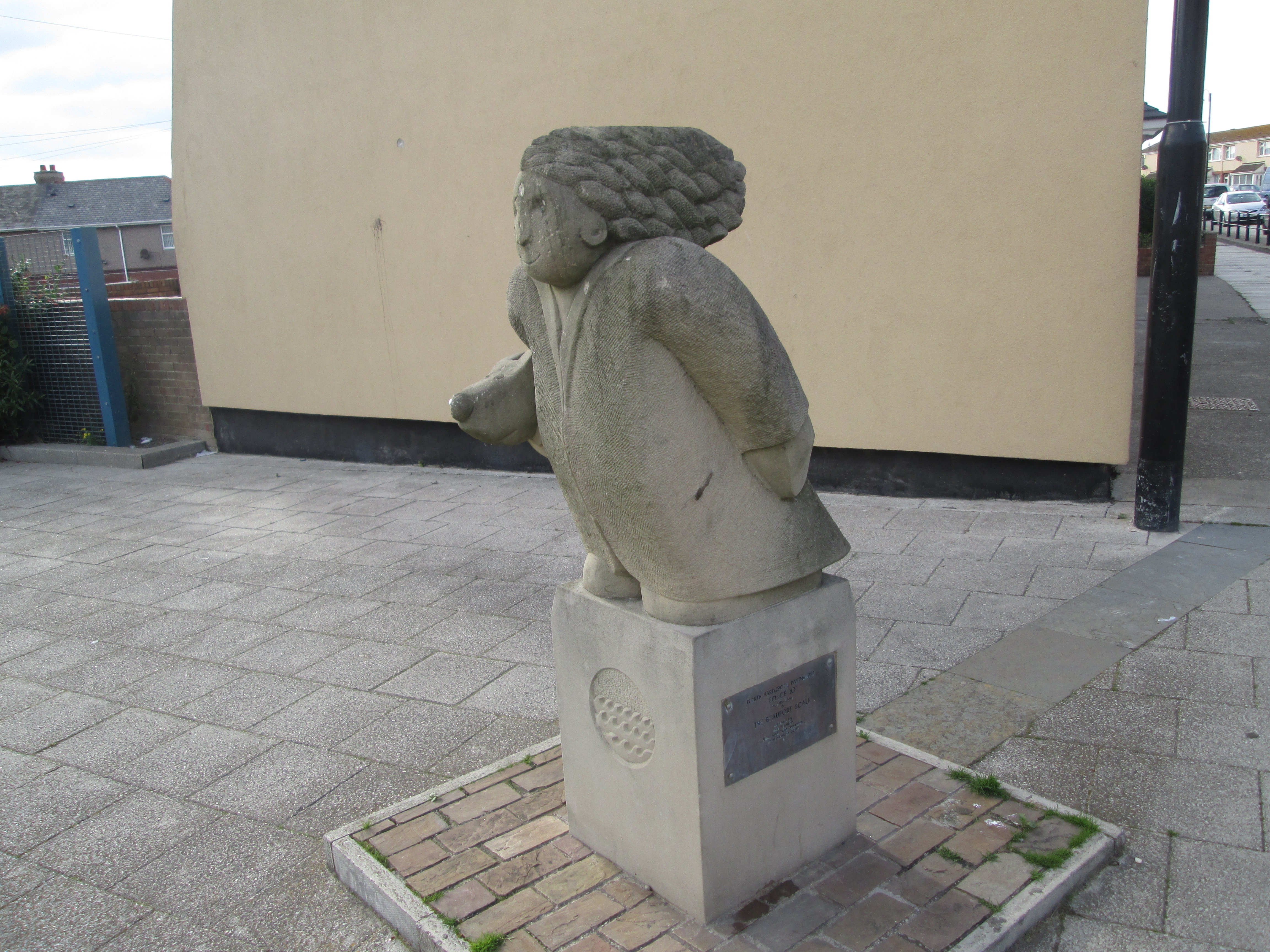 I head west and detour up to the Headland, the historic centre of Hartlepool. A group of terraced communities are bunched together on this spurt of land, and I pass by peaceful houses and boarded up remainders of Victorian philanthropy. I see a pub with perhaps the best name so far, the Harbour of Refuge, and even stumble across an Andy Capp statue! Andy Capp’s an absurd and somewhat offensive comic character, and the strips that have appeared in the Daily Mirror since 1957 have never made me laugh. He’s a lazy, stereotypically working-class man from Hartlepool who rarely works, gets angry about sports, is often drunk and, until recently, beat his wife. It neatly confirms many of the negative clichés about the north that people in the south might like to believe: fecklessness, poverty, idleness, intemperance, and the rest. But the character’s produced with love too, and people seem to have no truck with the ridiculousness of his exploits. It’s grey, and so is the randomly-placed statuette here.