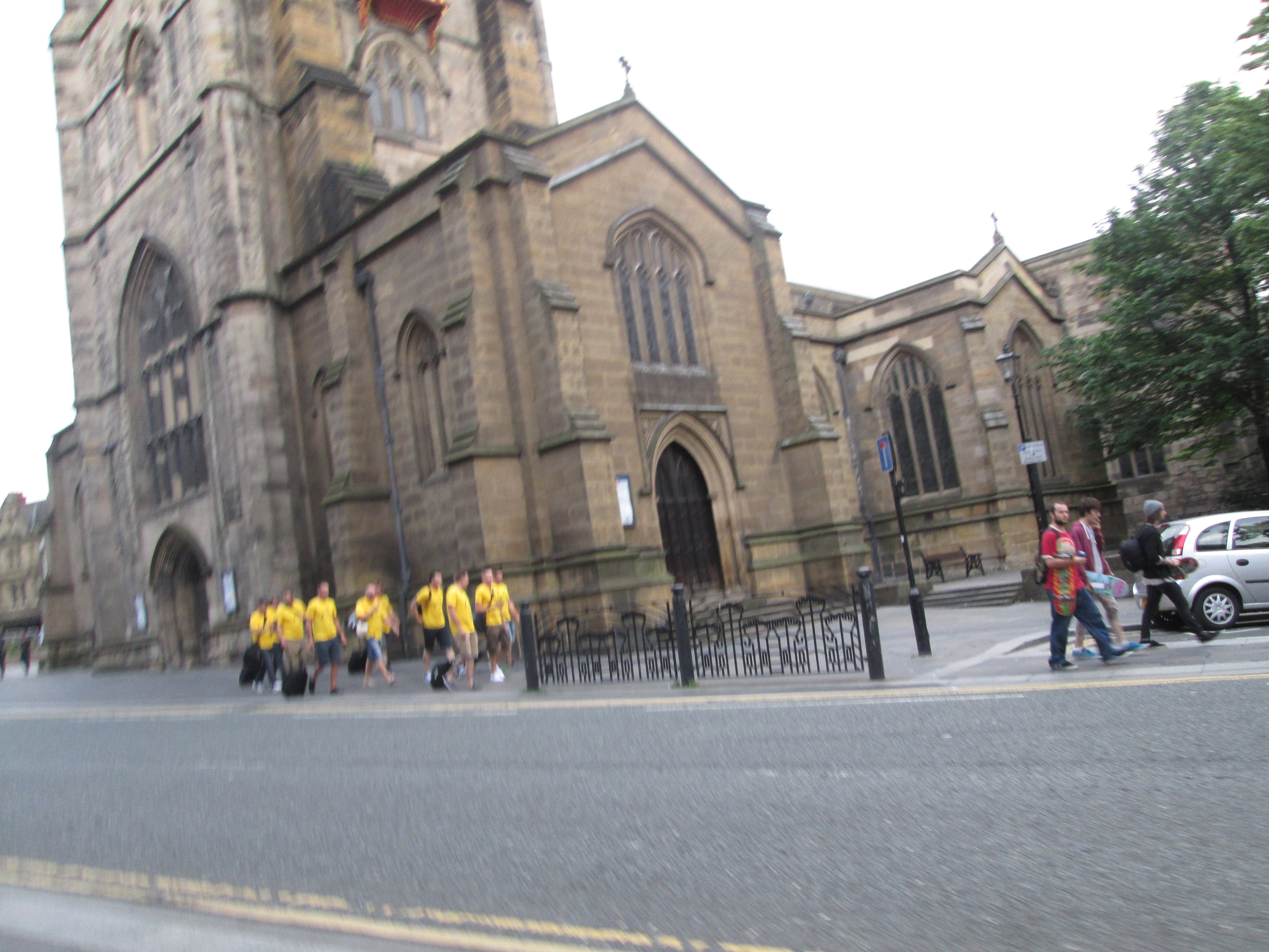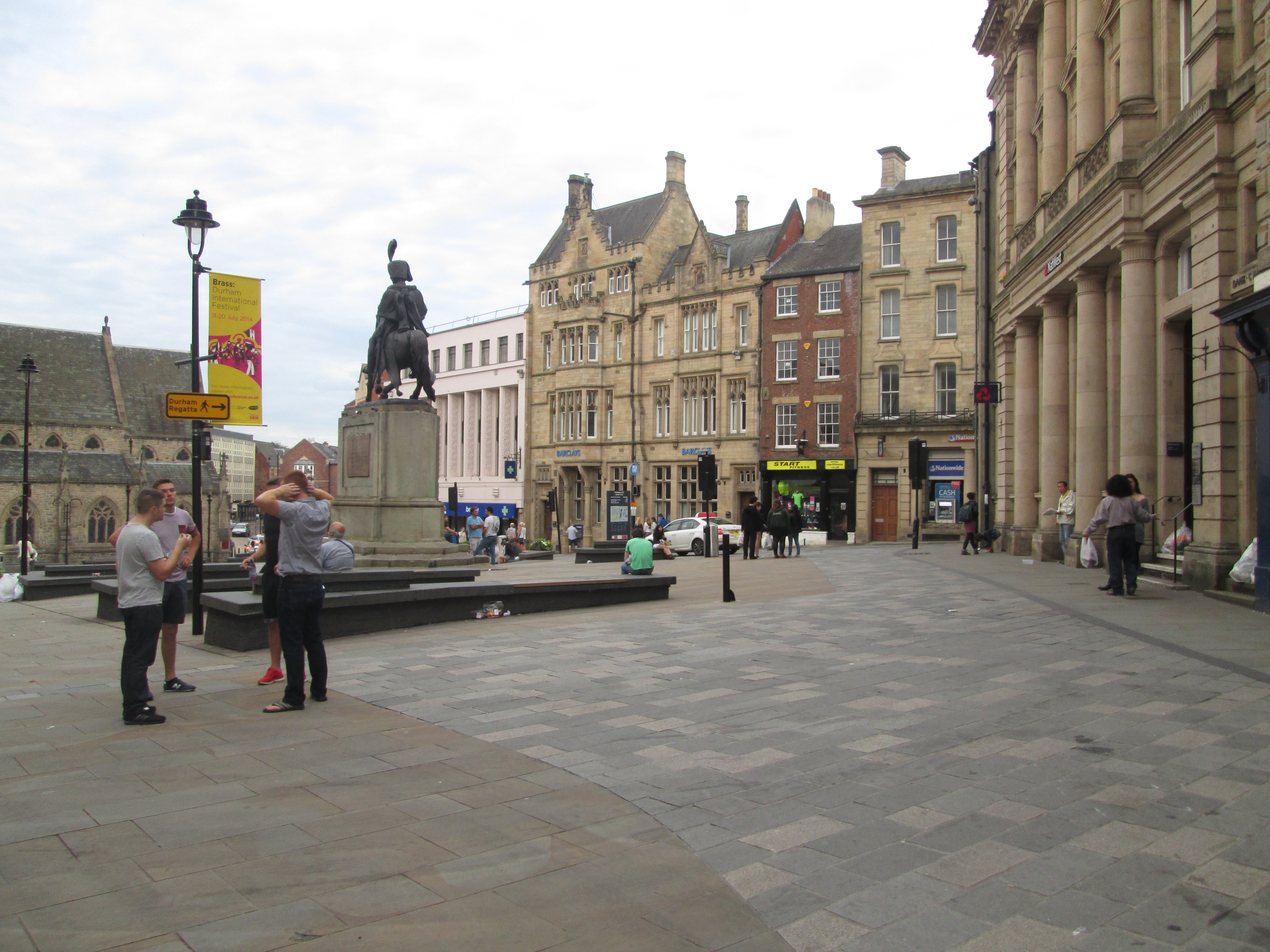 I absorb the lively town centre through each sensory organ, laughing a little, baffled mostly. I spot the town’s minuscule and bland cathedral, and wander about the pretty Georgian-looking town centre, characterised by a yellow sandstone one sees on most central buildings. I drift up a pedestrianized shopping street, characterised by the most unimaginative of British Town Centre stores. It’s a bit hard to like the place. A drunk man interrupts the chatter of his surrounding family to hail me.
