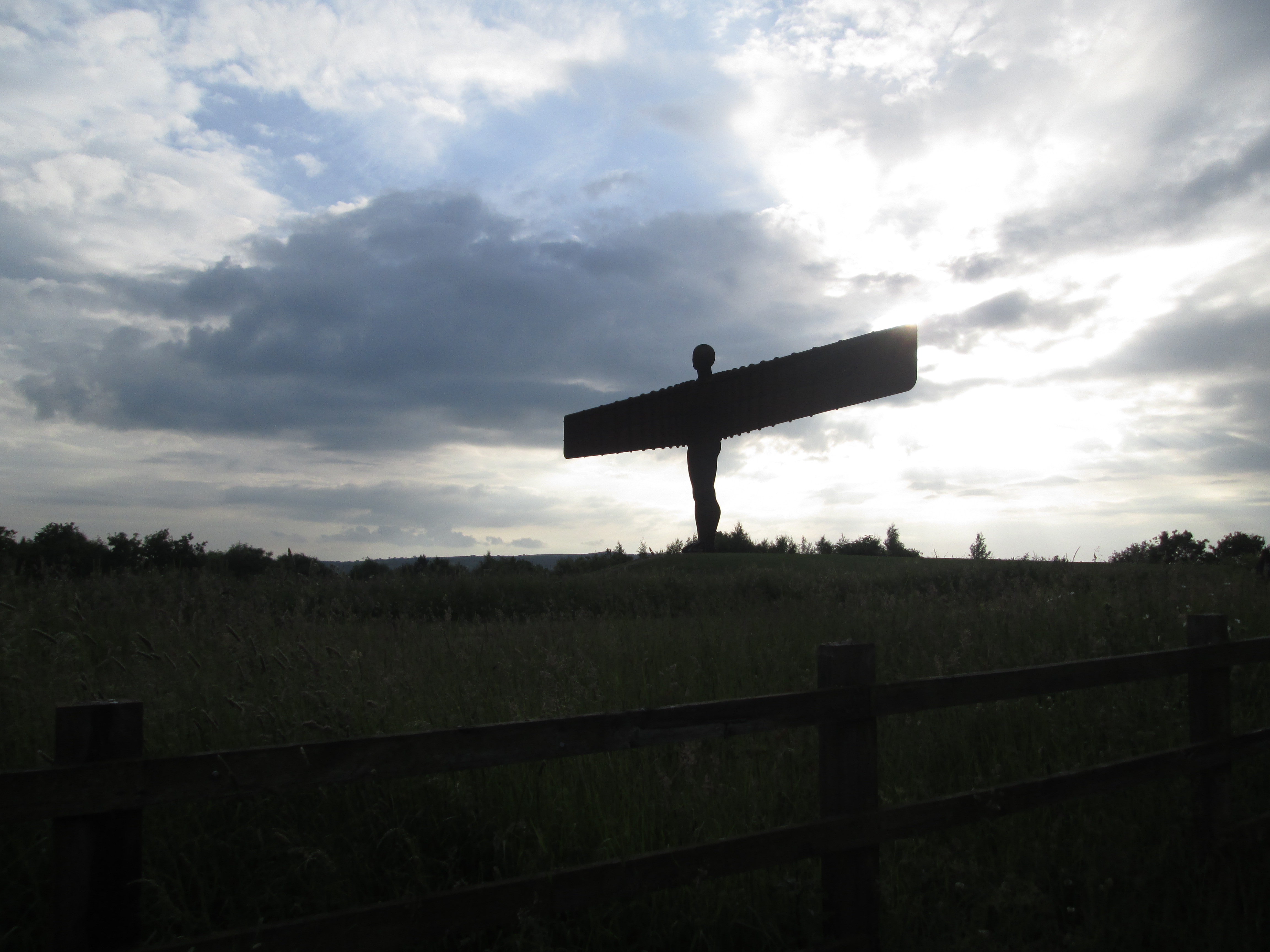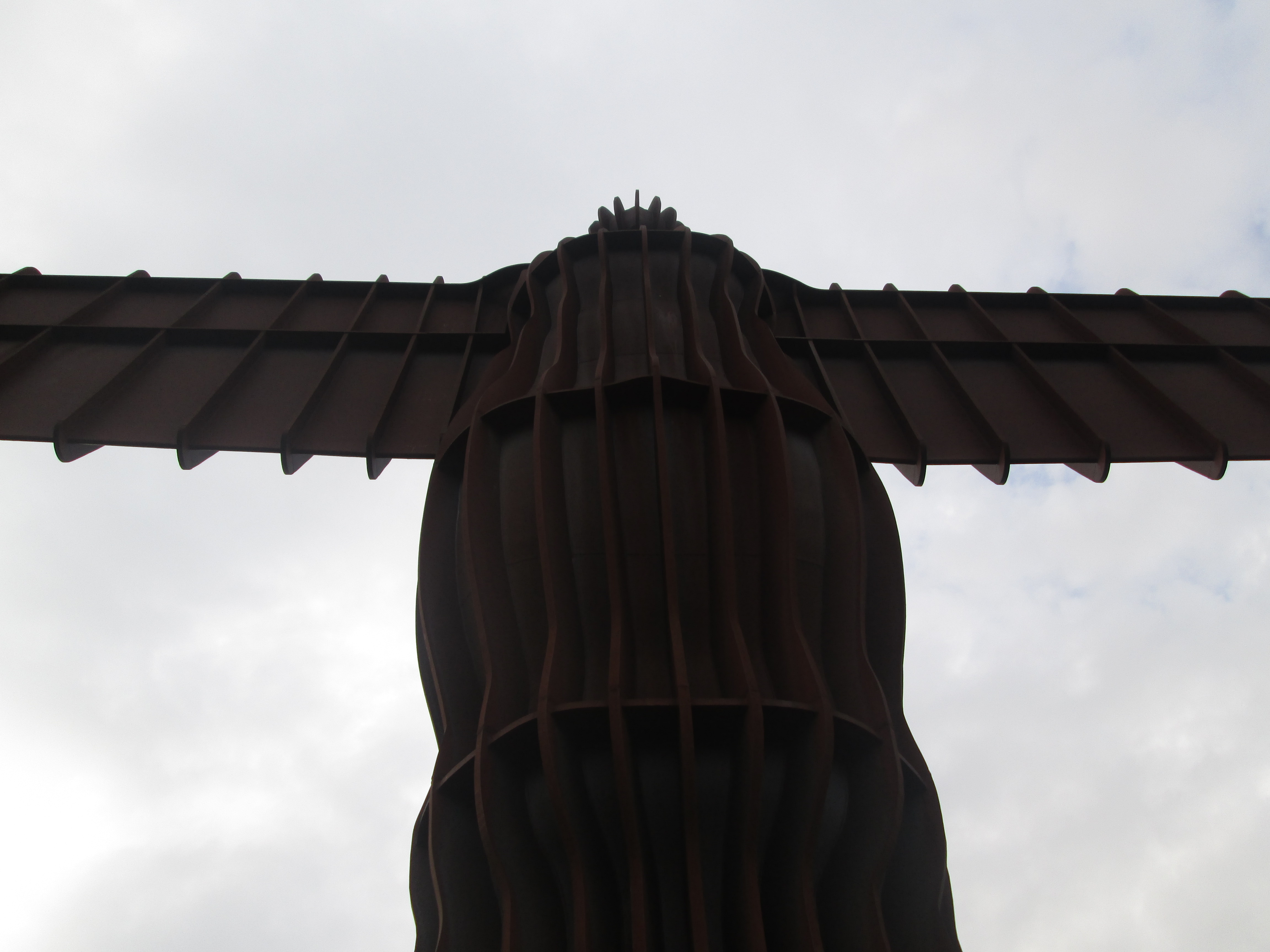 The Angel of the North pops up in the horizon quite from nowhere, and the effect is as you’d expect. Inspiring, distinctive and thoughtful, now this is good public art. It was commissioned by the progressive Gateshead council, and built during 1997-8 in Hartlepool, then placed over an old coal mine. It’s actually much smaller than it seems when one gets close, and it’s extraordinary how this steel shape manages to make such an impression on the 33 million people that pass it each year, usually in a speedy blur along the A1. Its designer Antony Gormley makes some remarks about it that border on some of the religious and spiritual discussions and problems that I’ve been articulating: