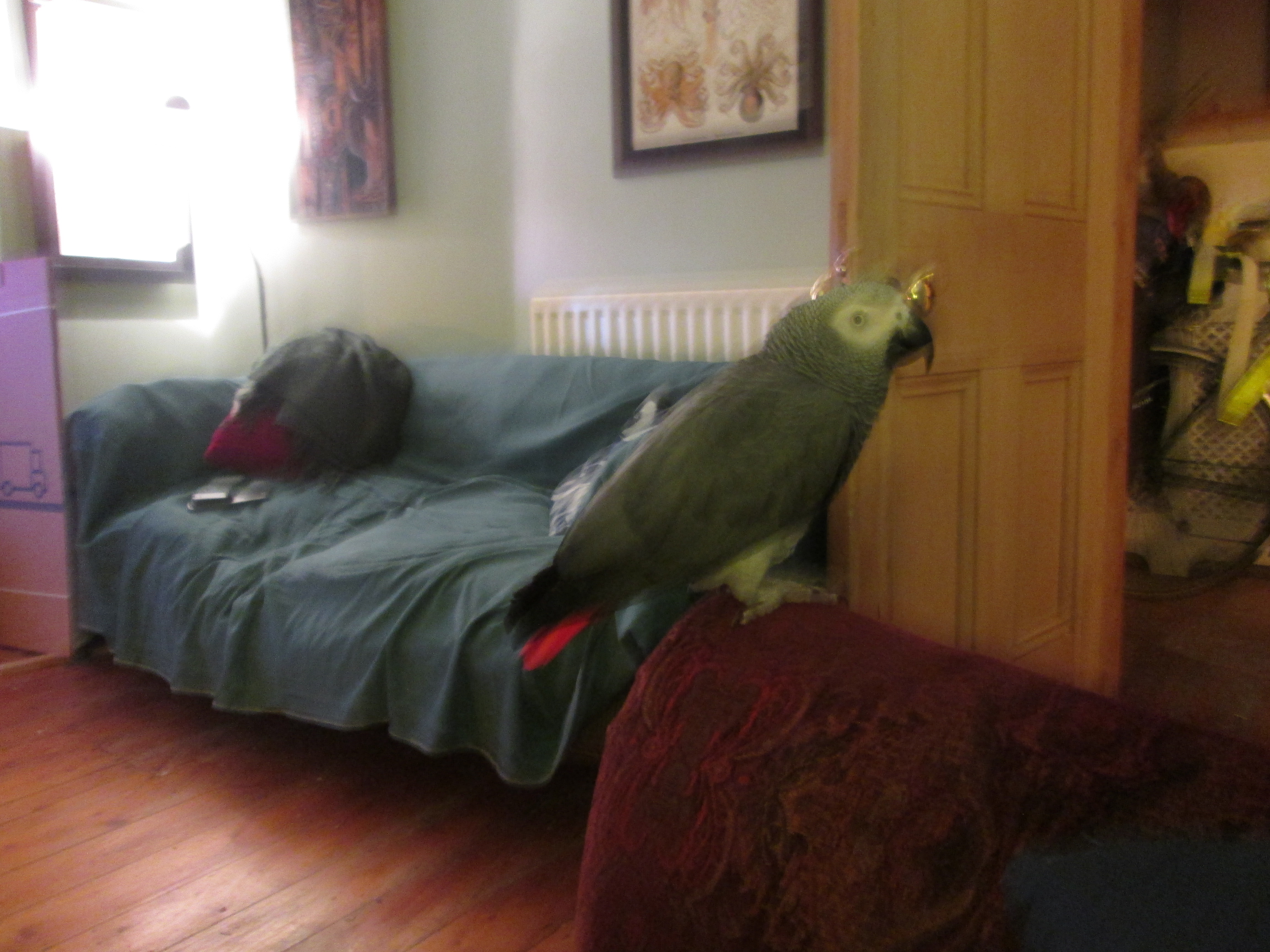 After a time I leave the busy A-road and drift into the dusky suburb of Monkseaton, just by Whitley Bay. I reach a quiet street and follow my accurate instructions, looking out for a scarily off-putting front garden. In response to my knocking appears Paul. He welcomes me in, pointing out first the great collections of ferns he has growing about the place and, not long after, the corny and deliciously macabre collections of taxidermic specimens he has about the place. As I drift into kitchen, agog at the strange and exciting décor of the place, something suddenly whooshes behind my ear. Perched above a door is Mr Beak, an African Grey parrot, and Paul’s companion. I love the place. Beak!