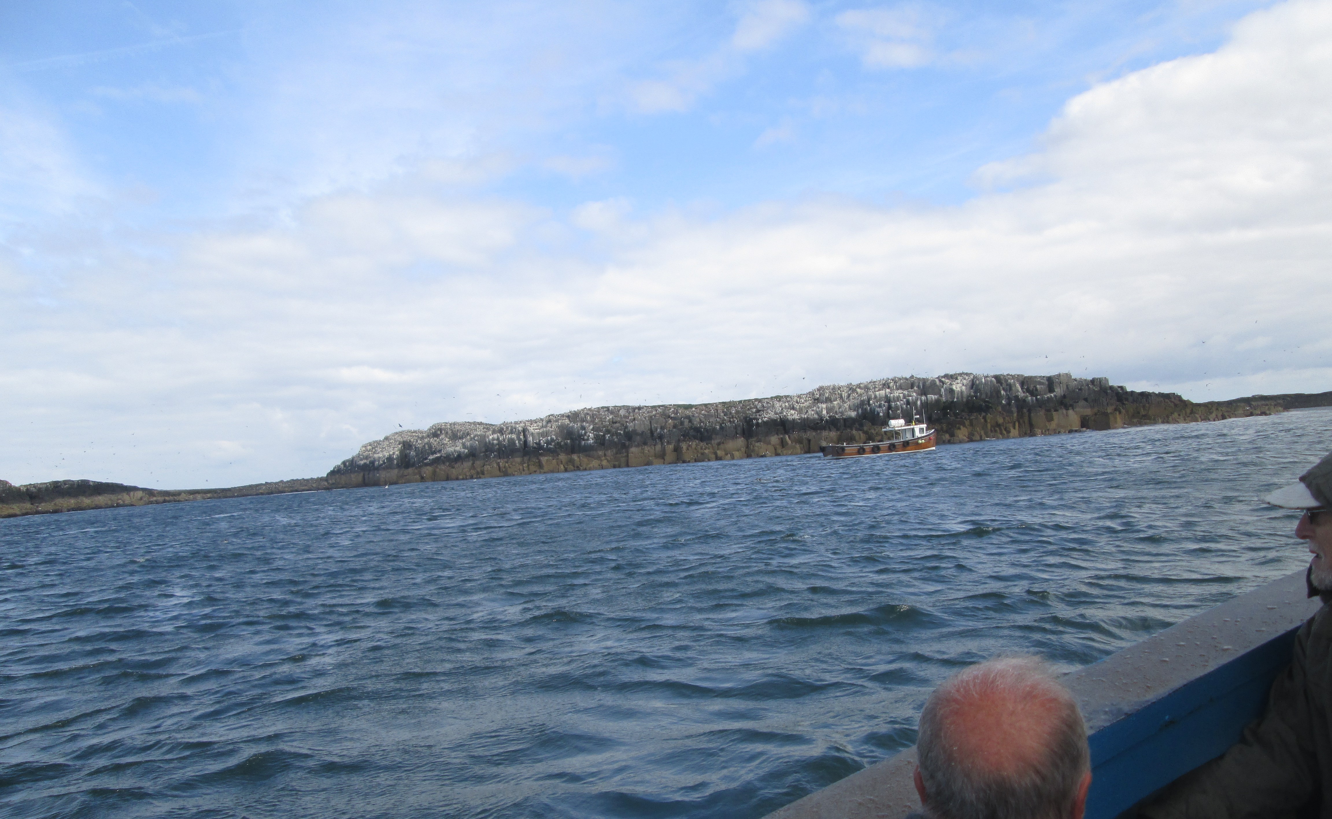 We huddle together on the boat as waves of surf fling themselves into the vessel. The sea rocks and bounces with a life of its own, and a language of its own. The skipper talks about ‘swell’, and criss-crosses the waters according to some esoteric route that best navigates the different channels of water. It’s another world of experience. To our left, small black puffins with yellow bills bob about in the waters as lairy seagulls lurk overhead. Locals call them tommy noddies, and there are 79 000 on the Farnes. They will lay a single egg and sit on it for 40 days with a fascinating maternal zeal, before moving on.