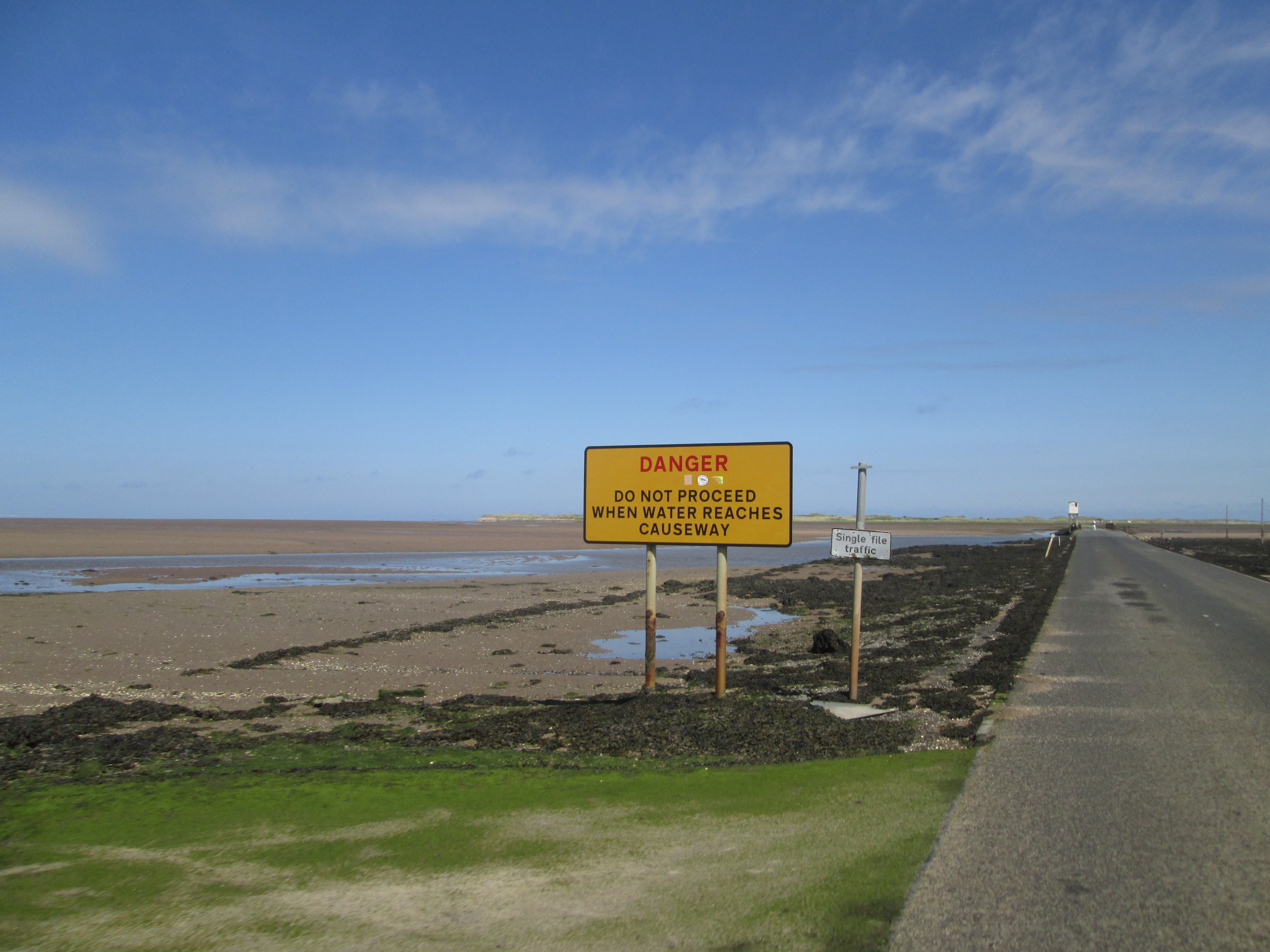 I hurry along north to Lindisfarne, Holy Island. Before visiting it is essential to check the tide times, as the island is inaccessible for about half the day, when seawater floods the causeway. I arrive with about an hour to look around before the sea sweeps me away. The road to the island itself is surprisingly long, but allows for vast and breathtaking views of the bay and coastline. The community here is very small, little more than a tiny village, and entering is a bit of an anti-climax. Past a car-park and little café, one is caught between a network of about three small lanes on which B&Bs and an abundance of tourists jostle between the island’s surviving heritage.