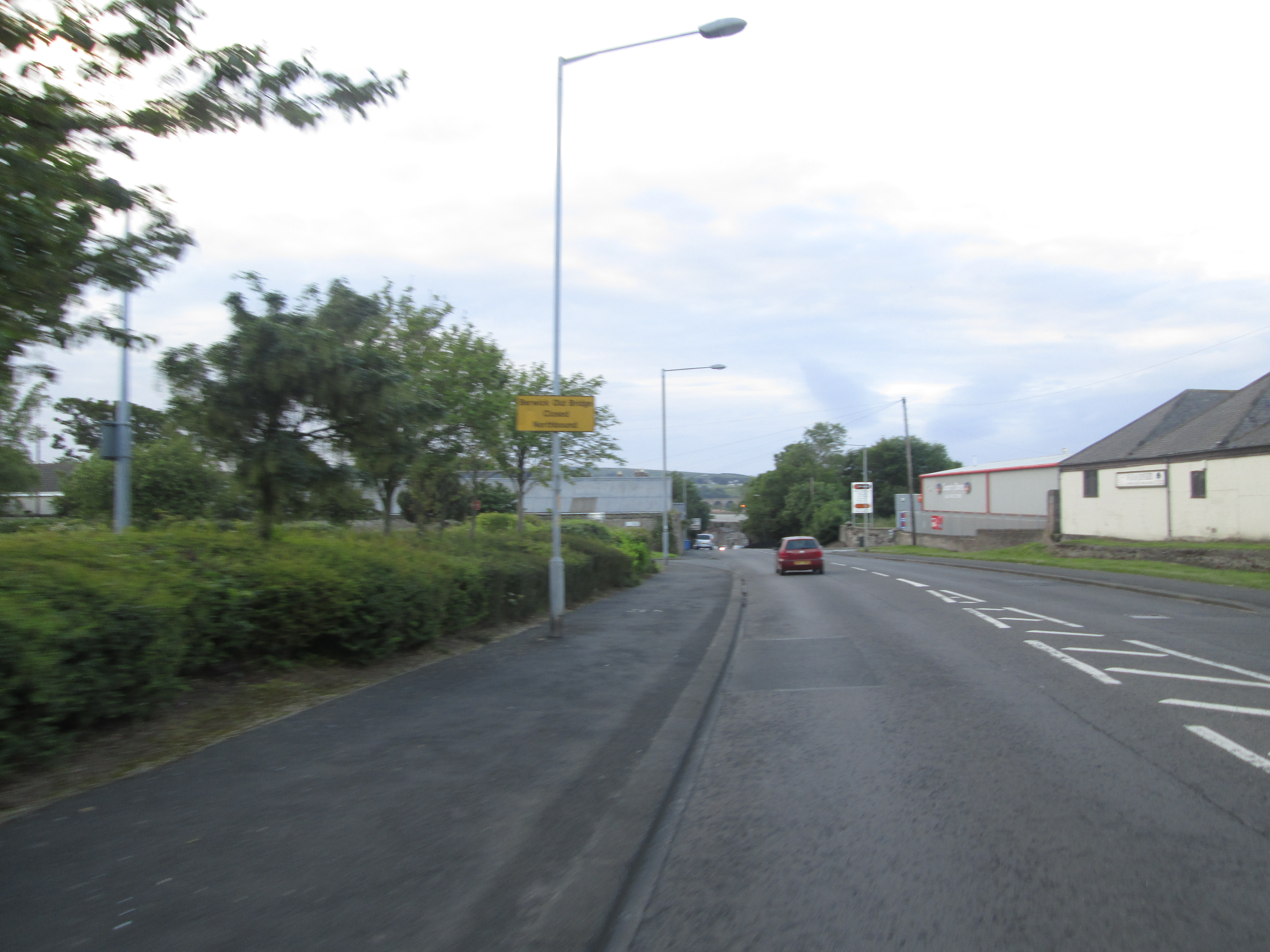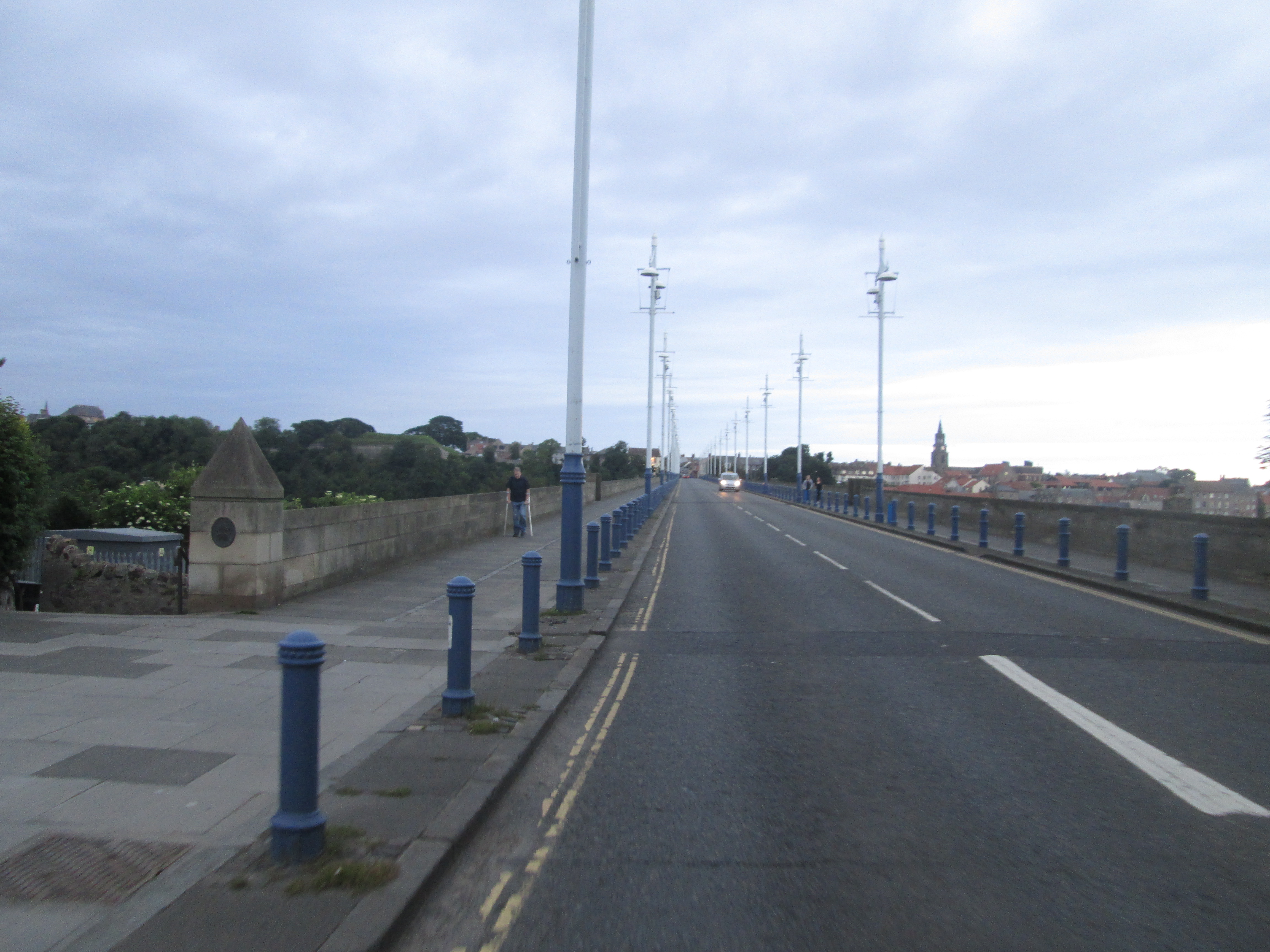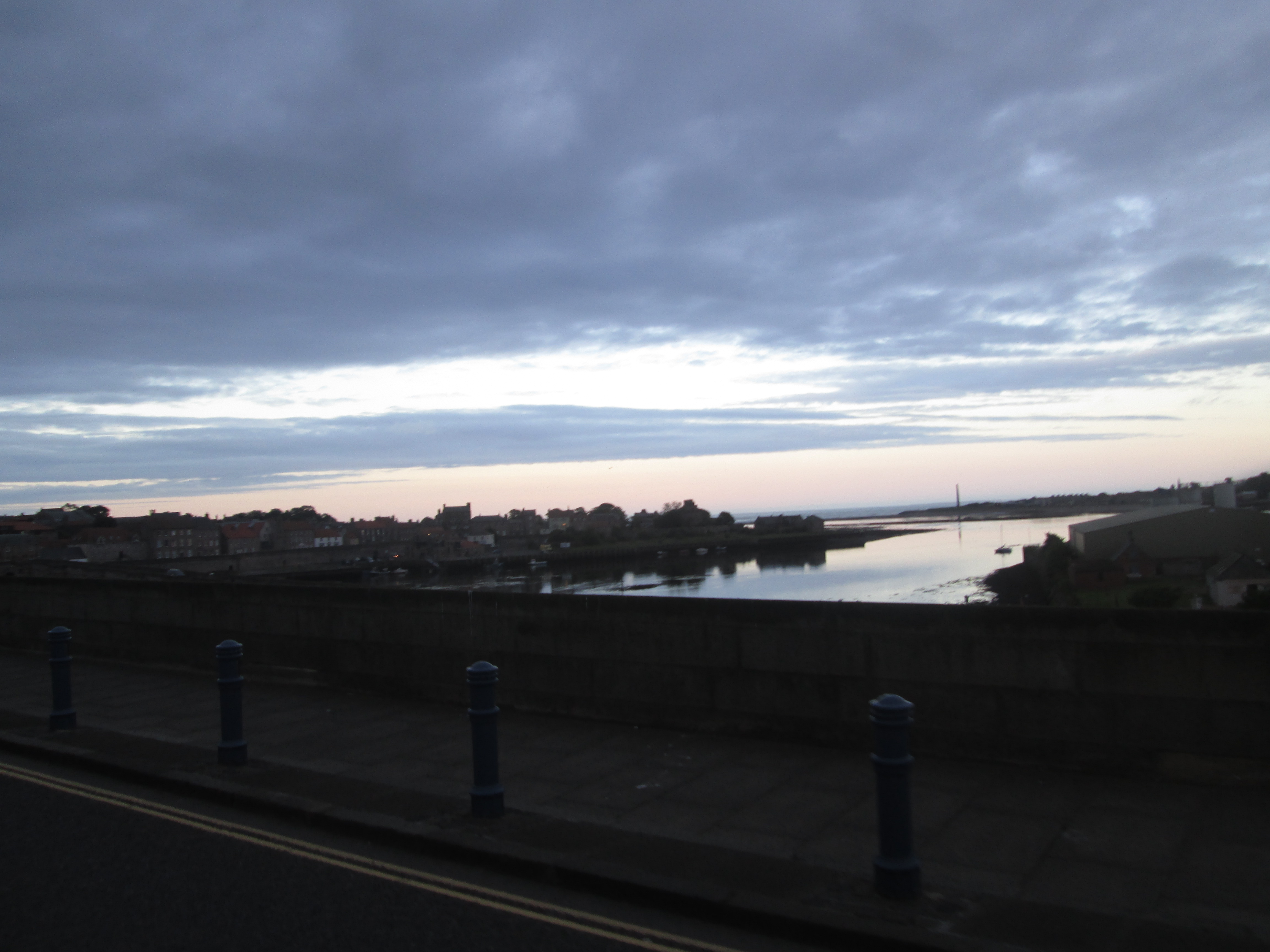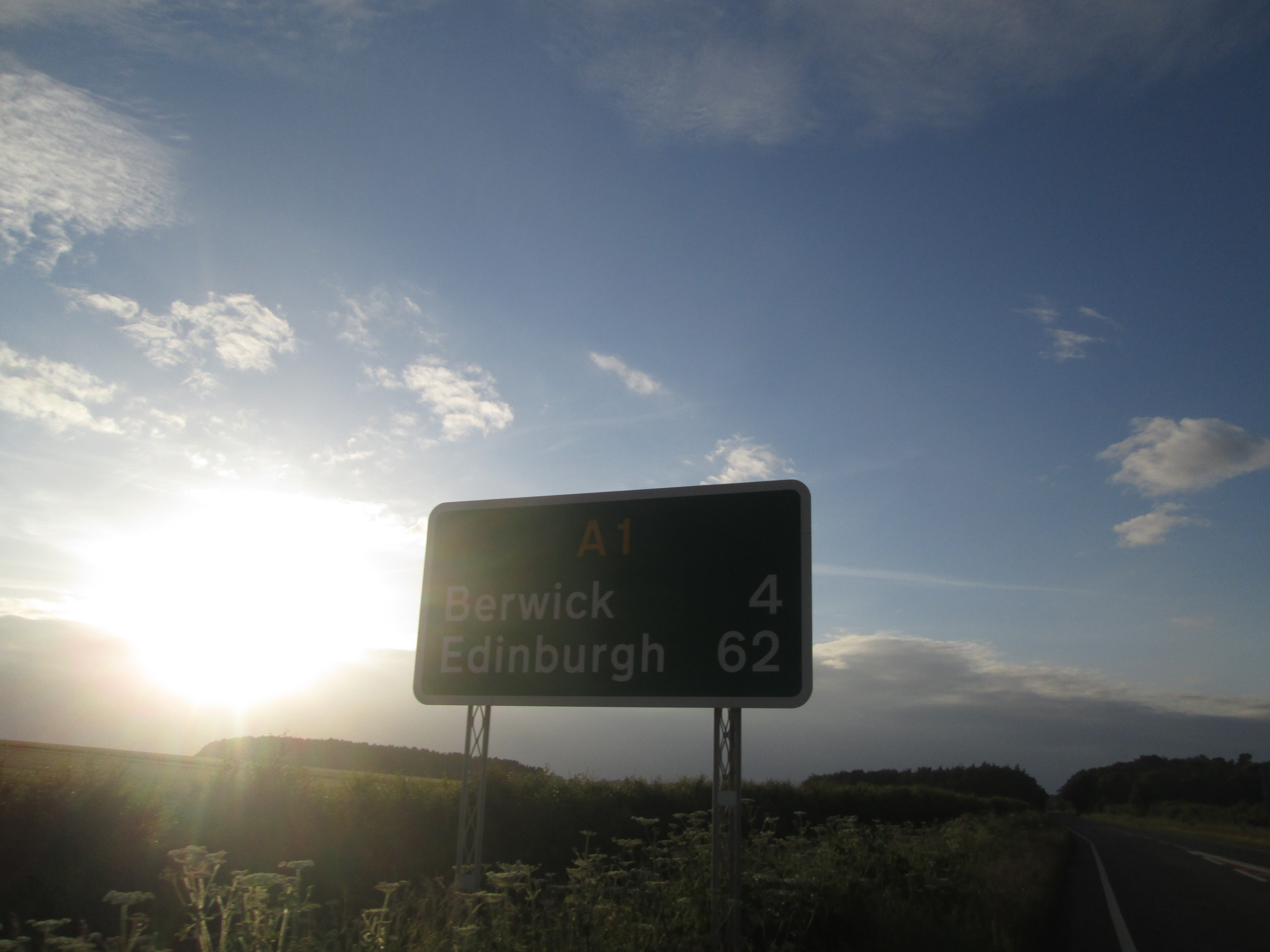 It’s about 7pm when I head back on the road again, following the A1 north to Berwick. I have a theory with A-roads: the smaller the number, the more dangerous they are. This is true of the A1 further south, but this evening it is quite gentle, and I head down it with little disturbance, eventually reaching the outskirts of Berwick-upon-Tweed.