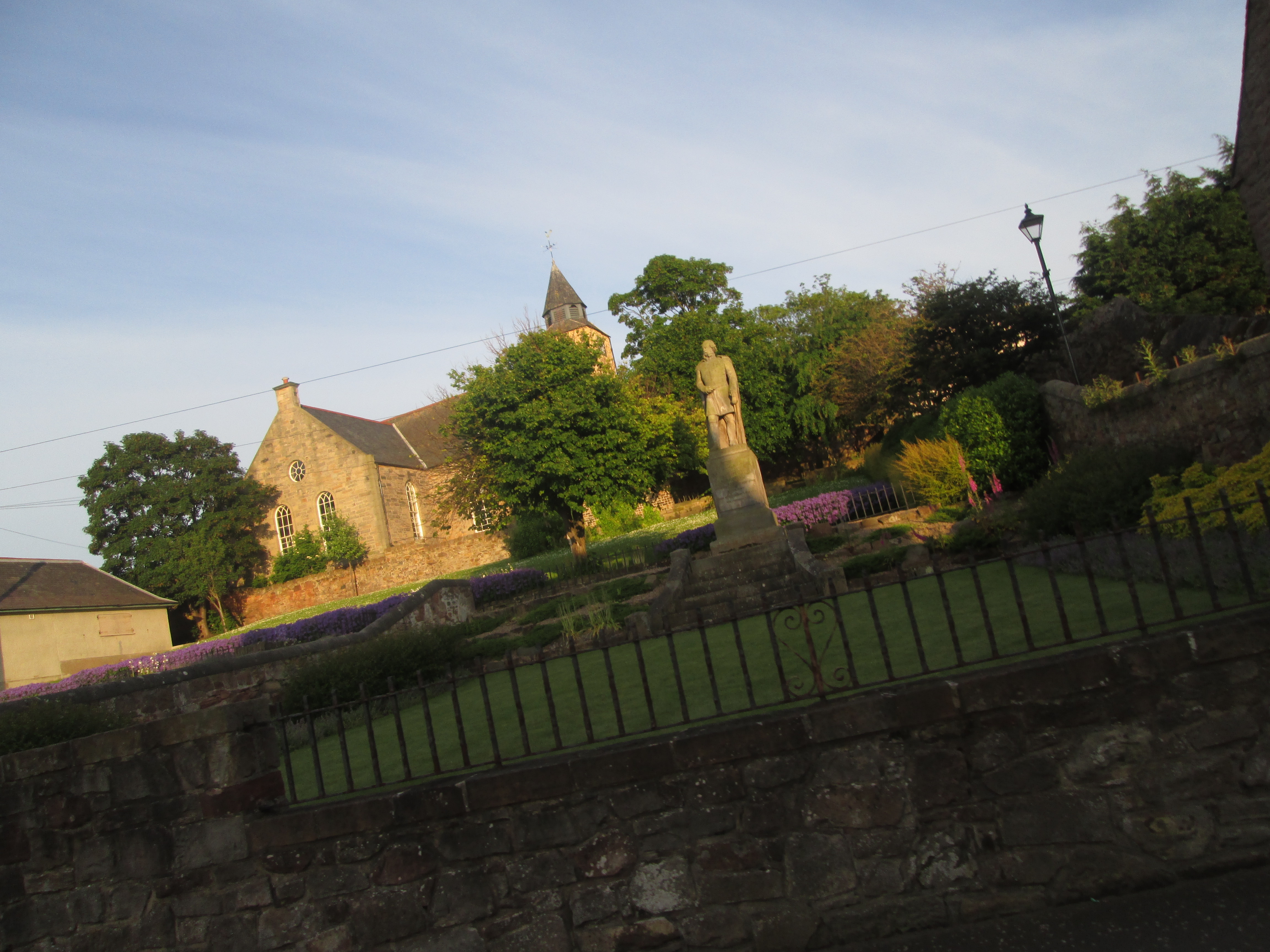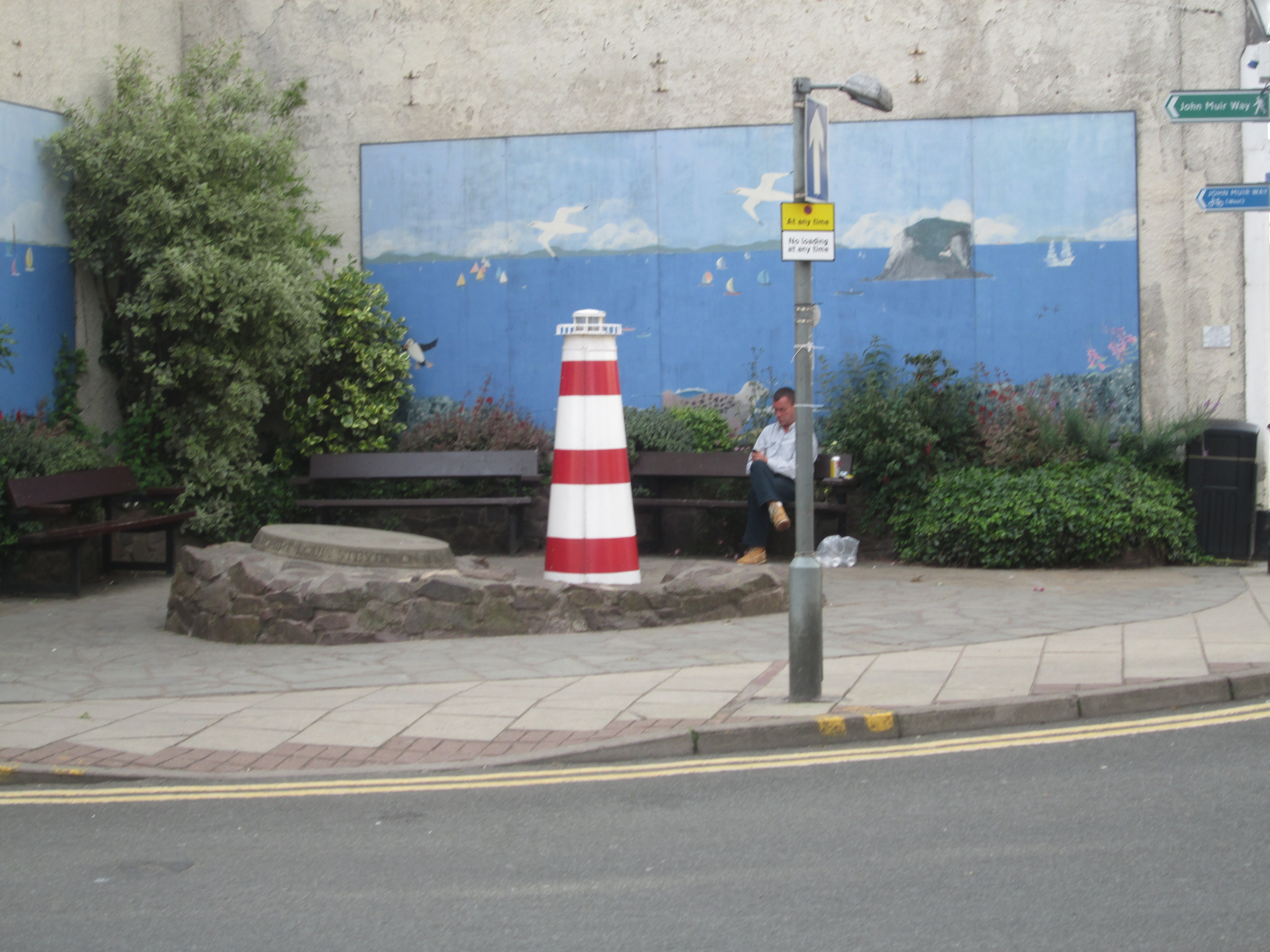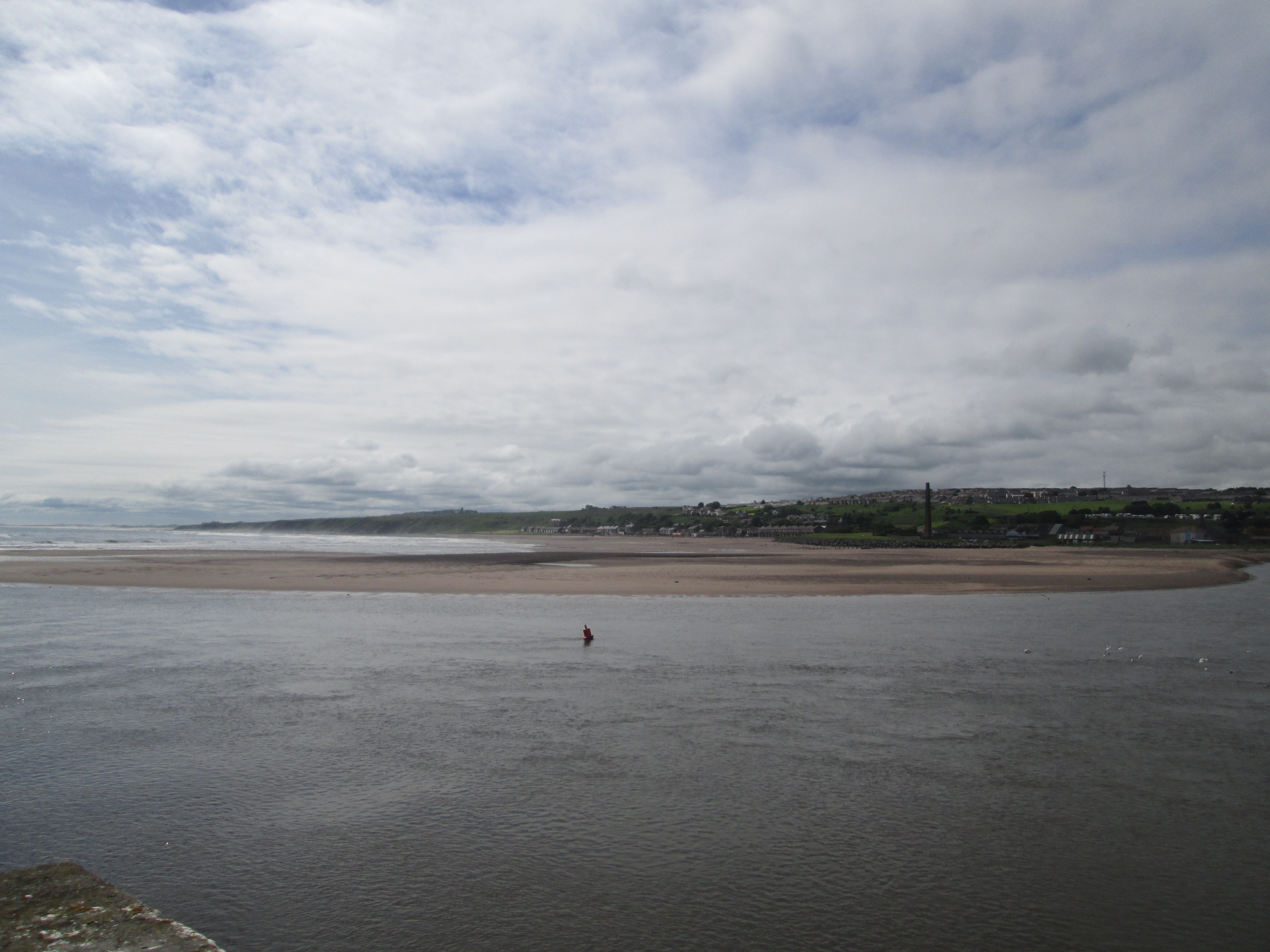 I head up through Berwick town and listen to a man blowing heartily on the bagpipes. The milling crowds take great pleasure from this and shower his cap in small change. I spy an Edinburgh wool shop and more of the same large grey bricks and thickly-framed buildings that remind me of Aberdeen, and will recur I expect across Scotland.