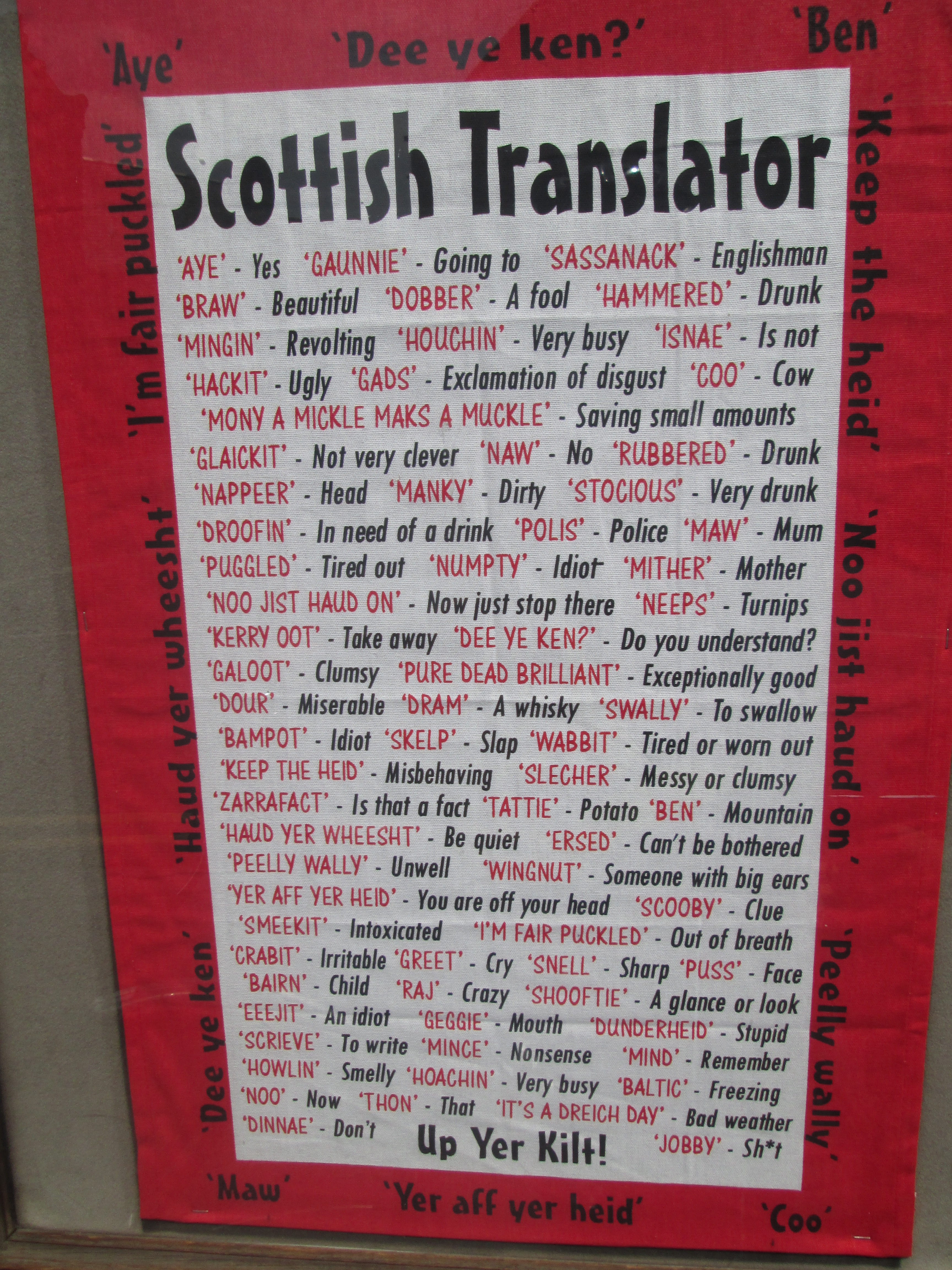 So, I take a shooftie around me. I’m fair puggled already, and I’ve still to scrieve a wee bit more of me travels. Luckily it’s nae dreich day, and I dinnae want to be a numpty and miss out on the braw countryside.