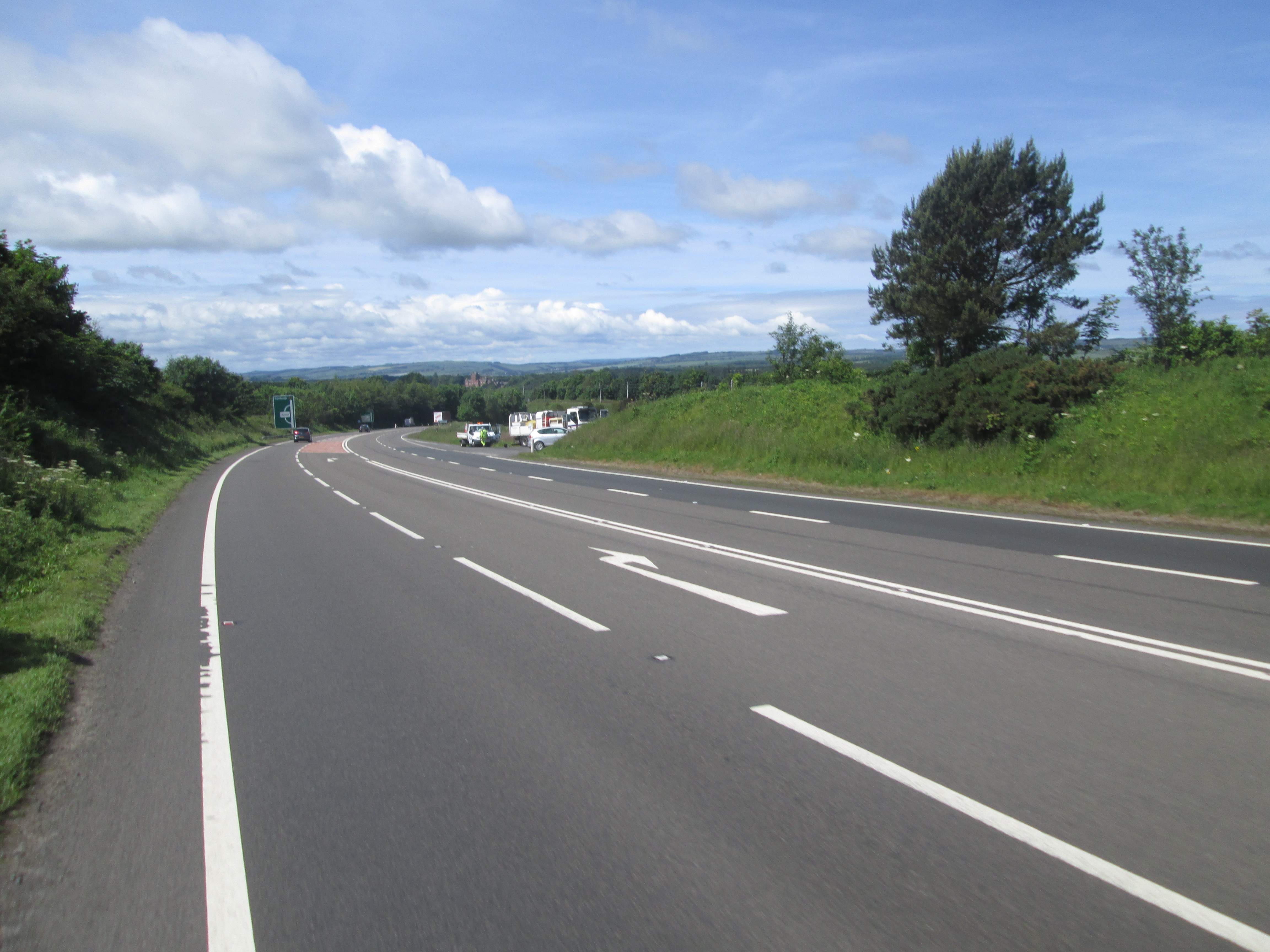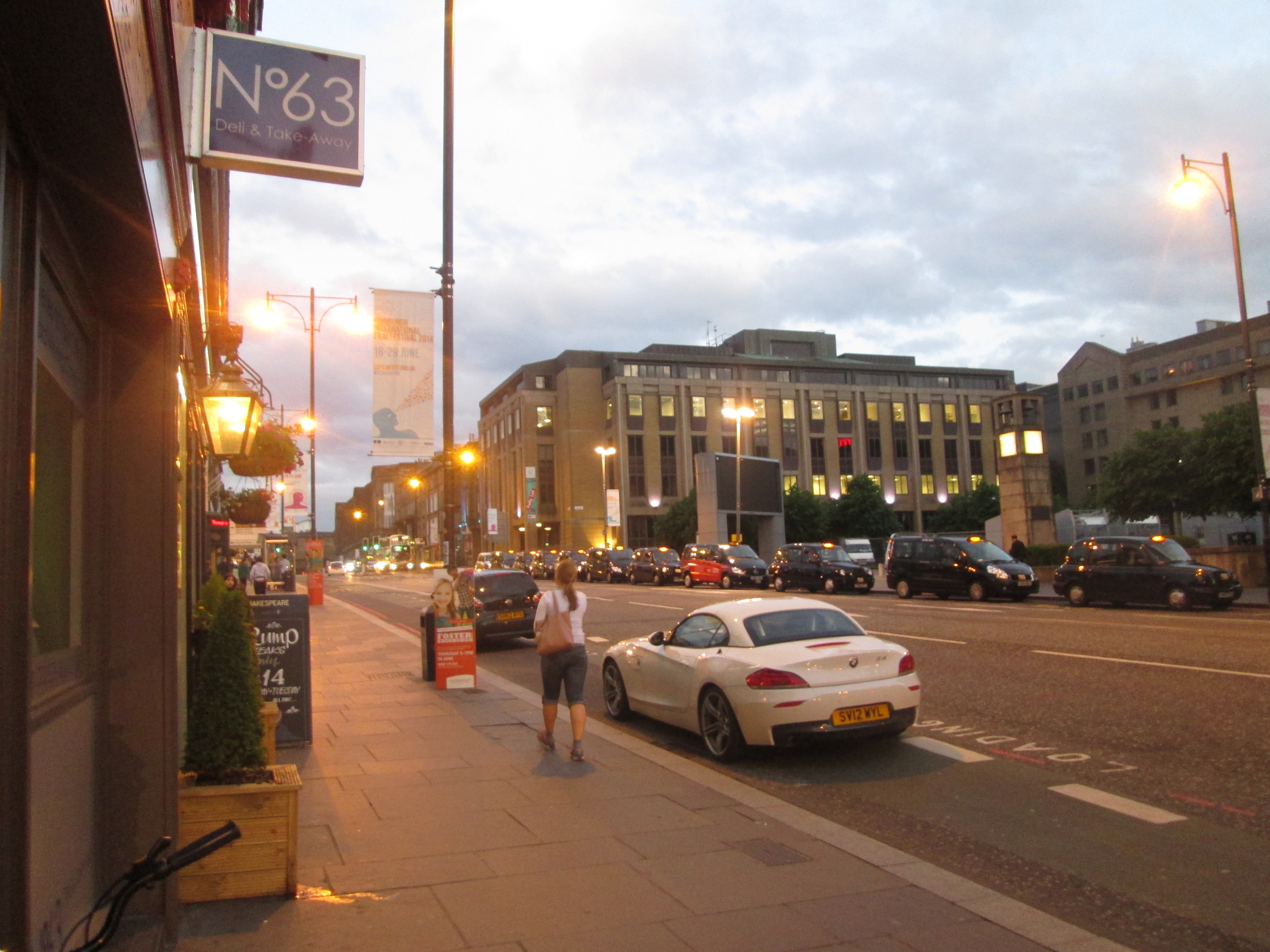 A binge of milkshakes and flapjacks at a nearby Tesco Express gives enough energy for the final slog into town. Edinburgh takes a long time to get to: it feels like you’re there and, lo, there’s four more miles of dull-looking low-rise suburbs to pass through. I start to spot black cabs, and the roads become increasingly damaged and dangerous, indicating that the city is approaching. Indeed Edinburgh has the worst-kept roads by some distance, and I’d warn any motorcyclists to take care, these pot-holes will easily fling the hapless rider over their handlebars and into a nearby hedge or bus. High grey-brick tenement blocks appear suddenly and with regular frequency, matched by the odd brown pebbledash of public buildings. I’m in the centre now, surrounded by patient traffic and droves of tourists.