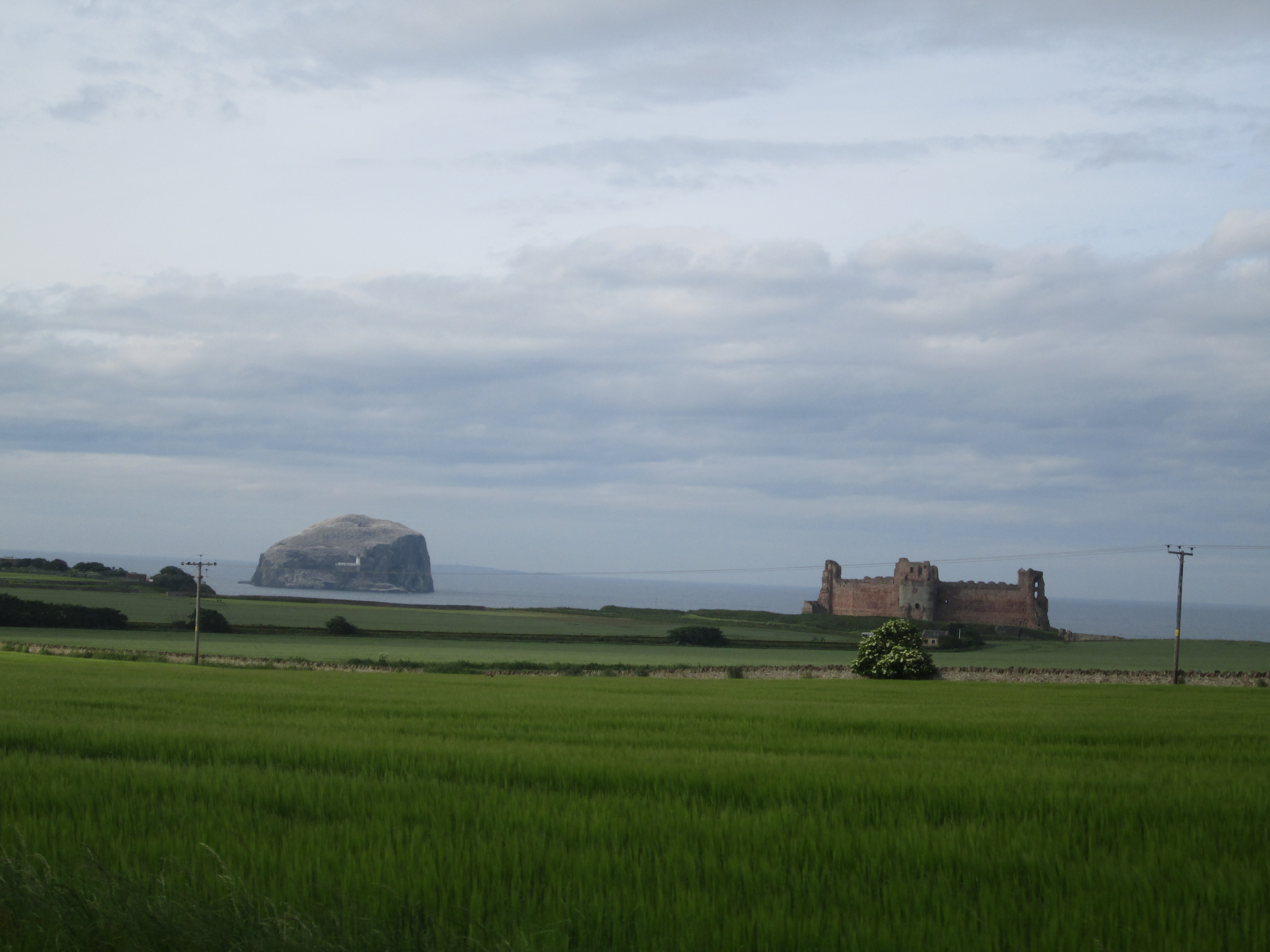 I take a detour up the way, leaving the superb cycle trail to investigate North Berwick. It’s a bit of a gamble in terms of the added distance, but the journey becomes quite spectacular. After a series of bouncy hills I reach the top of a great cliff where, below, the picturesque ruins of old Tantallon Castle perch opposite the equally sublime Bass Rock. The road plummets down towards the little town, where a large Tesco is dwarfed by the North Berwick Law, a gargantuan volcano that looms over the surrounding countryside and the almighty Firth of Forth. Immersed on all sides by a glorious golden sunset, I wonder if I have accidentally stumbled into heaven.