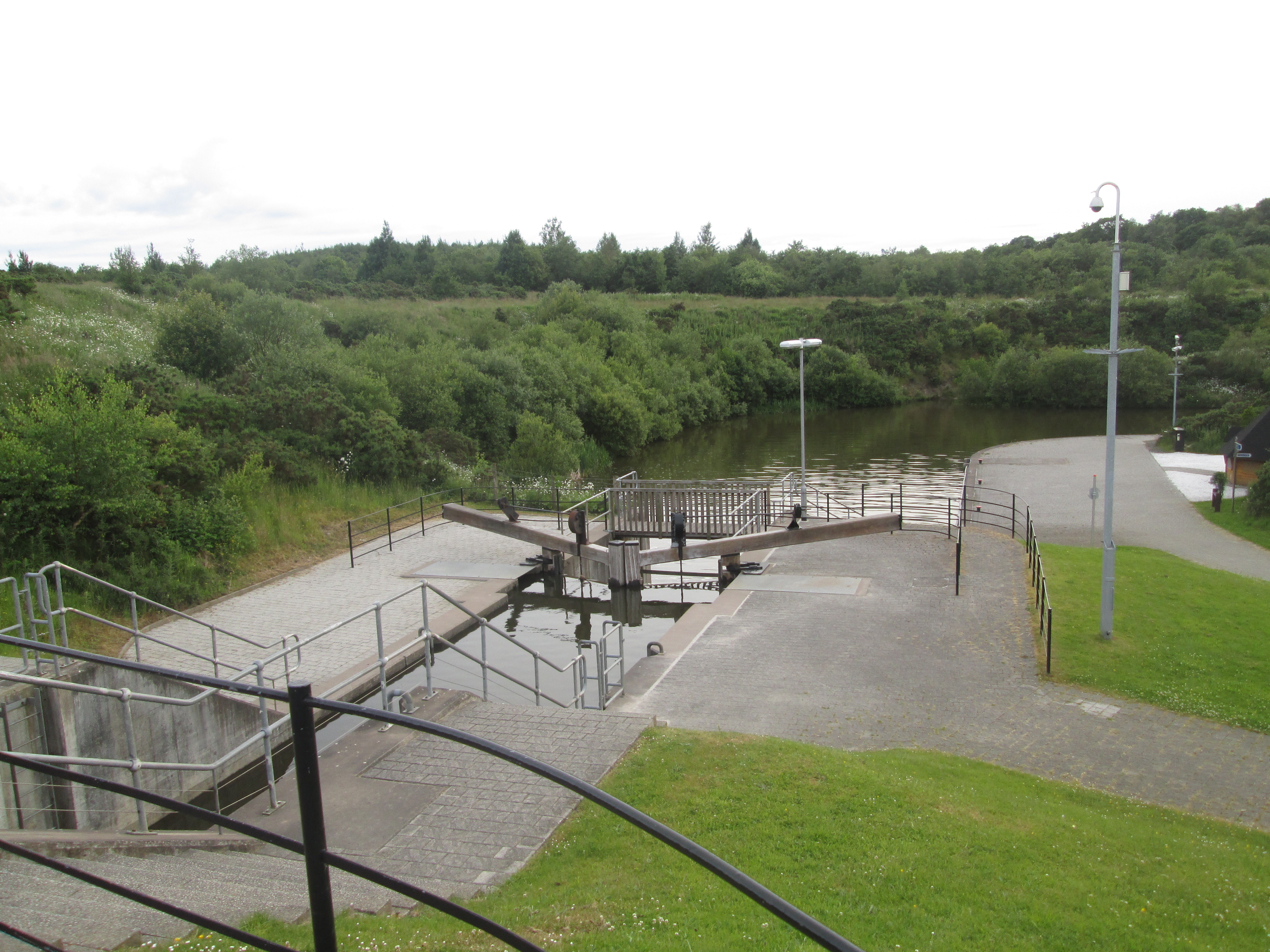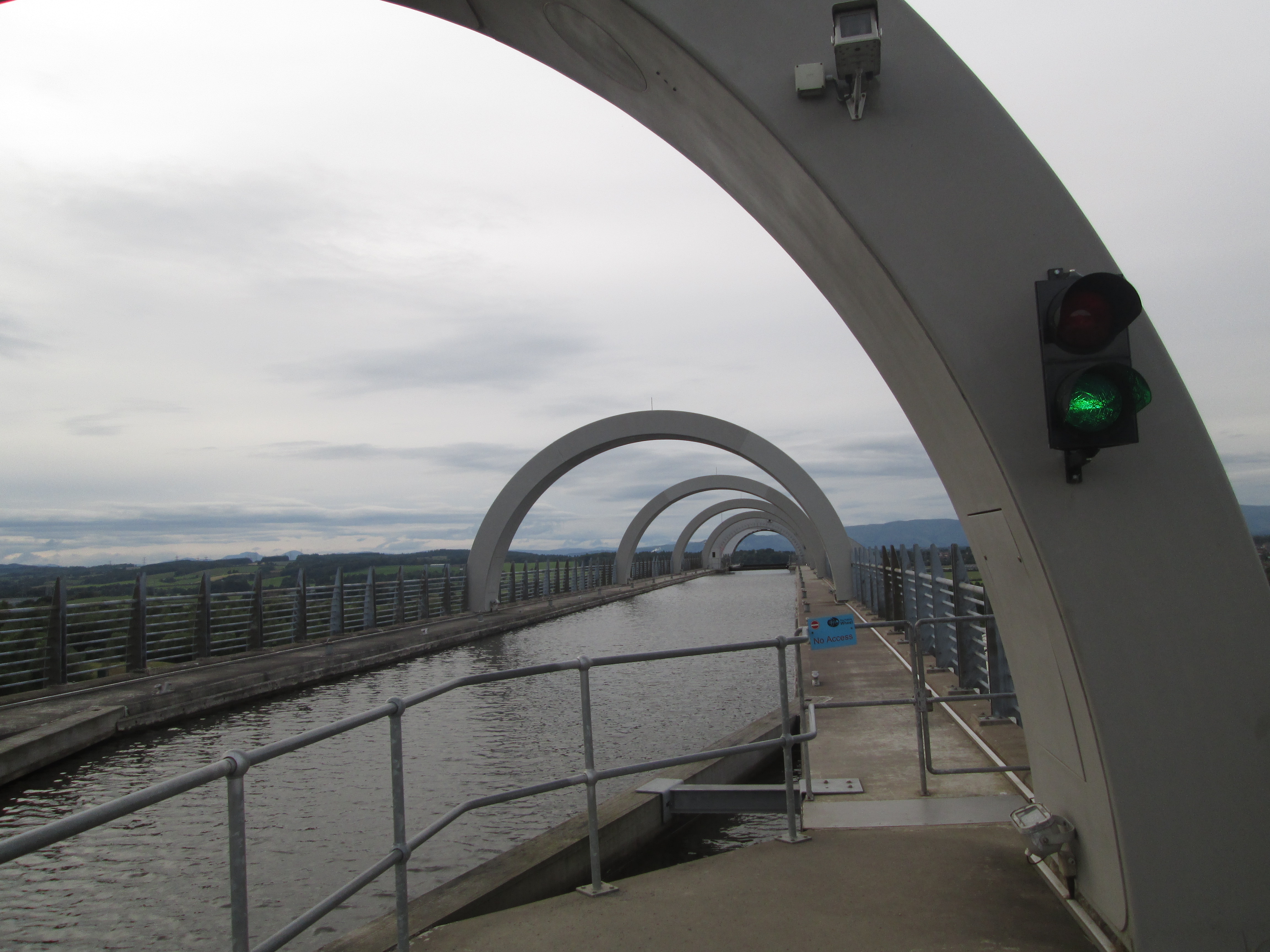 I follow the path, and eventually stumble across the shut-up sign of Santa’s grotto and, a little later, the most extraordinary and strange thing on a canal I’ve seen. The Falkirk Wheel is a space-age mega boat lift that links the Union Canal that I’ve been following with the Forth and Clyde canal. In the sleepy Sunday sunset it is silent, and the fluttering cries of birdsong are all that disrupt this unlikely scene.