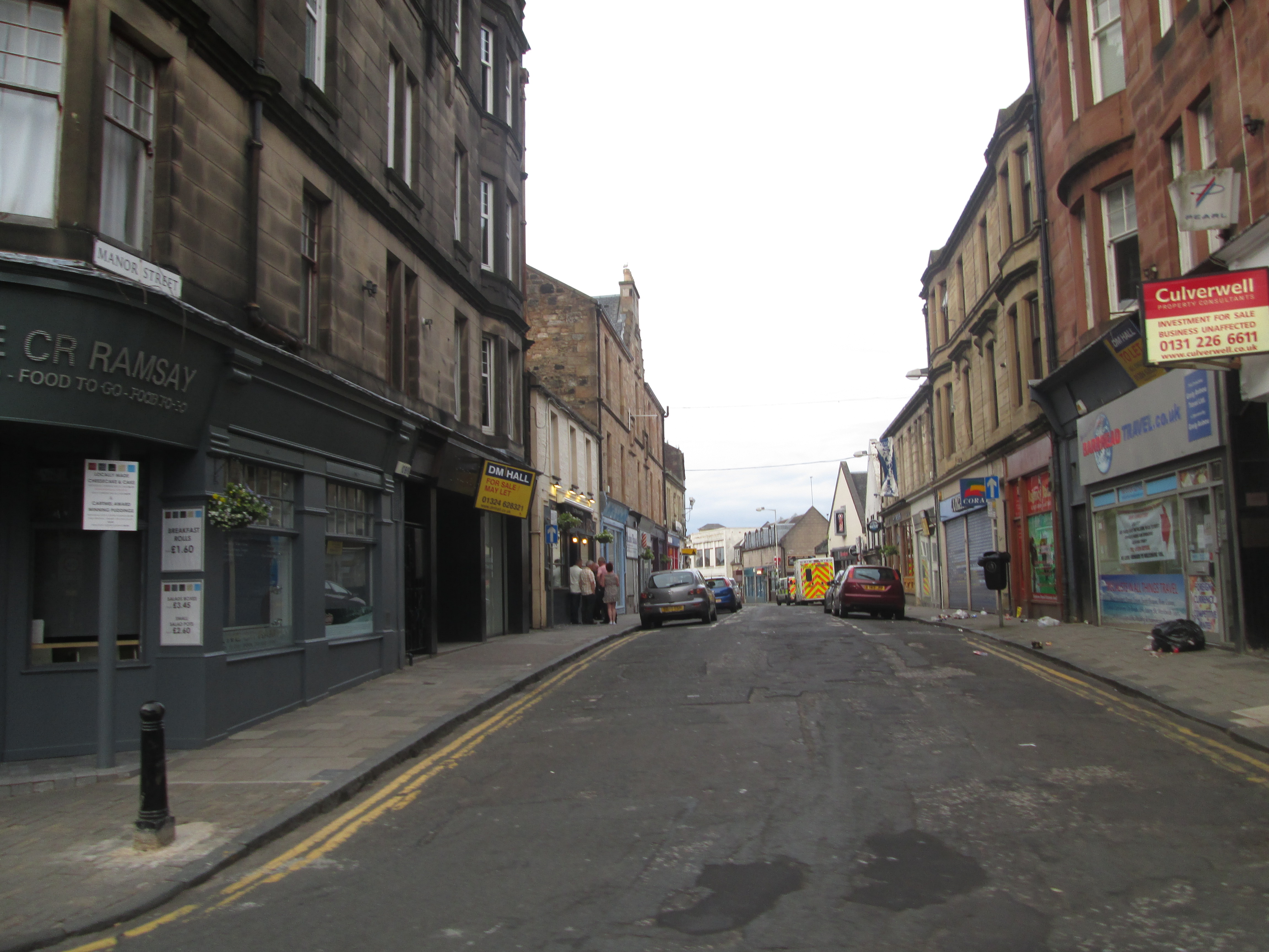 The road gets very confusing by the time I reach Gyle, an immensely large and non-descript non-place on the western outskirts. Bicycles are banned from the road, and so I wander about among featureless business parks and supermarket car-parks, science parks and corporate headquarters, utterly lost, eventually gambling on leaving the city to the south and rejoining whatever road is heading west thereafter. The whole area has been put out To Let. It is the most featureless and disorientating landscape I have come across so far, full of no entries and no exits, and yet another layer of contradiction to Edinburgh.