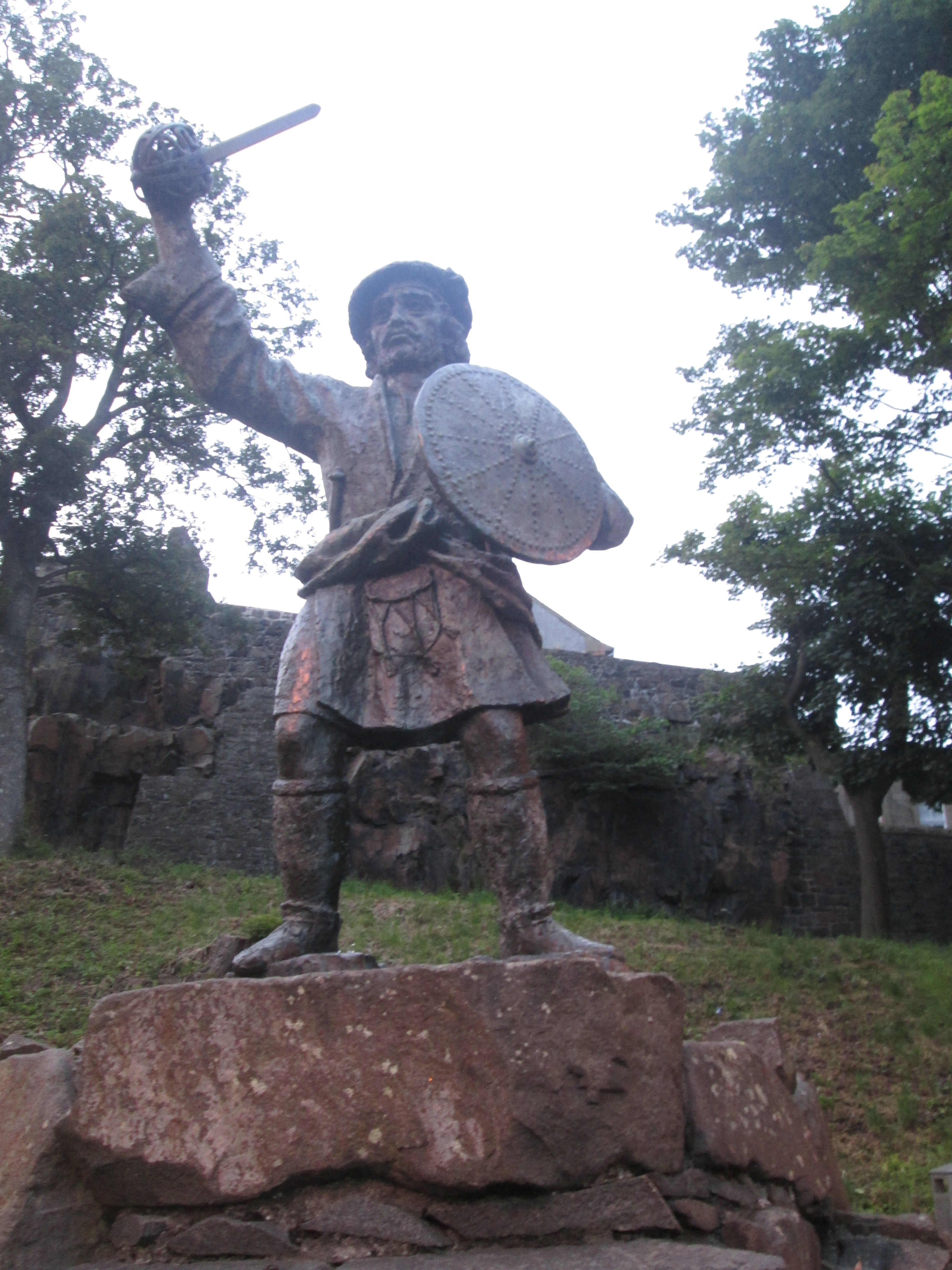 My, how long is this path? Despair starts to nibble at my ears. Will I get to Falkirk before dark? What if my bag falls into the canal? Should I turn back for that bloody jacket? Eventually signs for Falkirk appear, around 8pm, still light. I follow a path where, to my left, I pass the remains of some old battle. I can’t tell which, but let’s suppose it is the Battle of Falkirk, which resounded in a sad defeat for William Wallace by Edward I on 22 July 1298. Wallace would later give up his command of the Scots and would be captured and executed seven years later. Or perhaps it was the later and inconclusive Battle of Falkirk Muir, a victory for Jacobites in January 1846 that Bonny Prince Charlie failed to do much with? Either way, Falkirk can be associated with a kind of Scottish defeat. I’ll write and explain more about the Jacobites in the coming days.