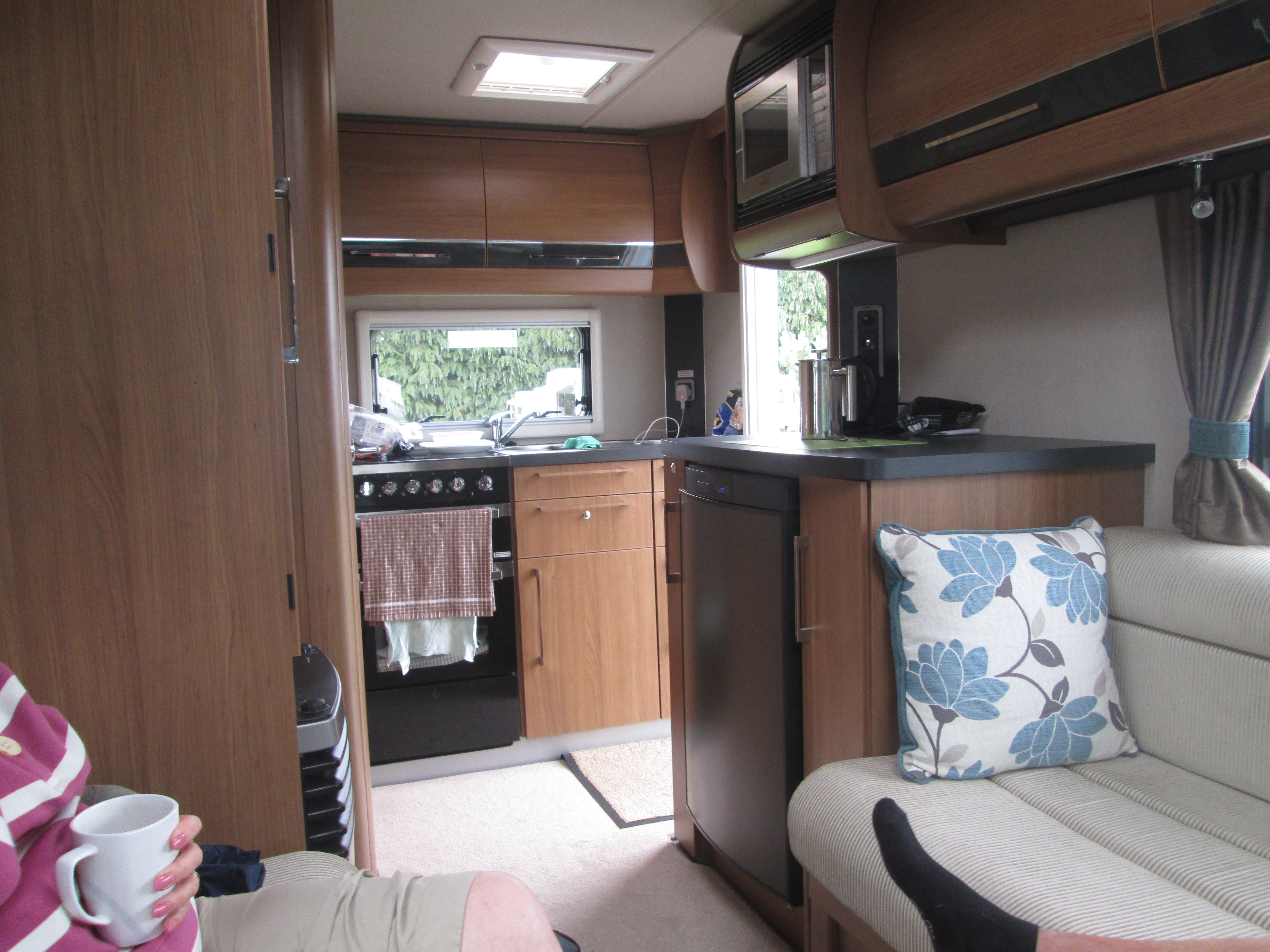 Blimey, these are good! Somehow in this vehicle a little larger than a transit van, they’ve snuck in a shower, TV, proper kitchen, sofas, bed, heating and whatever else you care for. They picked it up after their car and caravan were written off in a nasty accident three weeks ago. Both luckily escaped unscathed, the car perched on the edge of a steep verge, but driving thereafter’s been shaky. Over a big lunch of cheese sandwiches, fruit and yoghurt, biscuits and milky coffee (how I’ve missed hot drinks!), we talk about learning, life, and the future.