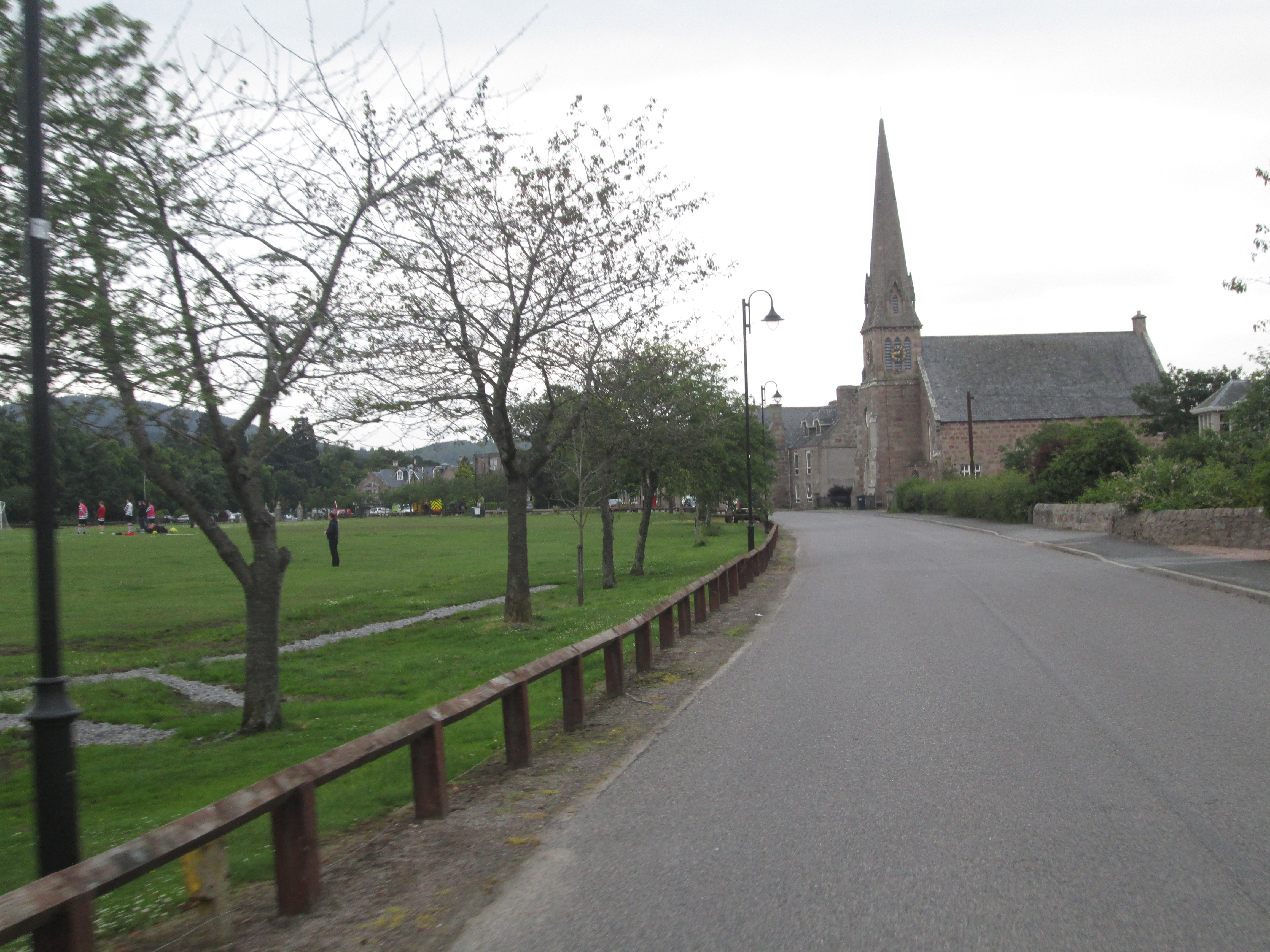 A camera crew are lurking about at the centre of Aboyne. What’s afoot? A young woman is presenting a show for BBC Scotland on the story of Dennis Dinnie, who 154 years ago made the record for lifting huge weights at the Aboyne Highland games. The record’s unbroken, and their pursuing the story of some recent pretenders. I’m directed to a good local hostelry, the Boat Inn, where I pass a few evening hours writing and supping the local brews. It’s a posh and expensive joint but, I’m told, the best in town. A well-lubricated local starts to lech on two young women, and that and the football start to irritate. Time to move on.