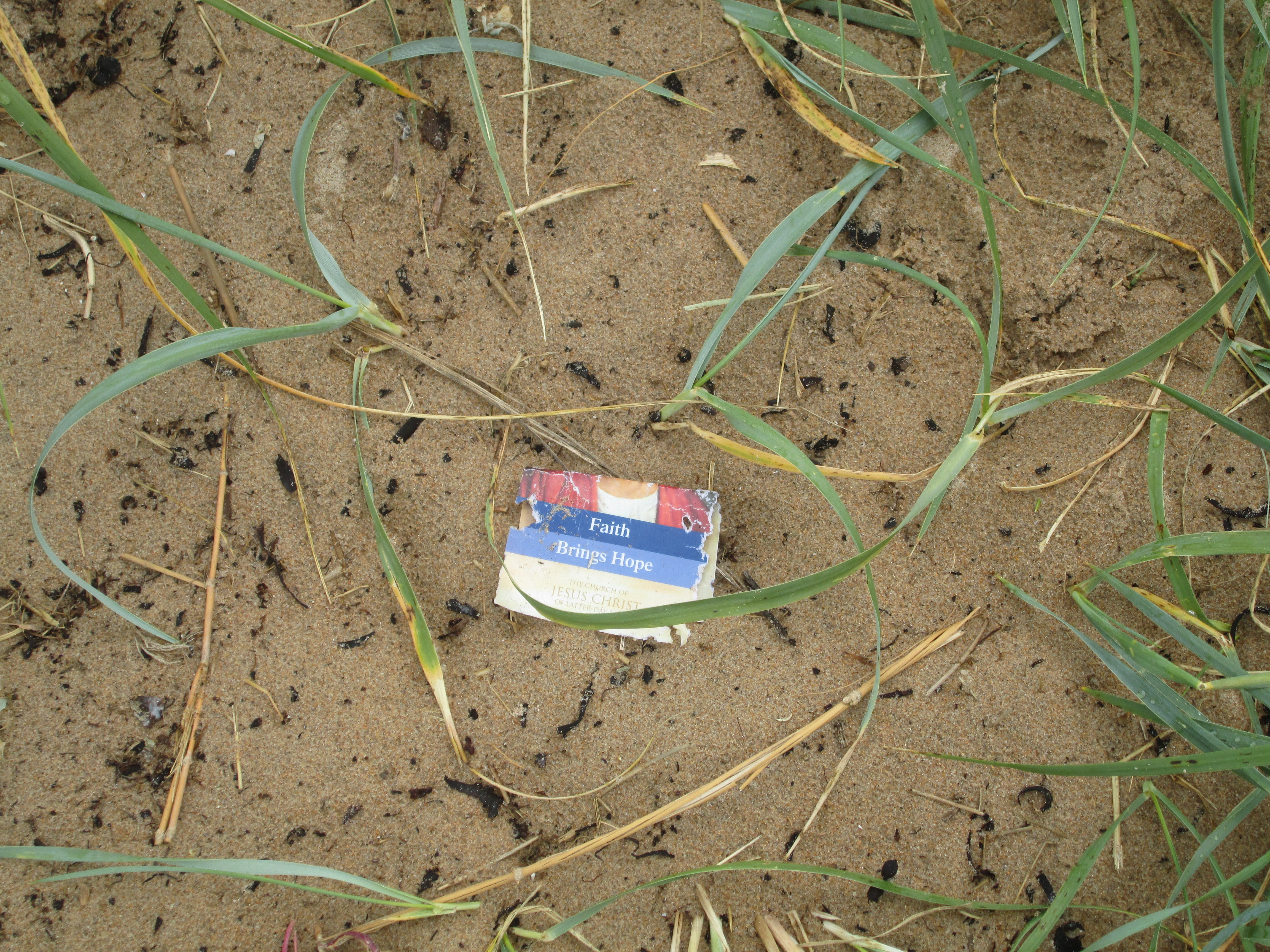 I spot the tattered remains of a Christian leaflet on the beach, and wonder who it sought to give hope to, and whether it succeeded. Nearby, men and women in fancy kecks and important-looking caddy bags mill about the manicured lawns overlooking the sands, losing their balls in the dunes. Folk ten years their senior laugh and cheer as the boules they roll clacker against each other nearby. Whatever their pastime, people are enjoying themselves.