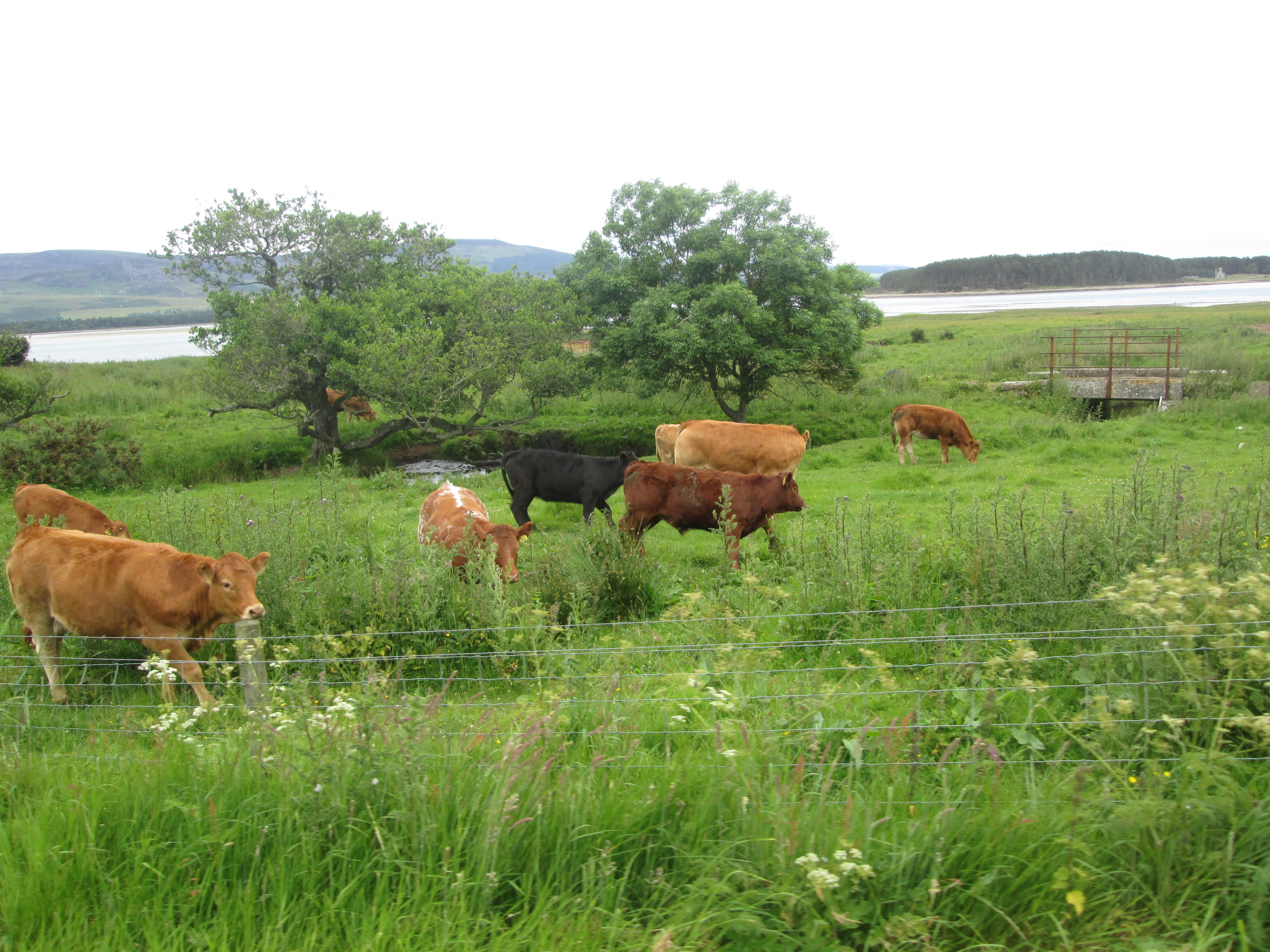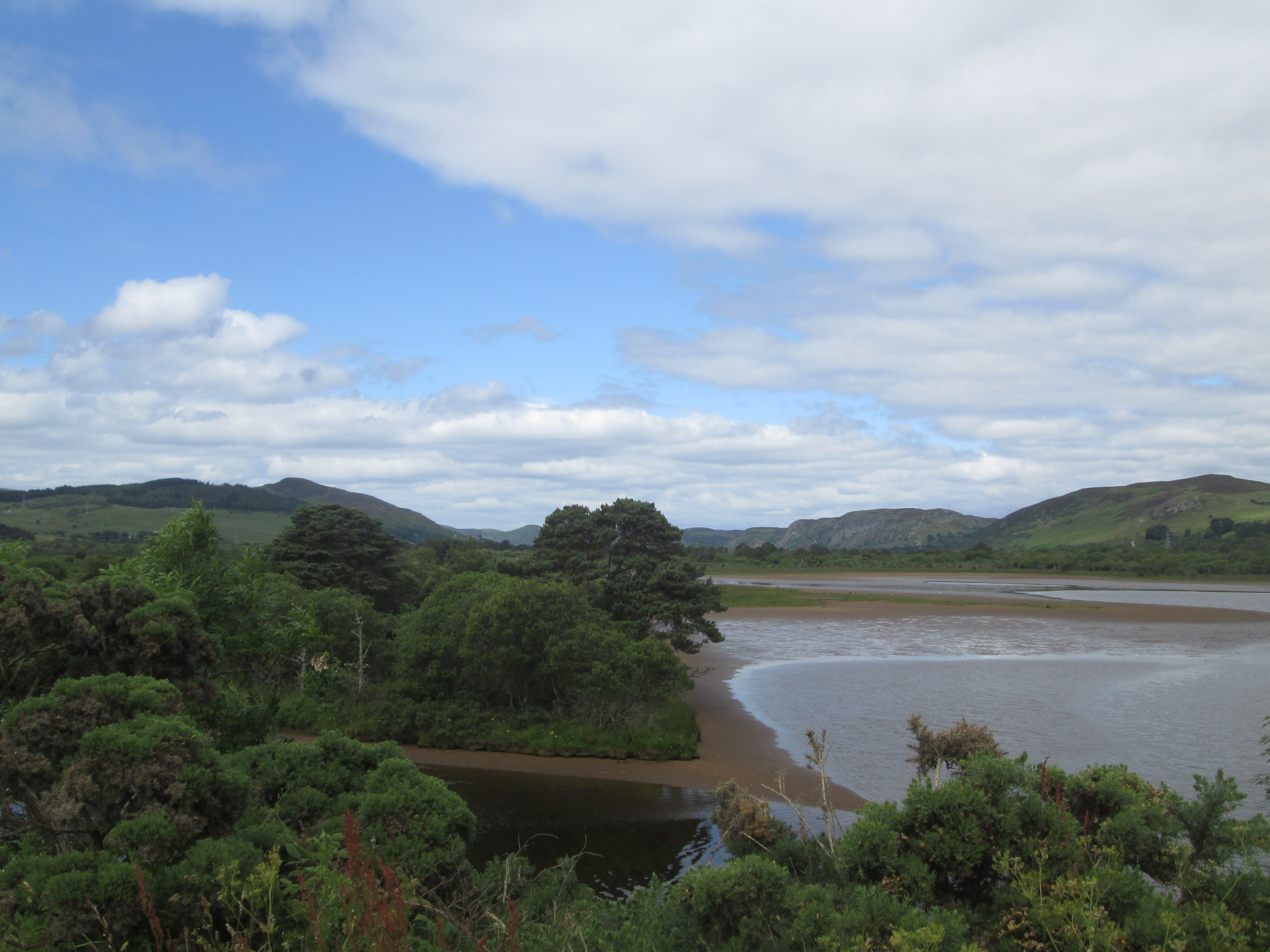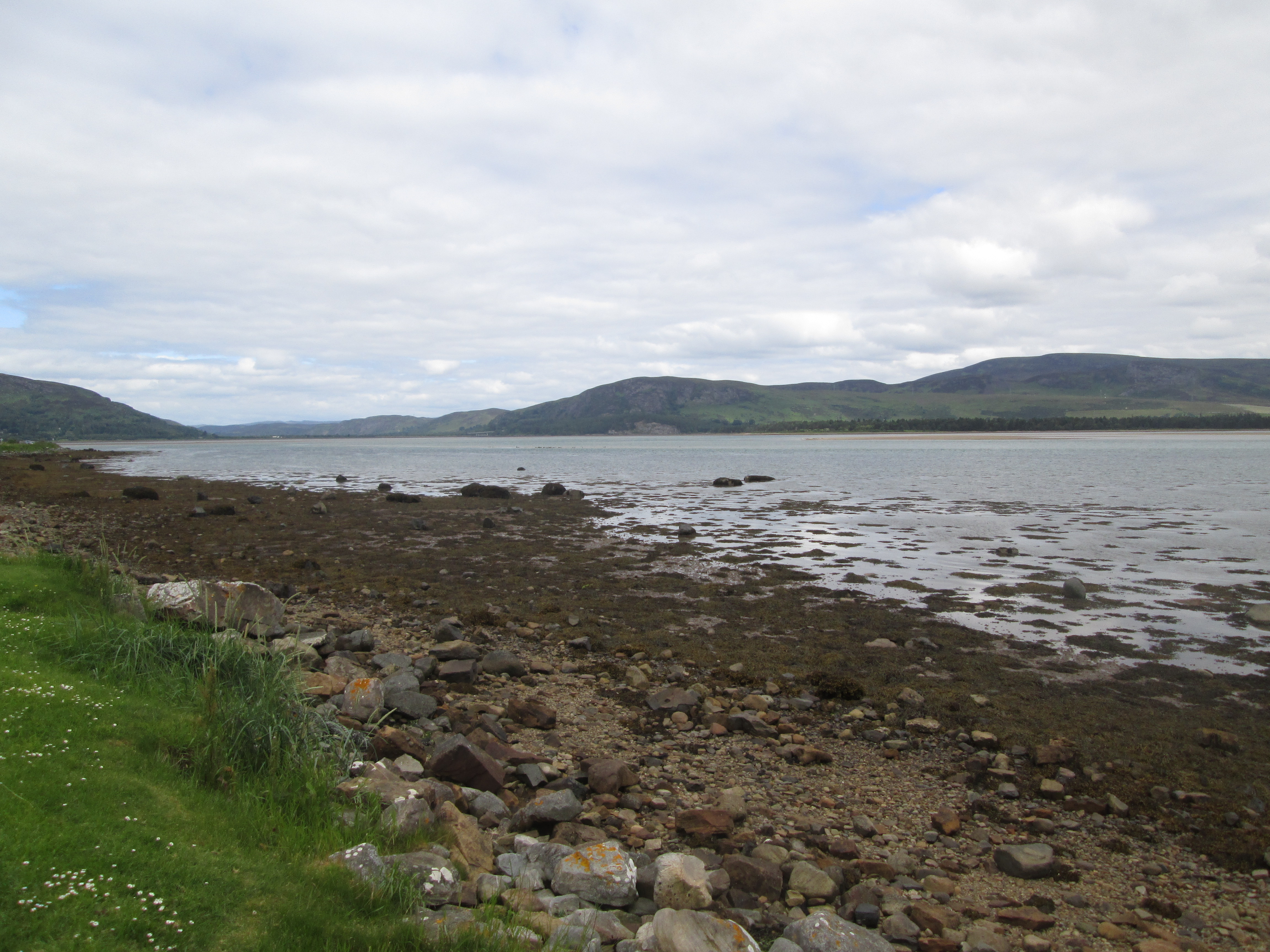 A road leaves Dornoch to the north advertising Enbo, a jolly sounding place. I pedal along a narrow road by fields of grass and wheat that passes besides the seaside village and gets me to Loch Fleet. The ruins of Skelbo Castle oversee a flat expanse of sea, sky and forest, as Shelducks and Oystercatchers mingle above the fertile mudflats.