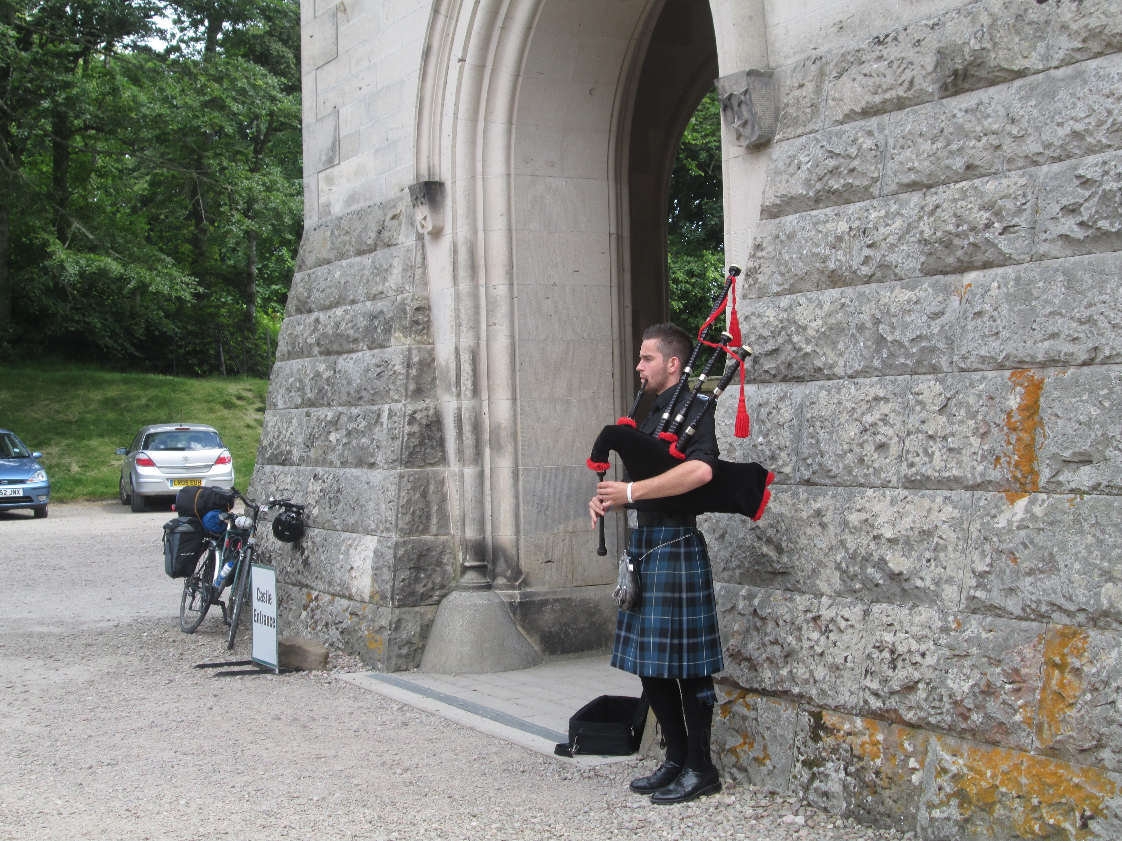 But who was this ‘judicious, kind and liberal’ figure, and how did he and his wife amass the fortunes required to build Dunrobin Castle? Look around the landscape and one is none the wiser. I follow the tourists down the lane to the castle, a spectacular toytown folly built by the Countess in 1851 from the new profits of their 1.5 million acre Sutherland estate. As a tourist coach arrives in, a man starts blowing I’ll take the high road… out of the bagpipes. The entry into the castle’s pricy. As I look up, a man chewing on a sandwich wanders over and kicks off conversation.