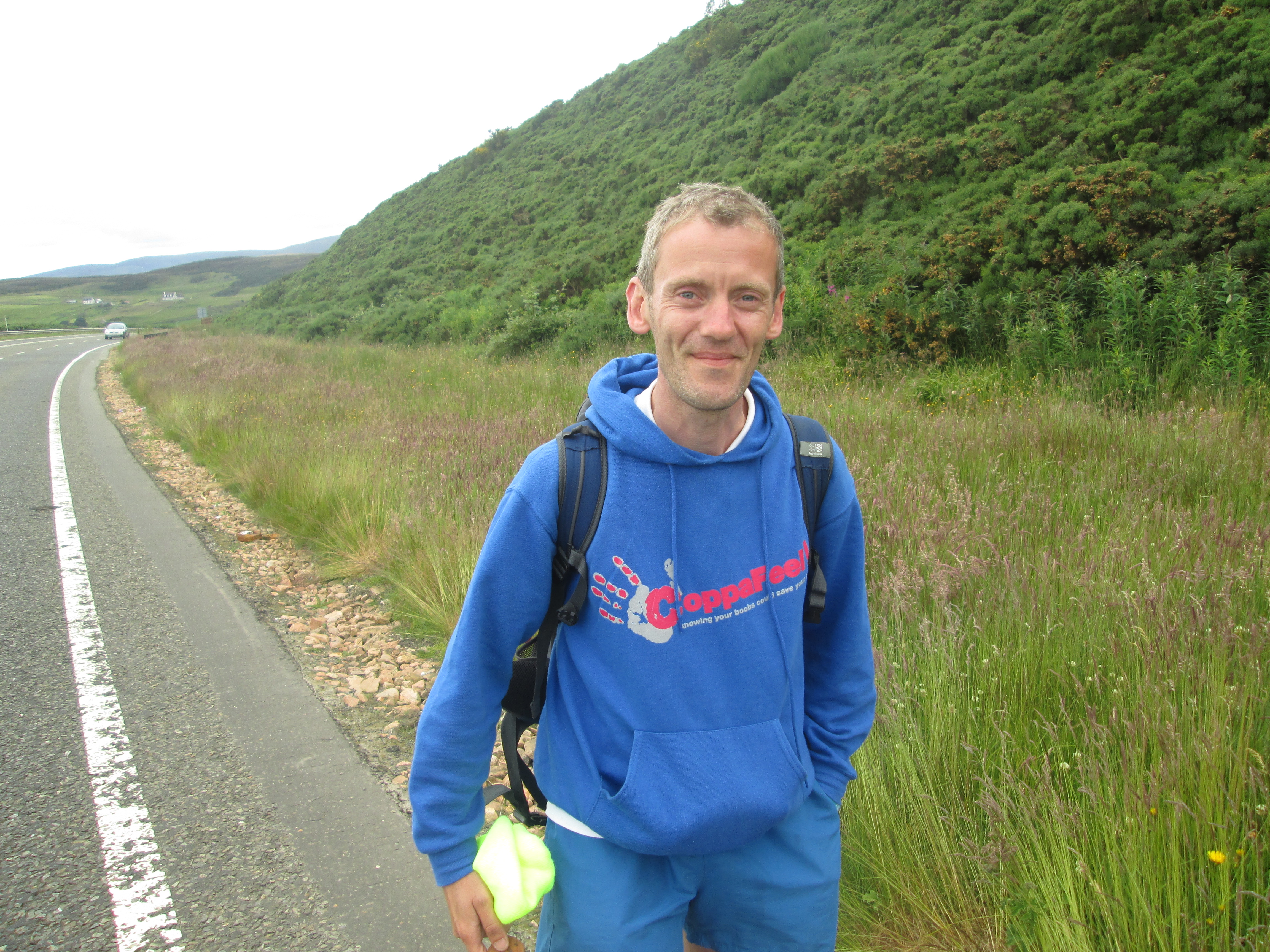 Where to sleep tonight? I have no fixed plan, but after this series of sorry settlements my instinct compels me to push further north. On the lonesome road I spy a walker with a large backpack striding towards me in the distance. Phil Winter is walking all the way from John O’ Groats to Lands’ End to raise money for Coppafeel, a Breast Cancer awareness charity. Please donate some money if you can to a good guy and a superb cause, and follow him @gingertom52.
