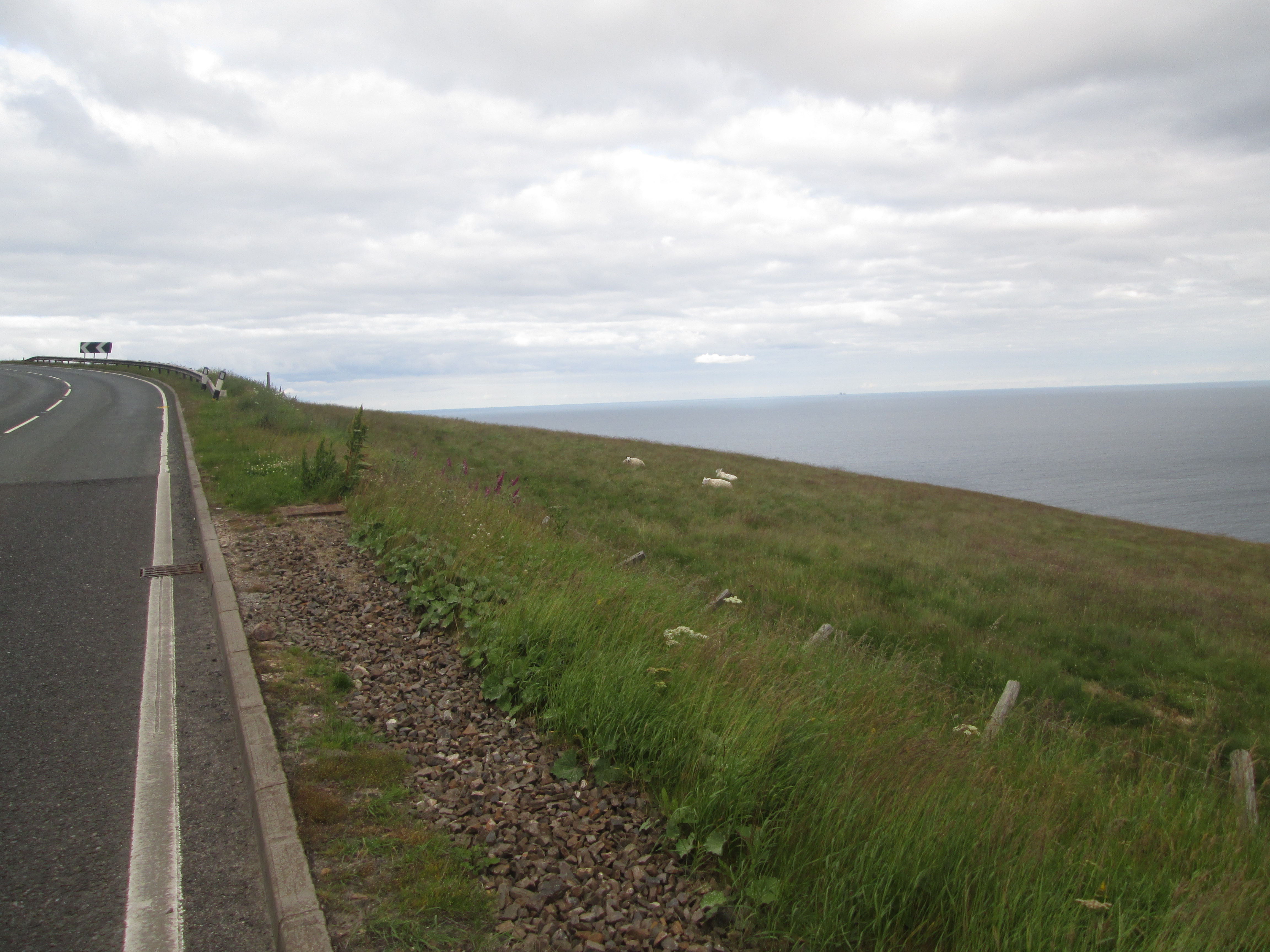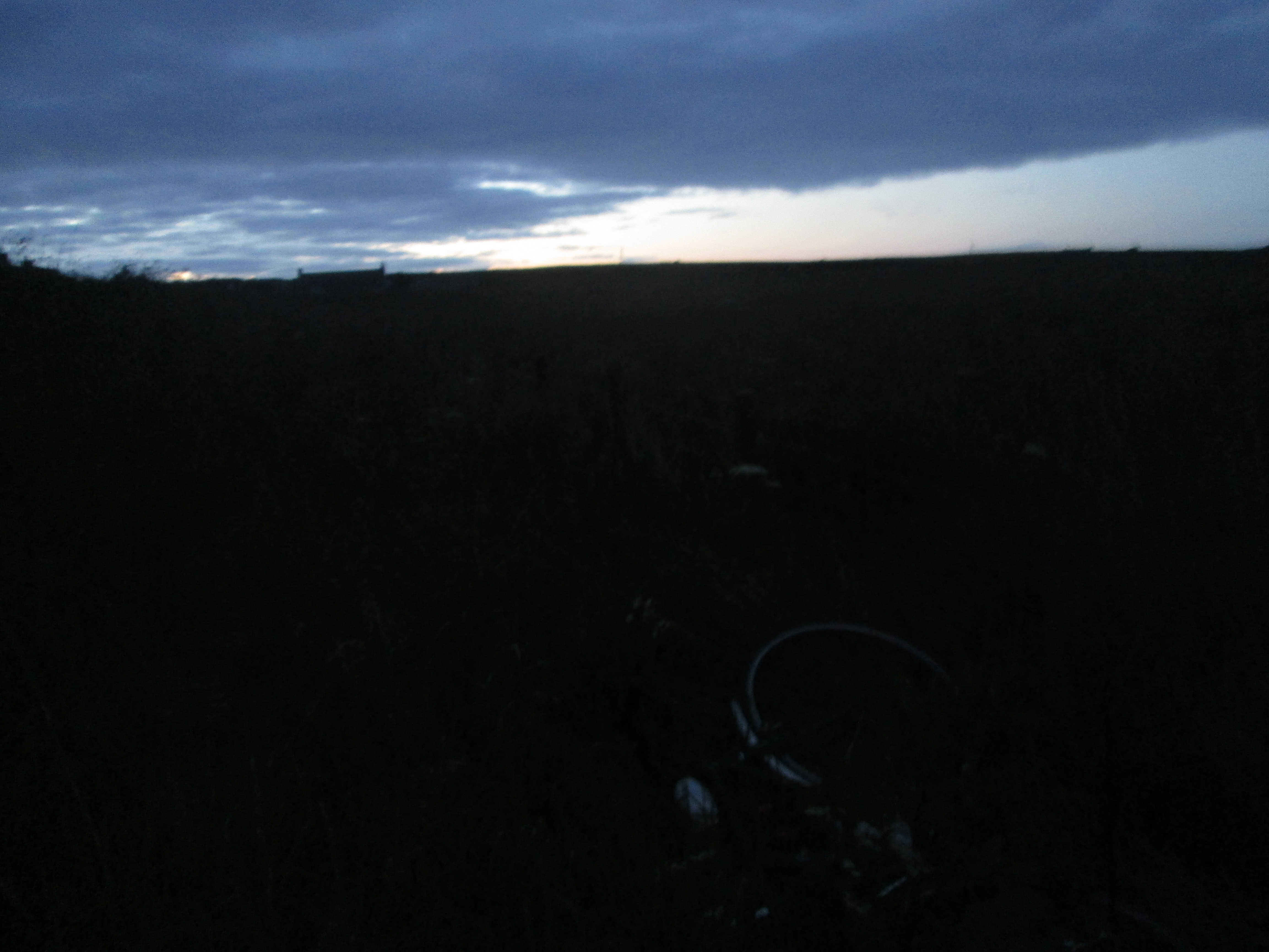 So, in a final squeeze, I press on. It’s about 10.30, and I decide to head north until it becomes too dark to go further. In the setting sun, I pass an airport and then a string of settlements bearing the name of Keiss. It gets too dark thereafter, though the road’s as empty as my stomach, and eventually I spot a large ditch by the road that may hide a tent. Where am I? A few miles south of John O’Groats, possibly. It’s only the next day that I realise just how far I’ve gone.