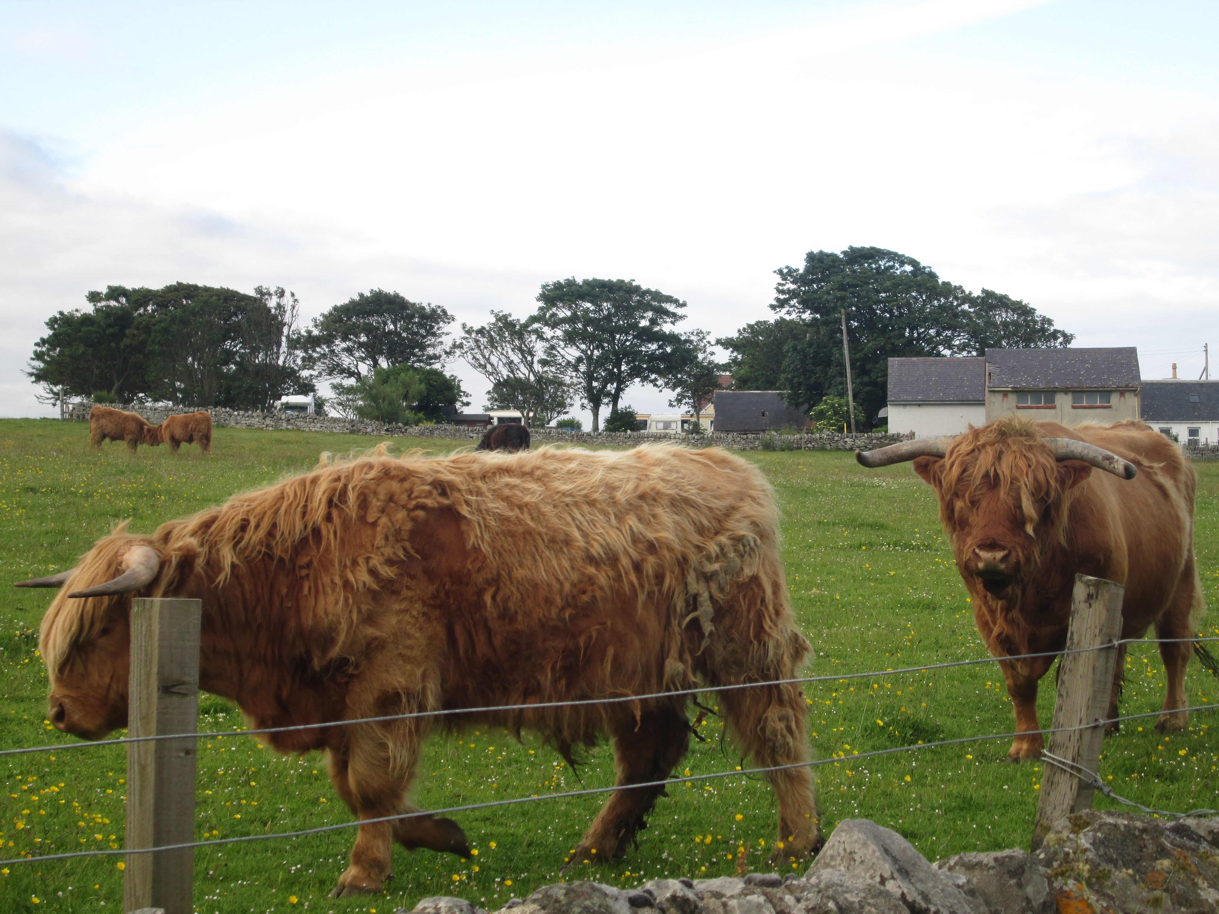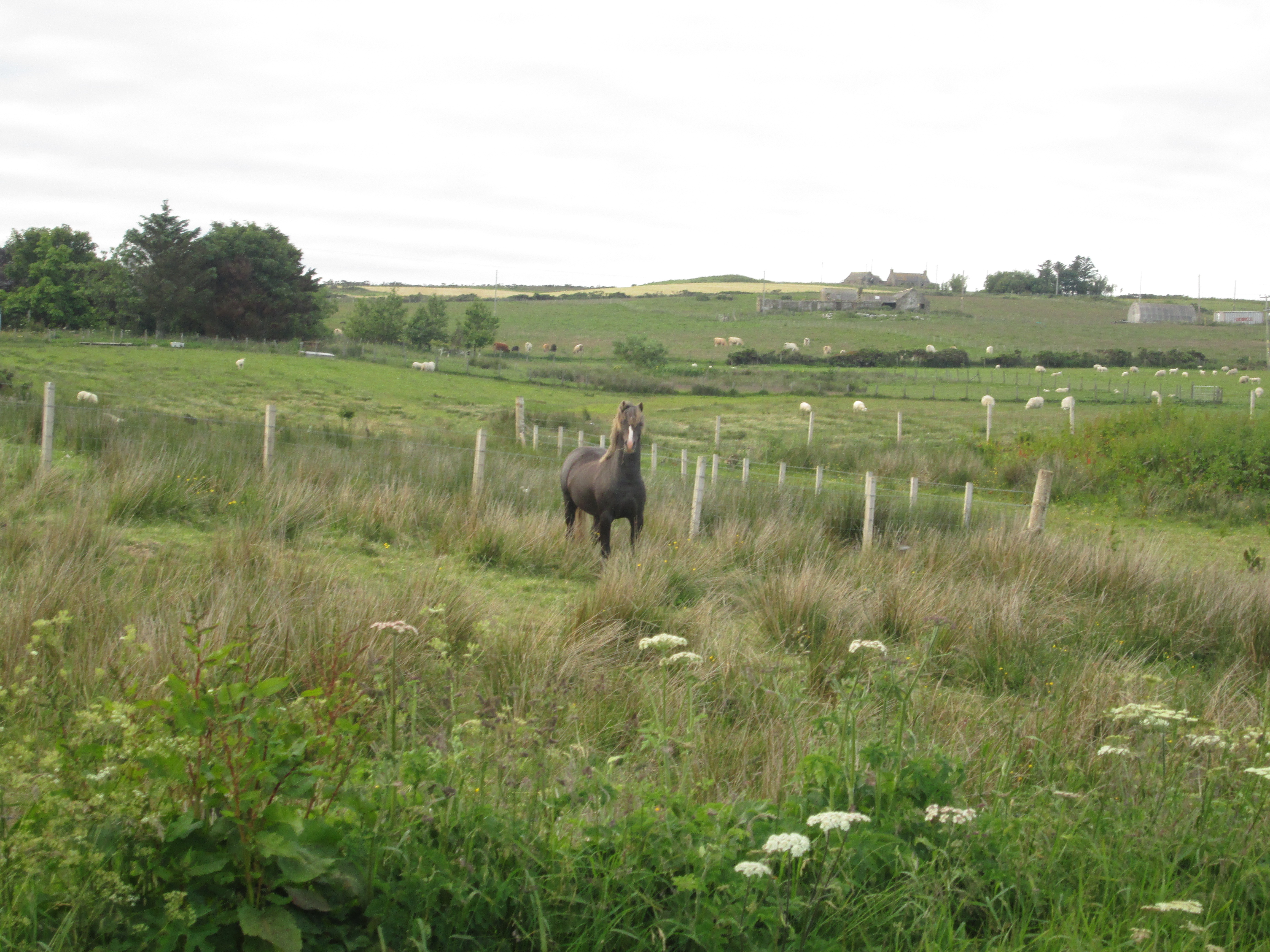 These flutters of conversation keep me alive, but all day I’ve missed the conviviality of towns and conversations. Dunbeath, Latheronwheel, Latheron and Lybster are even more desolate, ghost towns absent of laughter. I take comfort in the abundance of life that lies beyond humankind, in the musical whistling of the wind, and in the buzzard that nearby attacks me after its young nervously runs across my path. I pass a young black stallion that races me across a field, and in the evening hillsides, rabbits pursue each other, hued brown, black, and other mixtures. I spy a Friesian cow and realise how rare these cartoon cattle are round here. Most cattle, and there is an awful lot, tend to be brown or black. So the journey continues.