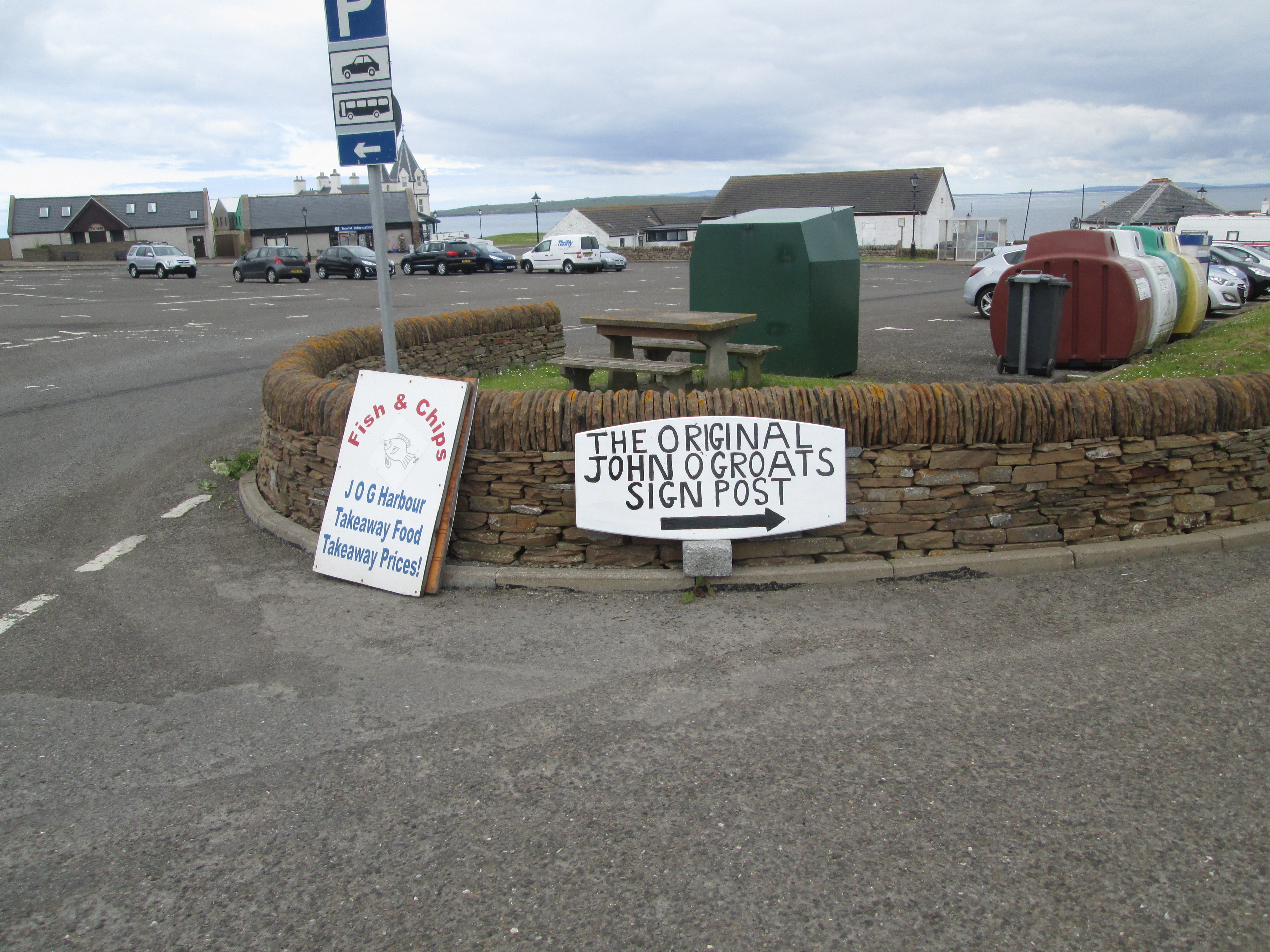 I pedal back to John O’Groats with a morbid hunger to see what tourist trap awaits. It’s nowhere near as bad as feared. An attractive visitor centre sits between a food kiosk, souvenir shop and harbour, as well as a small caravan park and other local businesses. A Victorian hotel stands over the seas with the grateful if desperate airs of an elderly butler recalled to service after being unfairly dismissed over a scandalously misjudged comment. The only thing that jars with the scenery, and in the process restores what I’d expected of such a monument, are the aggressively placed signs and set-up of The Official John o’ Groats sign, where in exchange for at least £8 one can get a photo taken by a signpost.