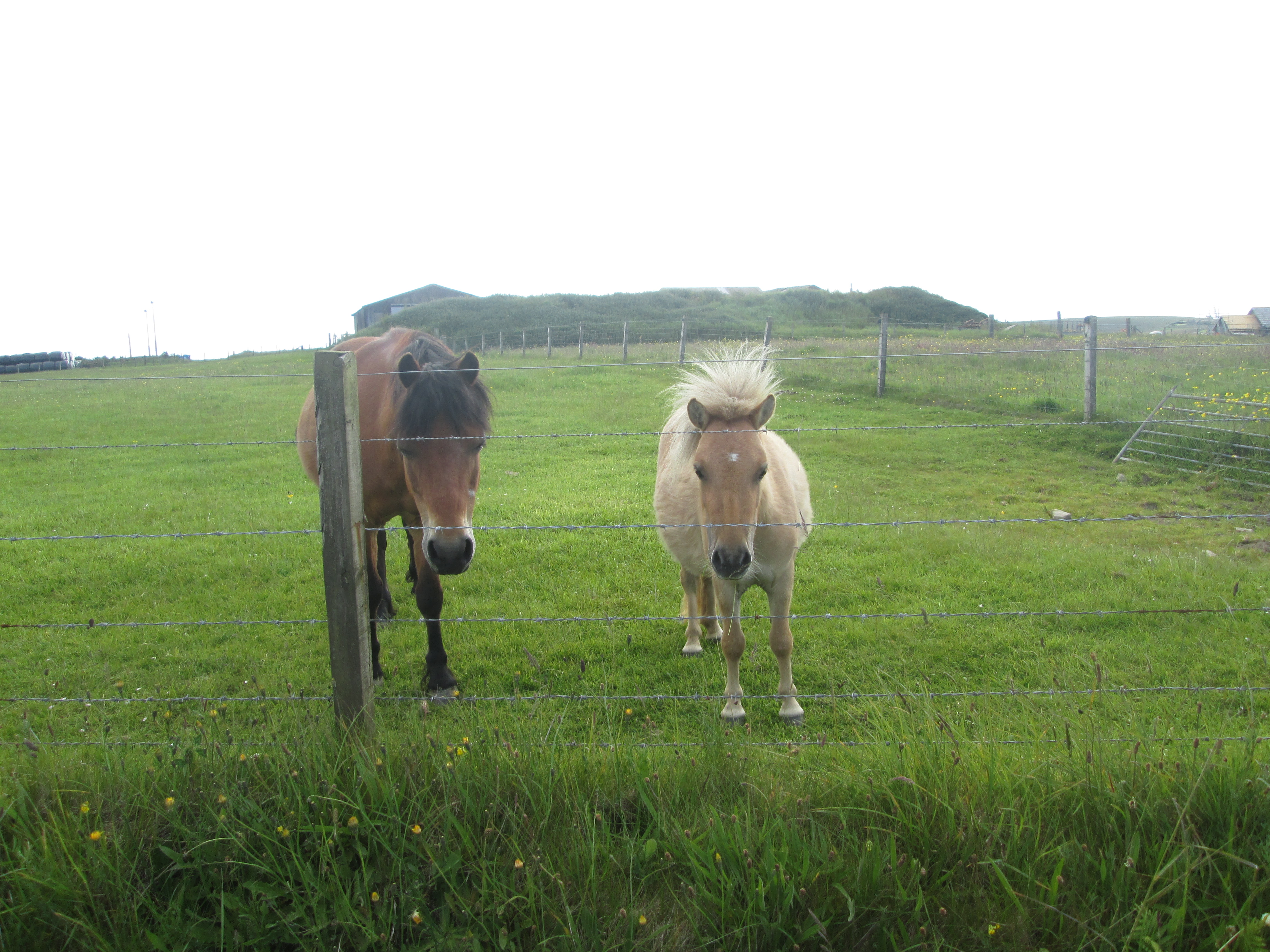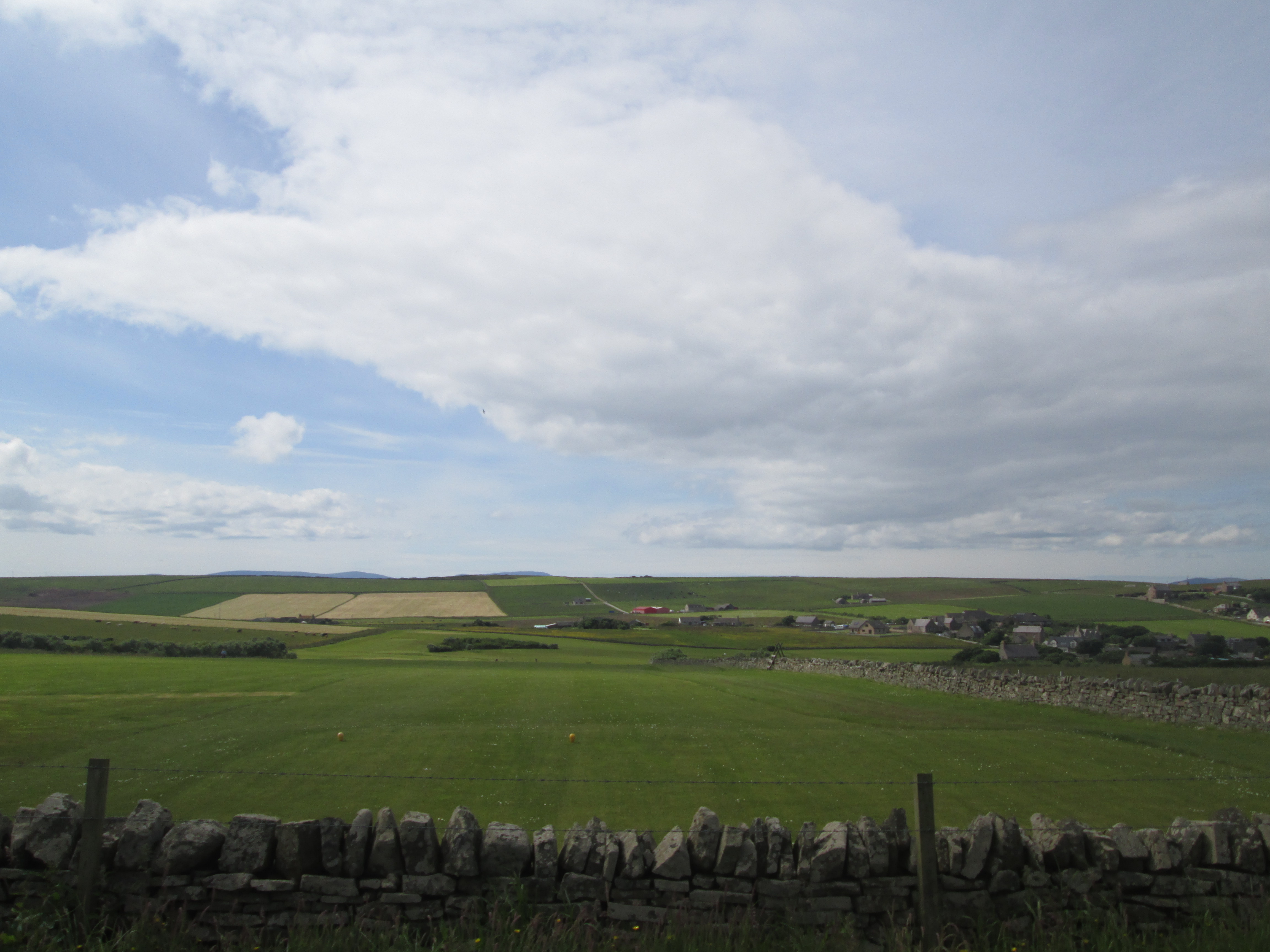 It’s a comfortable enough passing on this sunny summer’s day, and the ferry drops us off at the village of St. Margaret’s Hope. The small brown dwellings of Orkney, sparsely distributed along its waves of grassy slopes and rolling hills, greet the eyes with a lazy pleasance. I follow the traffic in a dreamy haze when a man by a car, on the other side of the road, shouts to me: