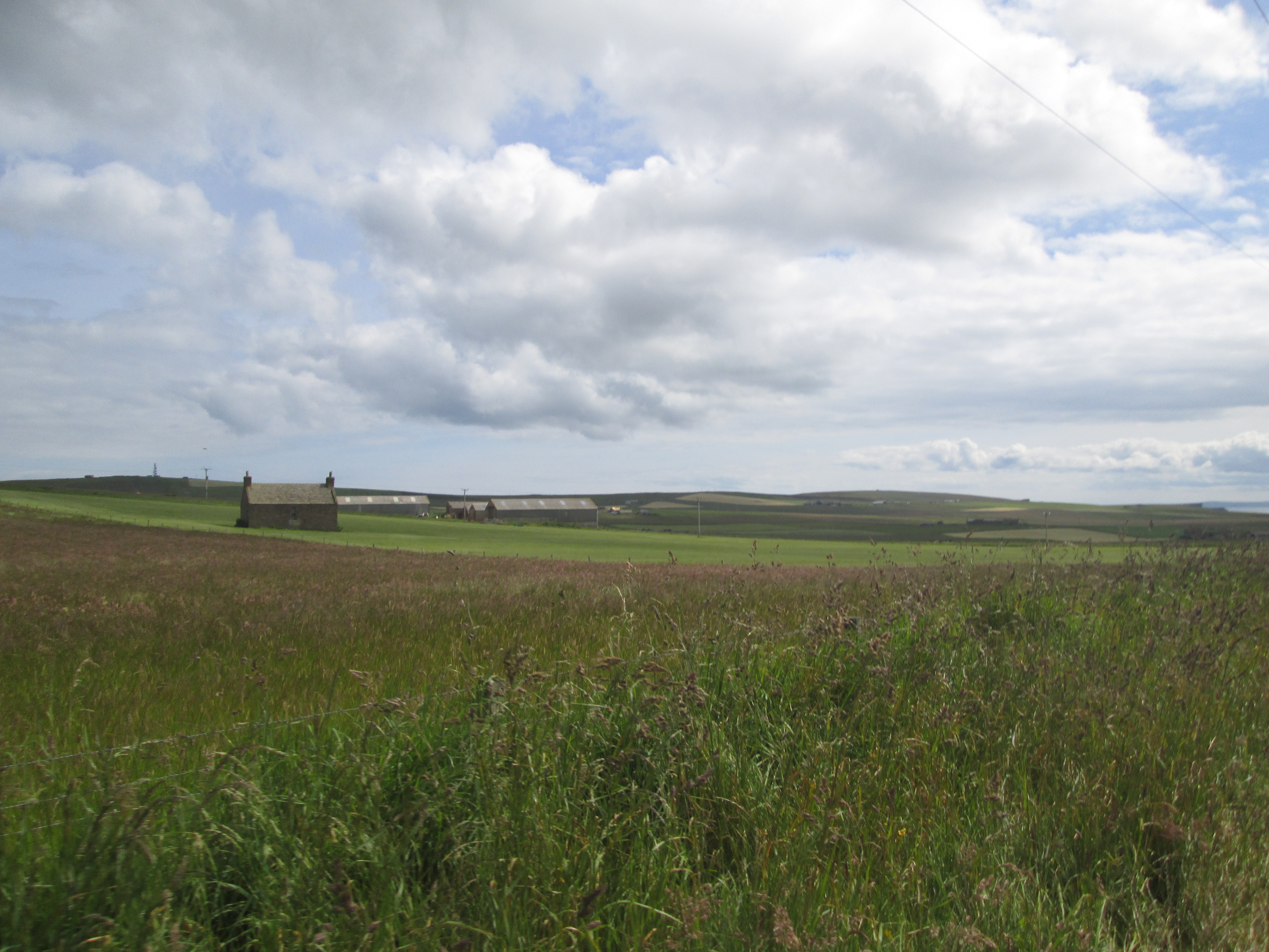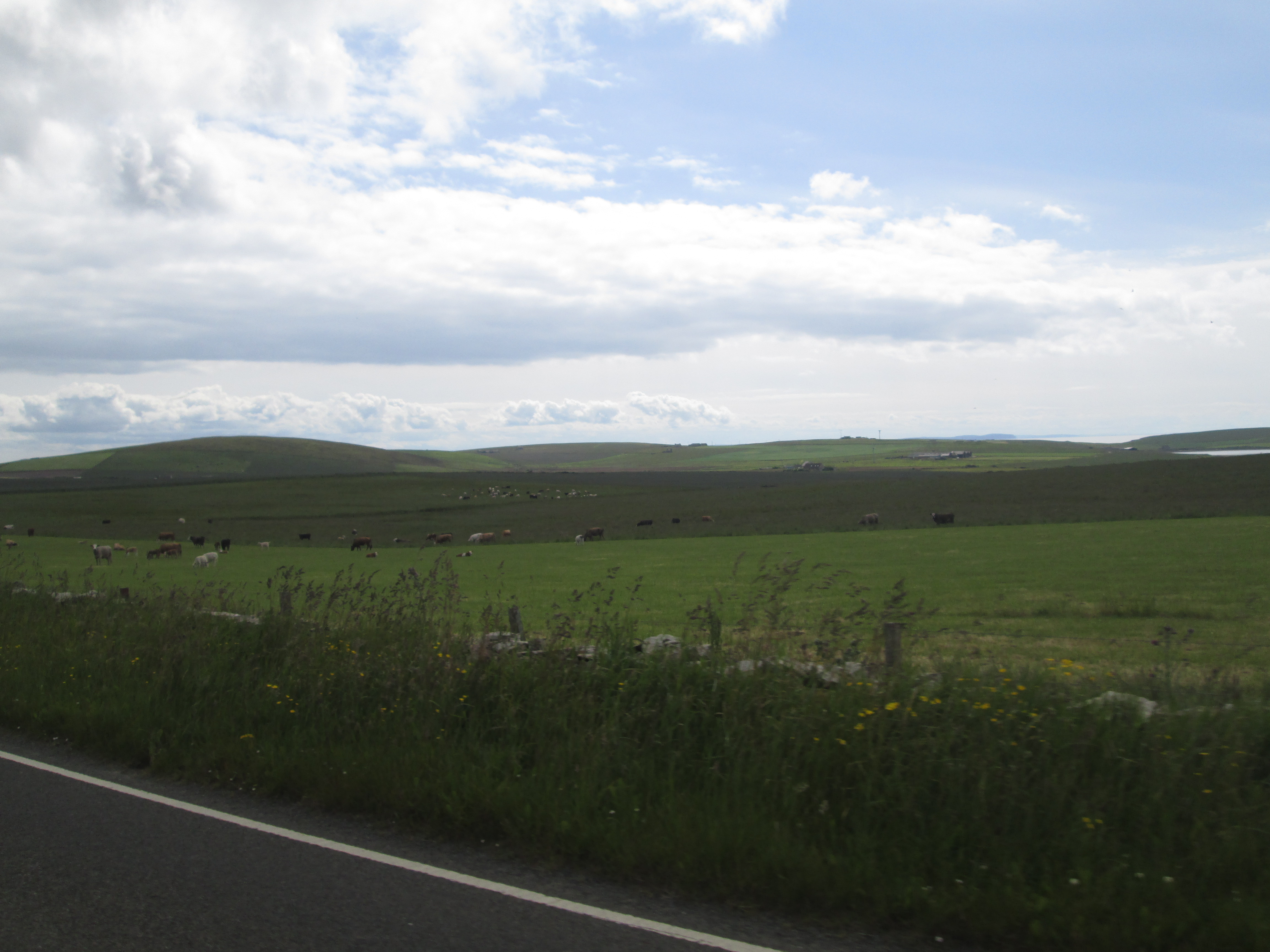 We drive on, by the main settlement of Kirkwall, which by English standards would just about qualify for tiny town status, then head on into the rolling country of Orkney, with its dozy cattle and dearth of arborescent stuff. Russell points out the wind turbines as we pass. ‘It’s an eyesore!’