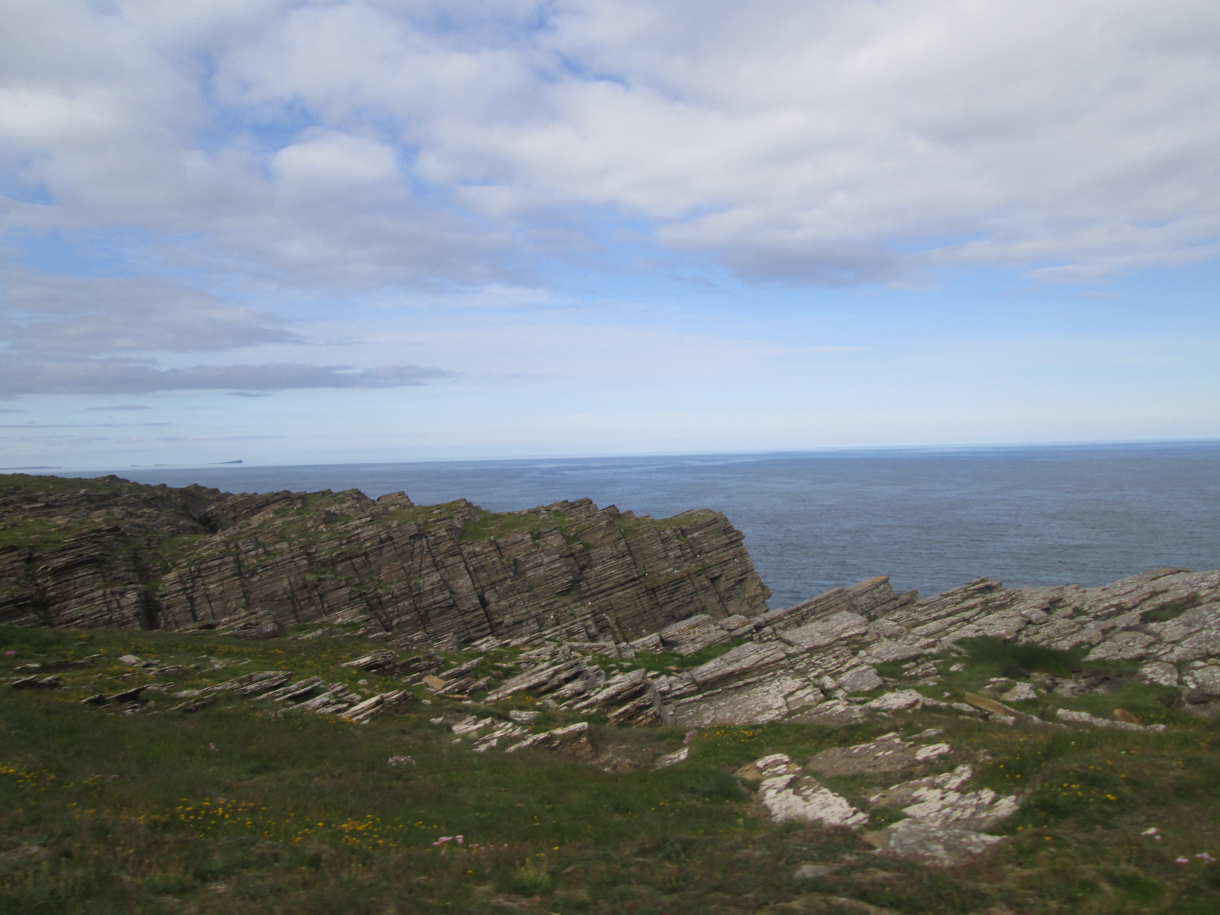 Leaving Dave at the cusp of the hill, I relax back and whizz down into the small, spread out set of dwellings that make up John O’Groats. Yes, the place is a little too good to be true. I detour right to Duncansby Head, which is actually the most north-easterly point of Great Britain, and site of a rather spell-binding view of the North Sea and nearby Orkney Islands. Nearby, I meet Vivienne from Skegness. What brought her here? As she walks two wee dogs, she smiles and says simply, ‘look around you.’