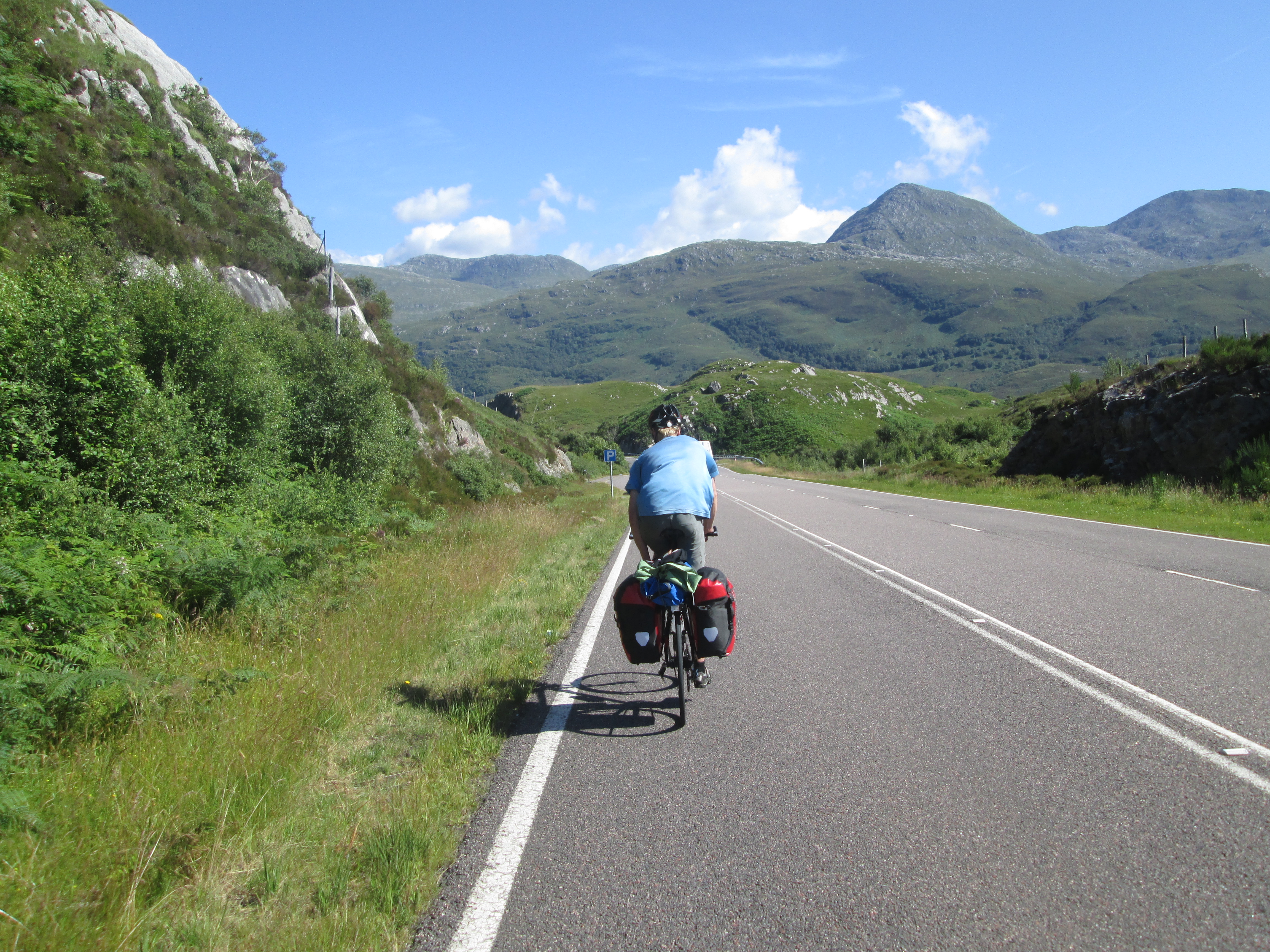 As I pedal on, I spot a young cyclist struggling with his chain. As always, I offer to help. It’s a vaguely fixable problem, and as a result of the confused discussion we end up cycling together for quite some time. Ben is from Switzerland and is a Master’s student in geology. His road is somewhere up here, but where exactly, he’s not sure, so we cycle together for what ends up being around forty five miles. The route is an absolute pleasure, zipping up and down small hills with mountain peaks playing all about us.