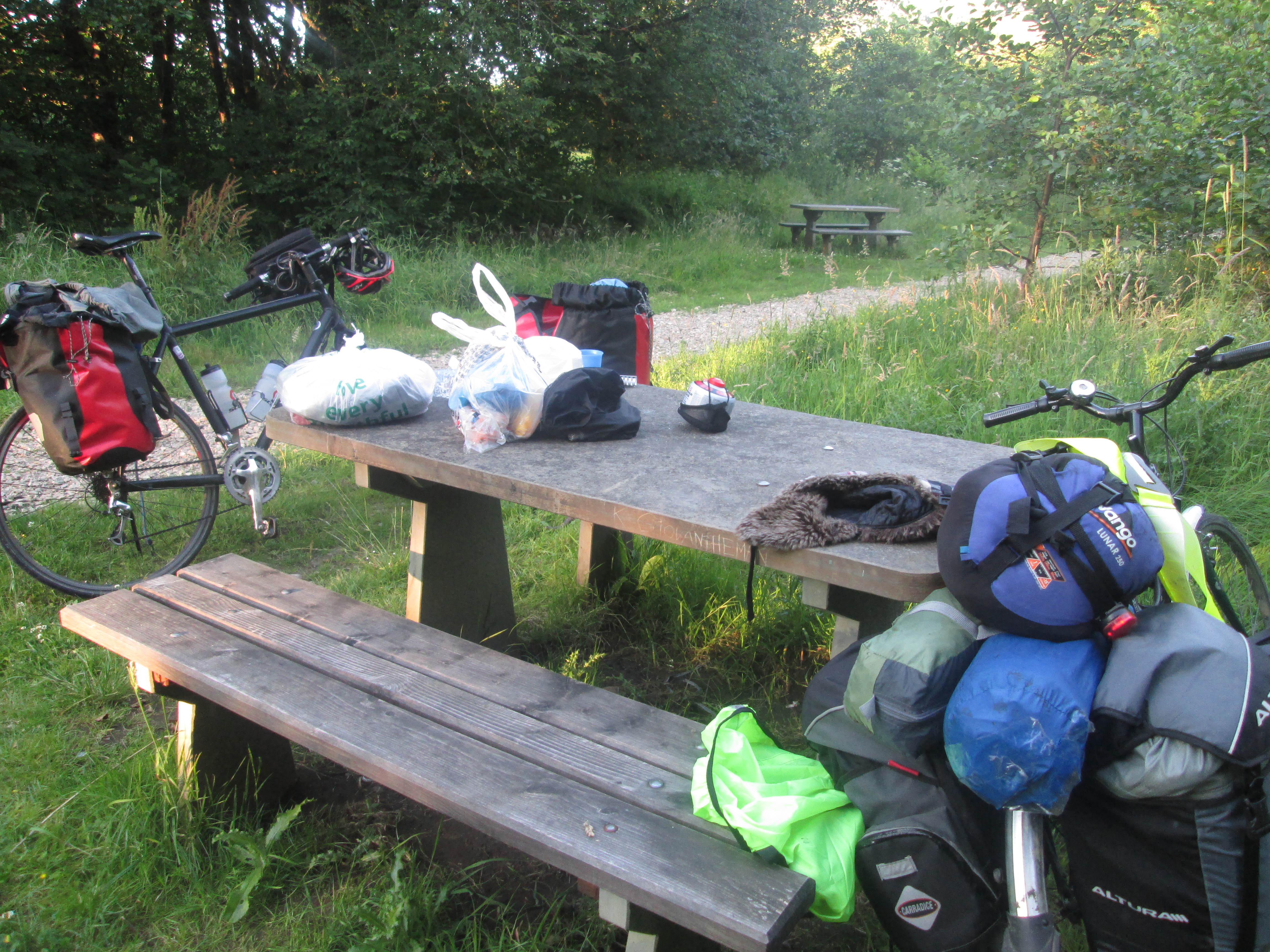 It’s odd returning to a proper town. I see traffic lights, petrol stations and roundabouts, and even hear an aircraft nearby. All this is deeply disorientating! I even feel the pressure to lock up my bike whilst we go into the pub, something I’ve not done for at least a week.