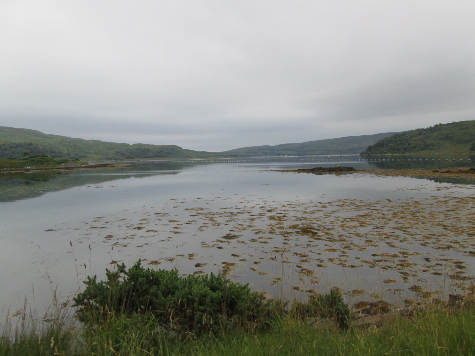 Mull is always changing. The barren fields and craggy sporadic rocks that surround Fionnophort give way to more undulating and fertile plains a little before Bunessen, a dozy hamlet that flowers within the fissure of a deep and lovely bay. The trail then swings back – UP! – into a rolling bouncing up up and down through cleared woods, then transforms again. We’re bordered left by Loch Scridain, a sleepy and flat expanse of water too ancient and modest for the dramatics of deep fir forests and plesiosaur sightings that surround your average breathtakingly beautiful Highlands loch. Then it’s Pennyghael and its flattened plains eerily depopulated for such a majestic spot. At least I pass the point beyond my meanderings yesterday, heading further east now towards Craignure, Mull’s only other ferry port. The road then cuts through a long mountain range overseen by kingly Ben More. Clouds of flying ants begin to stick to the sweat on my shirt, legs and lips. Puh, puh, PUH!