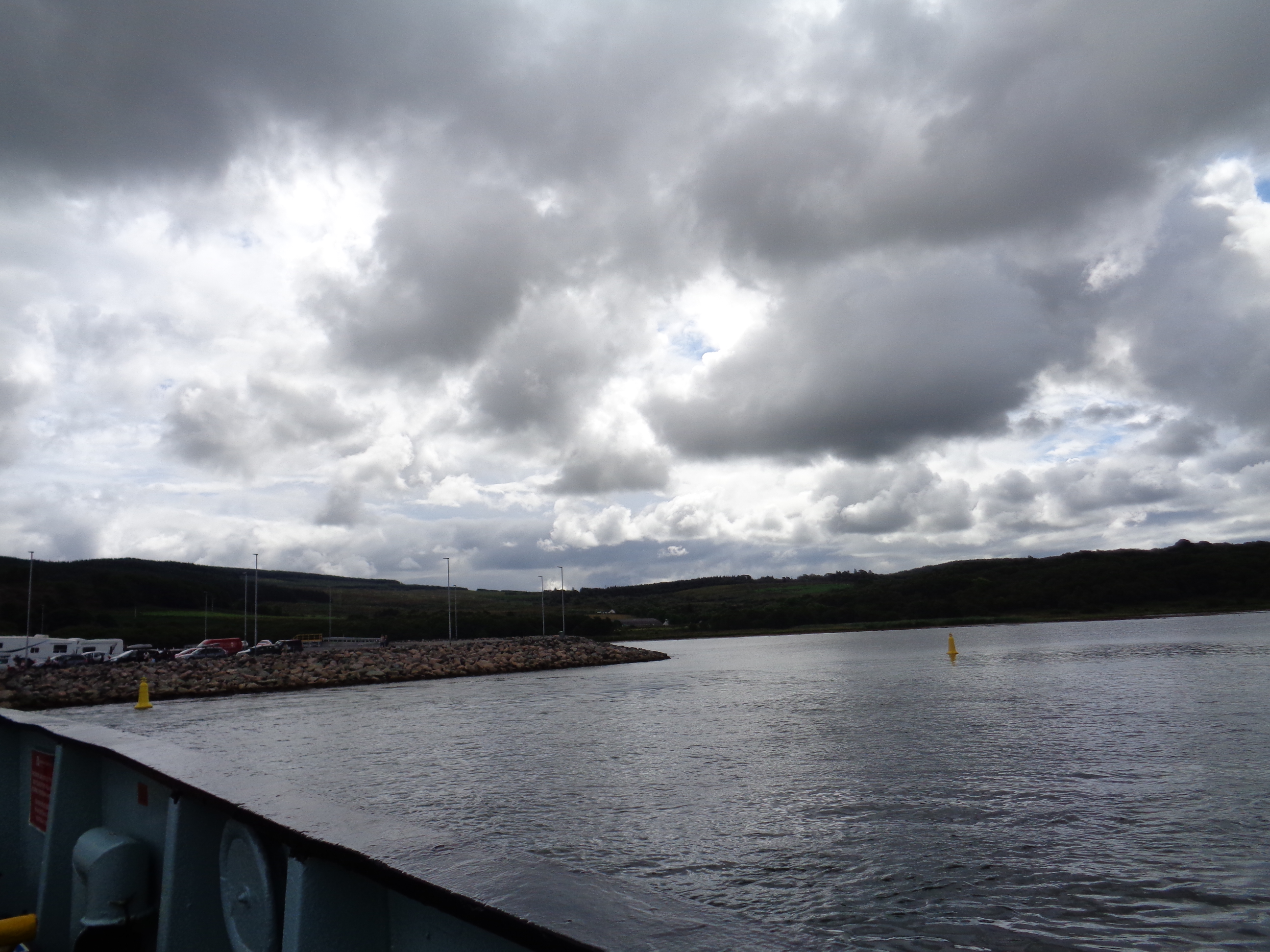 The rain stops at Colintraive, and I spy Anthony racing in the distance. They’ve somehow managed to catch up with me again, despite being at least half an hour behind me. Grant even has a puncture. I must be a very slow cyclists! We’re all just in time for the next ferry, this time a brief hop to Rhuabodach across the water.
