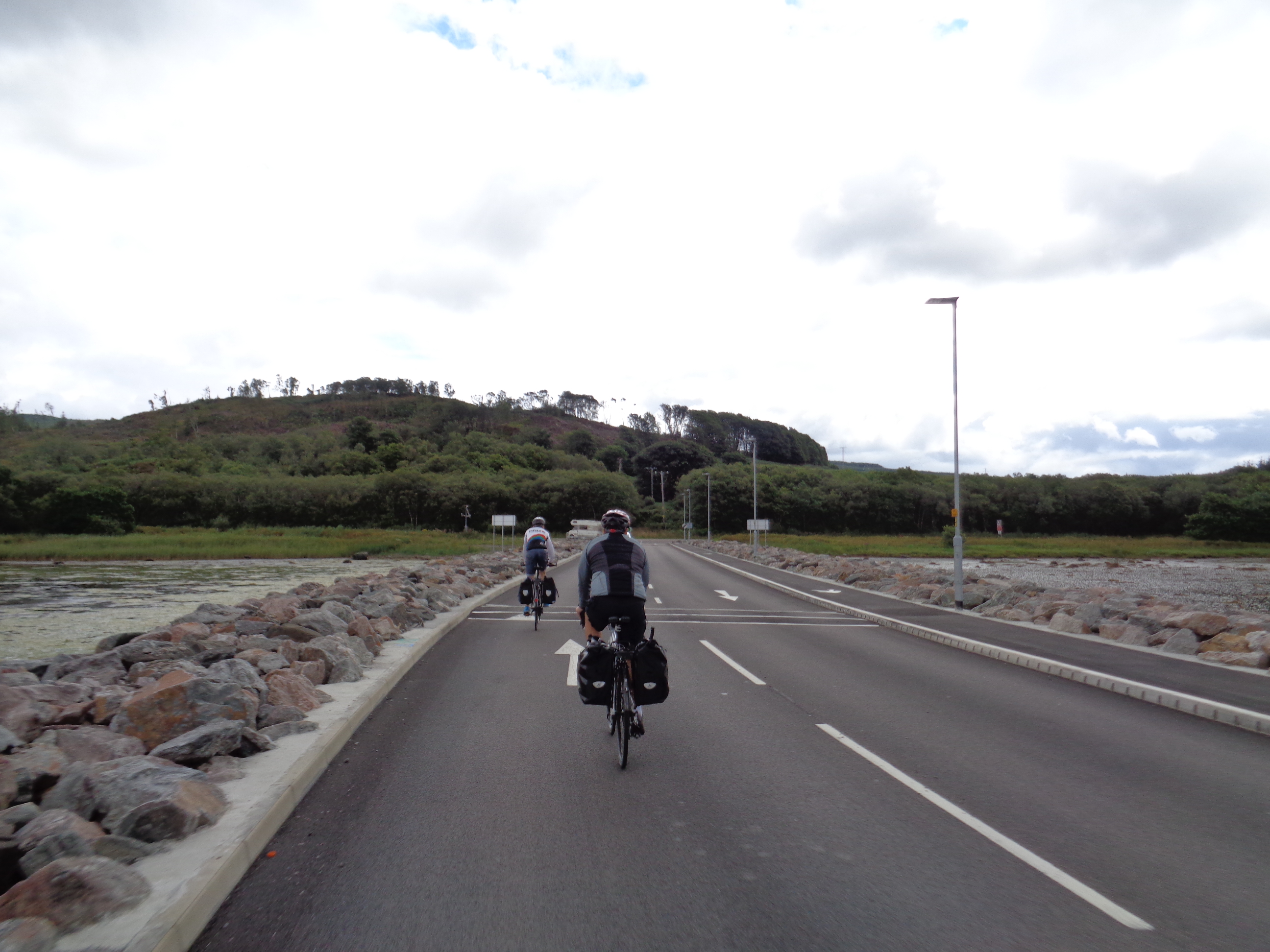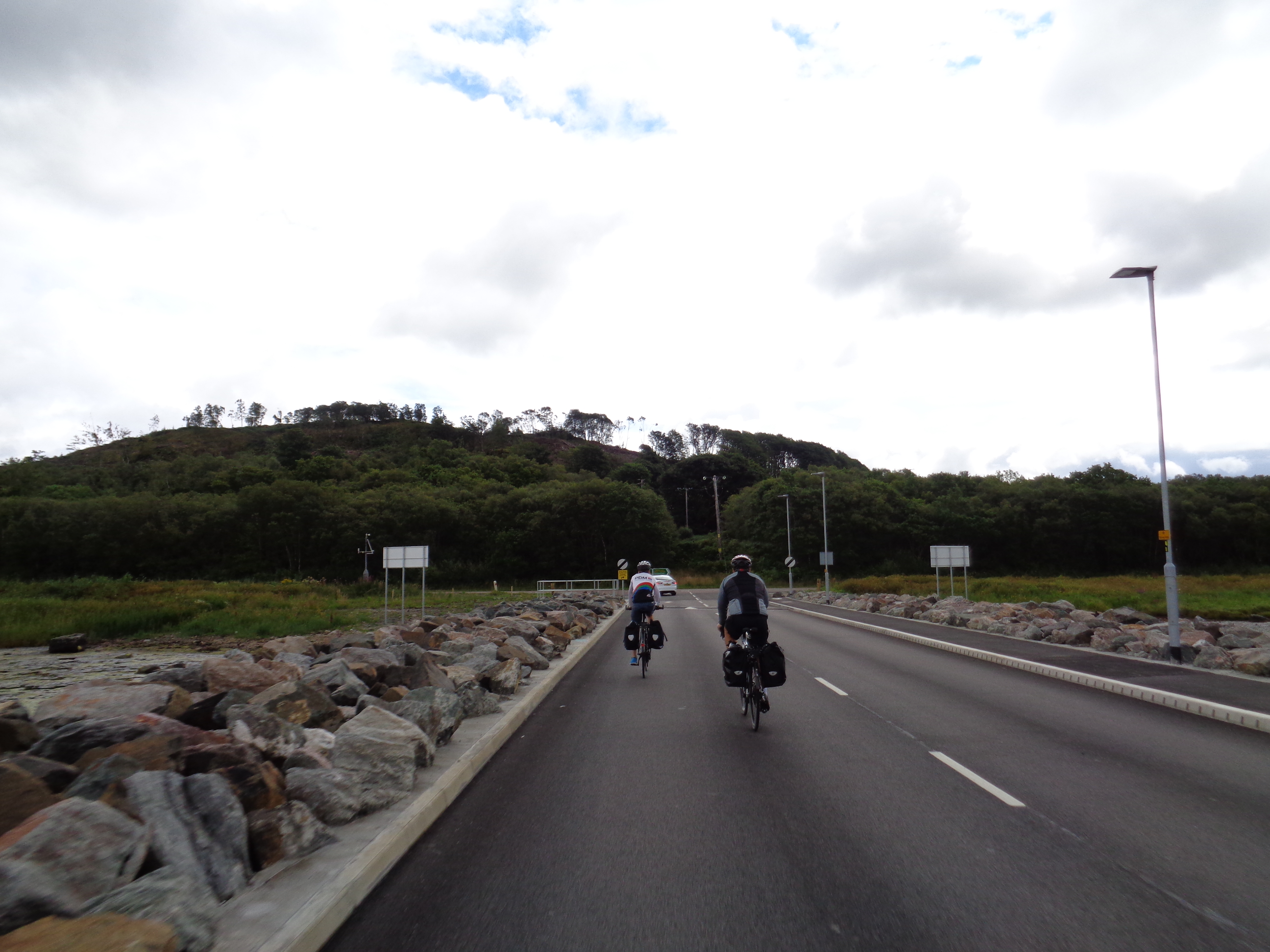 There’s not much here at all, just a series of new houses. Grant tells me that they’d attempted to set it up as a new port with a marina but ‘I’m not sure it’s been a success’. Now, at last, there’s no need to rush, and there’s a nice long road ahead of us around the Isle of Bute. The weather’s starting to look menacing, but we take the ride gently, and get talking about children. Grant tells me about his two children. His son’s nearly 17, and he’s nearly 50.