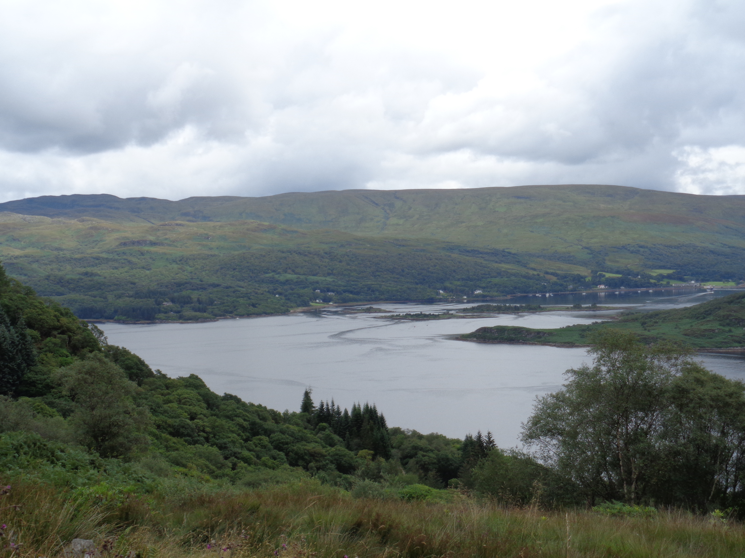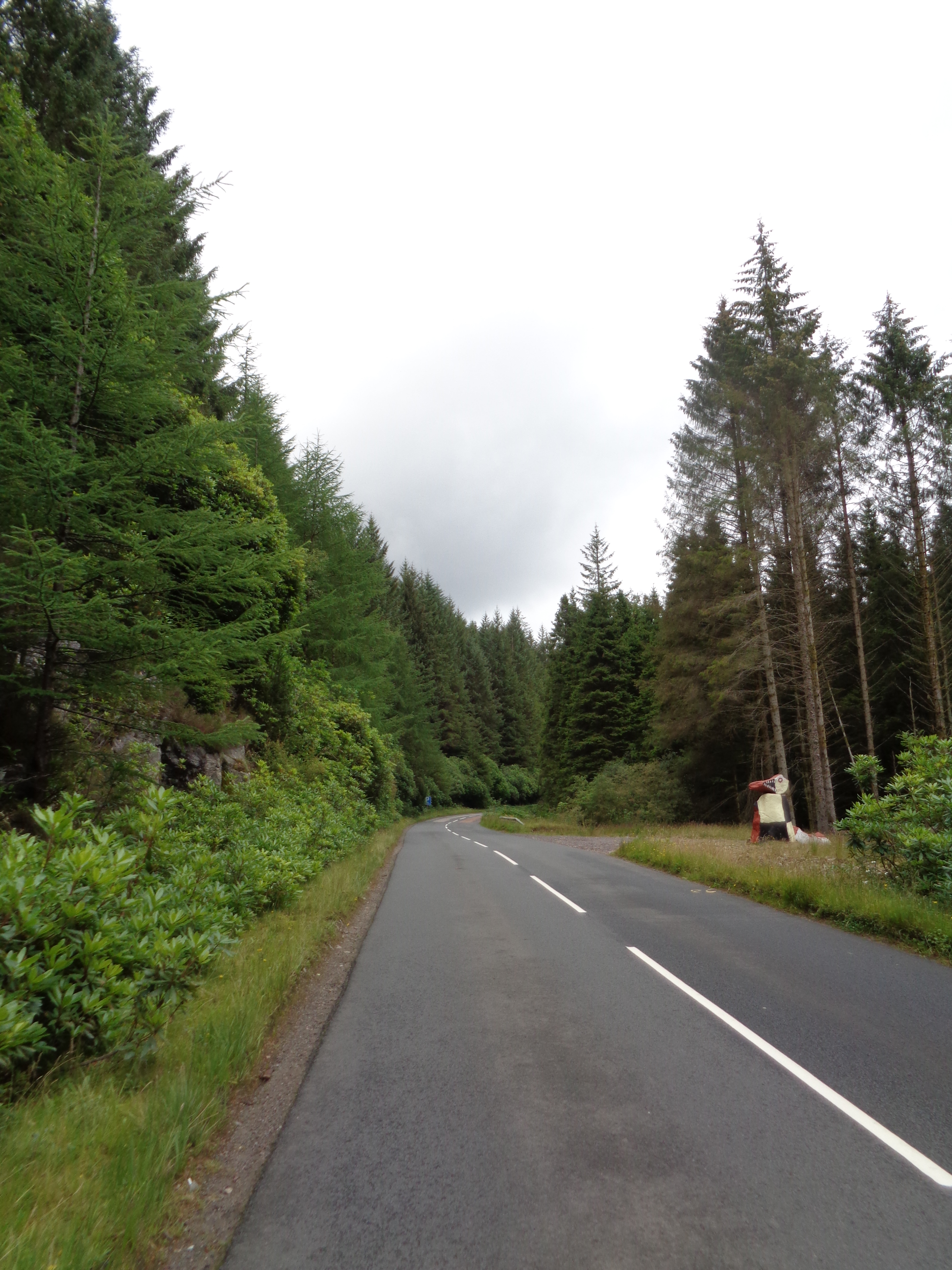 These conversations correspond with the contours of the Cowal peninsula and its climate. The weather is changing from sunny to a confused, overcast grey. I feel a dampness in the breeze which suggests the onset of rain, whilst the road undulates here and there but along a relatively dull rural countryside, the drama of other parts of Scotland missing, though at least lacking in traffic. We reach the small village of Tighnabruaich, and part ways again. Grant has a friend who lives here, so we exchange farewells. I’m warned of a steep mountain directly ahead.