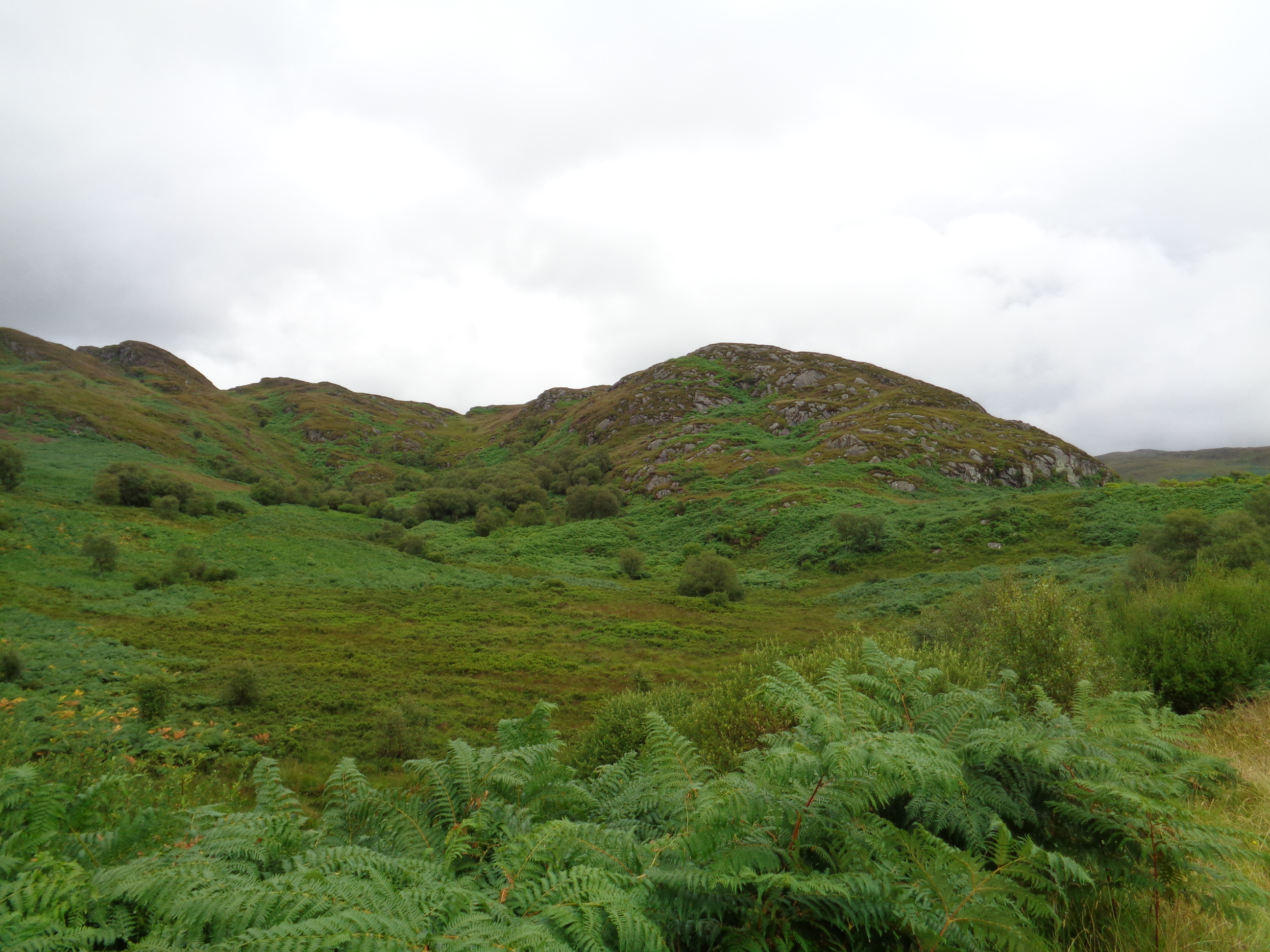 I am in a monsoon. Everything rapidly becomes soaked through, and it becomes near impossible to see ahead of me. But once you’re soaked, what can you do? Were to find shelter, though there is none, I would quickly freeze. It’s the most intensely torrential rain I’ve experienced, and doesn’t relent for about an hour. I manage to make it up along the hill and through a thick forest, before snaking back down towards the village of Colintraive, where the next ferry on the trip awaits. There are more hills to ascend along a relatively bare and desolate stretch of rugged hillsides and forests. After all that, I am truly shattered. My shoes are squelching.