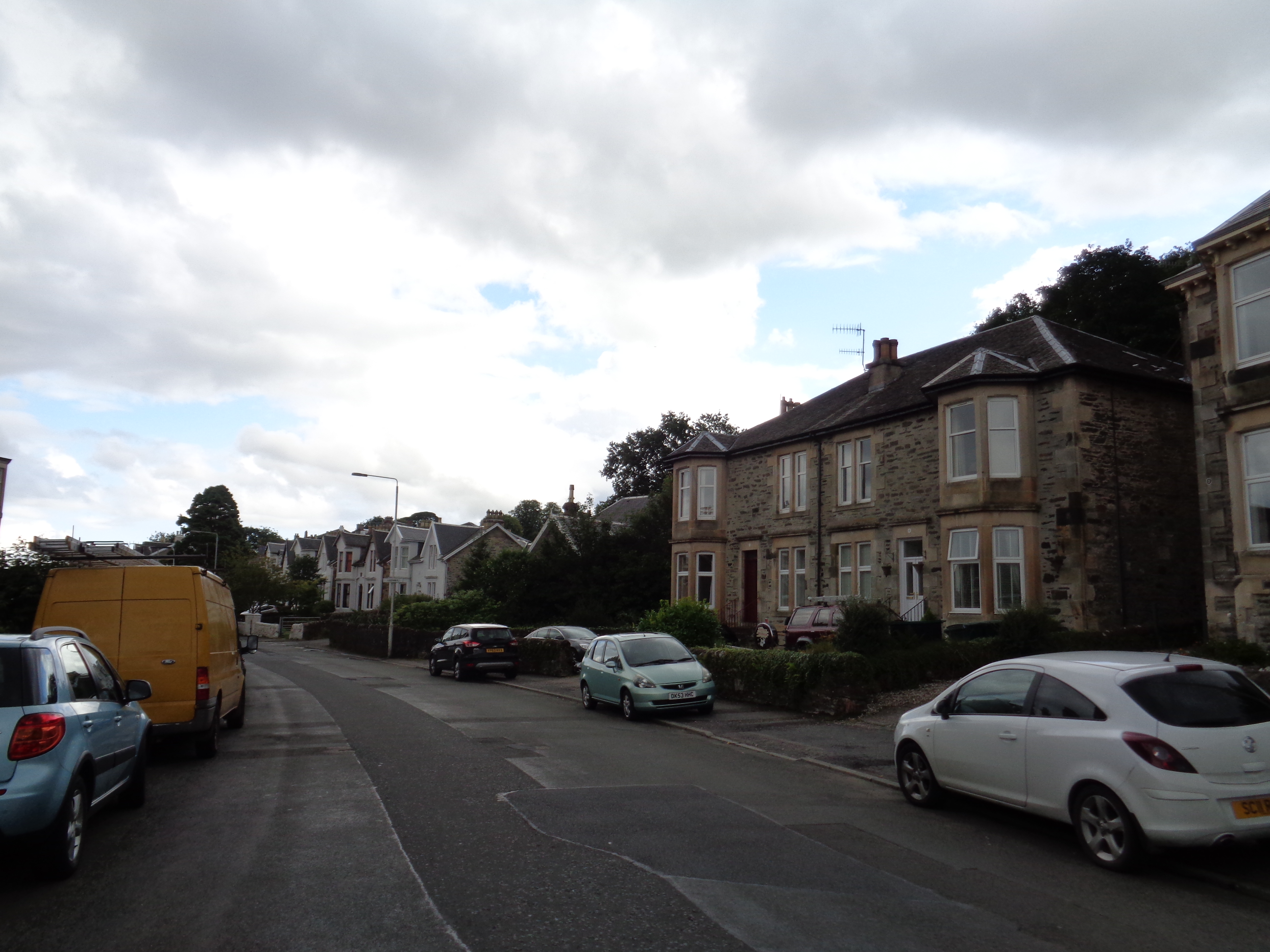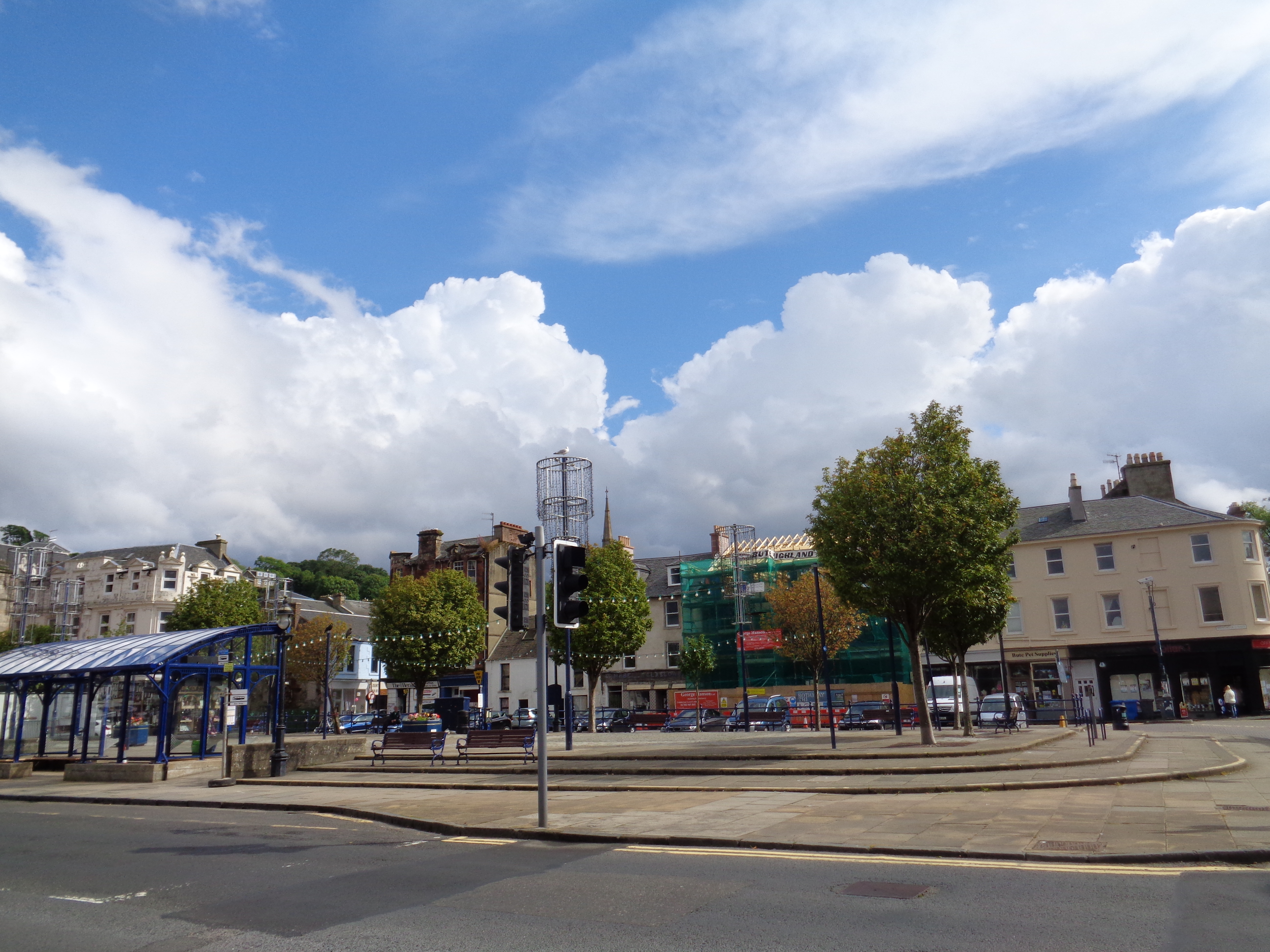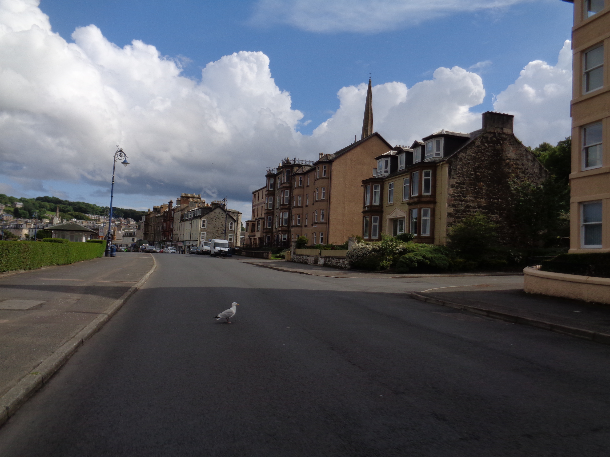 With the aid of a sewing needle and camping fork I lend them, the pair manage to pick out a thorn. But it’s another sprint ahead, and wisely they suggest I start on ahead whilst they fix the tyre back on Grant’s bike. It’s a nice coastal route, flat with pleasant views of Loch Striven to my left, with the interior of the land hugging my right. I pass through Port Bannatyne, a genteel looking Victorian fishing village with a number of derelict boats sitting at its front like a family’s ornamental souvenirs. In the distance I see Rothesay, a large Victorian seaside resort, a little like Great Yarmouth, with large dour houses sitting on a promenade and an old jetty. It looks grand and a little imposing ahead, far larger than I would’ve possibly expected in these surroundings.