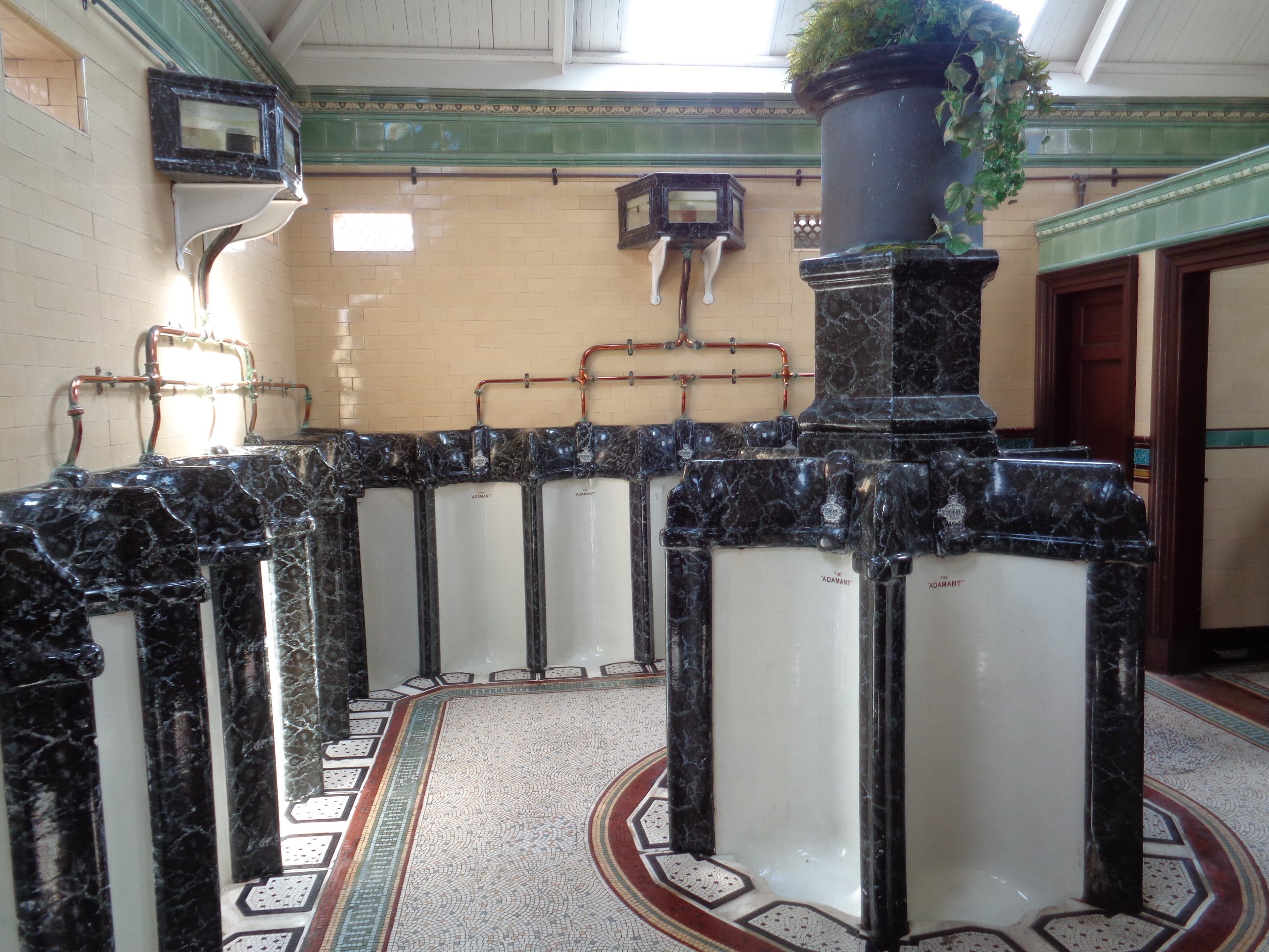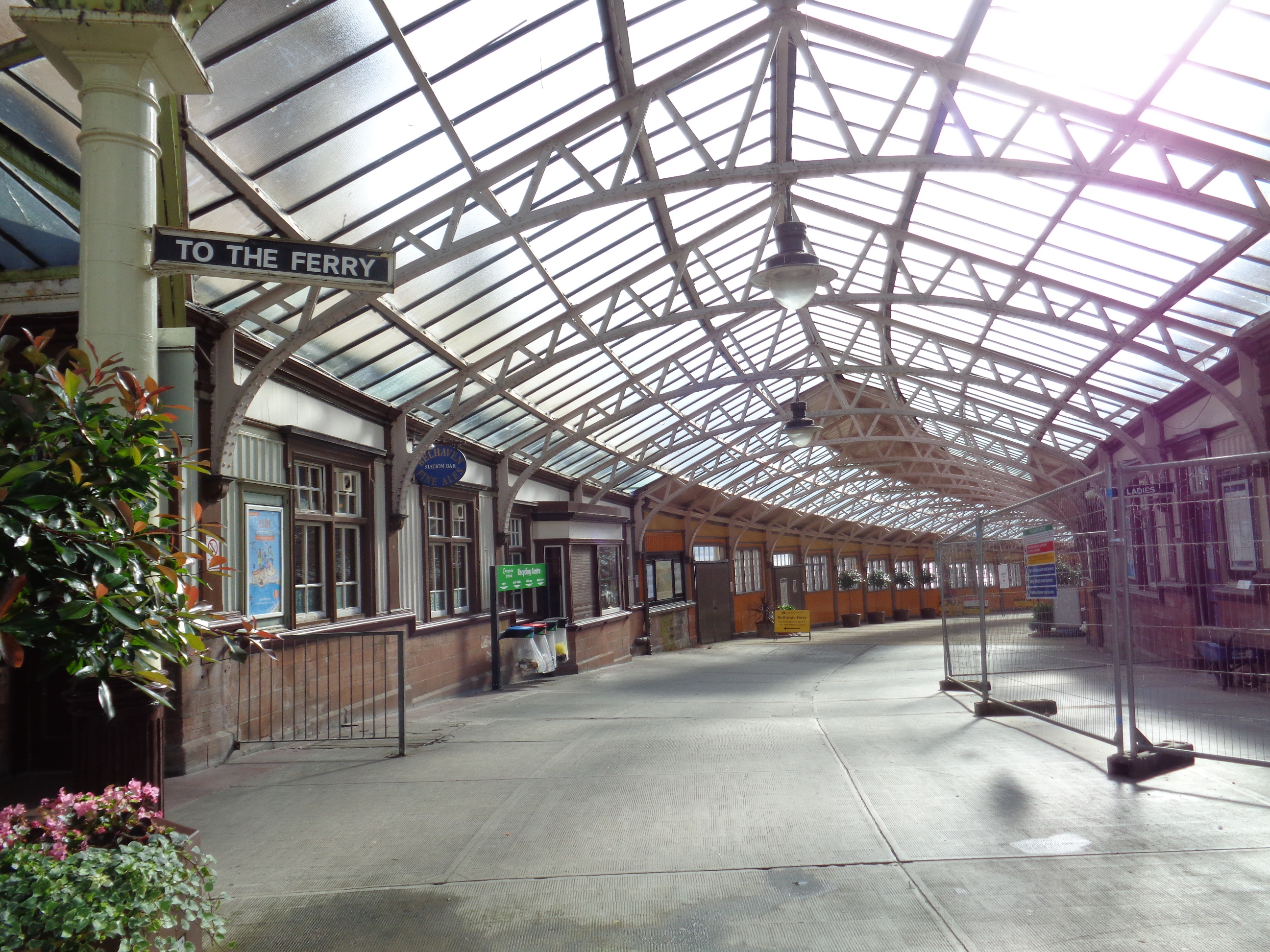 Sadly the rain starts hitting hard again. It feels unfair. Everything I own is already soaked, and I’m freezing cold. Point proven! Can I just dry out? But no, the moods of the weather have no regard for human convenience. The town arrives without any fanfare and represents a faded dream. There are plenty of ice cream parlours and fishing shops, and a compelling art-deco Pavilion built for a once aspirational holiday resort. There are old rain shelters and pleasant greens that border a wide promenade and an unfrequented road. The town merits exploration, but we’ve got to catch a ferry. There’s just time to inspect the grand Victorian toilets by the ferry harbour, plush and neat with ornate details. As I take a piddle in one of the luxurious cubicles, well worth the 30p entry, a coachload of French tourists land and take documentary photographs of every feature.