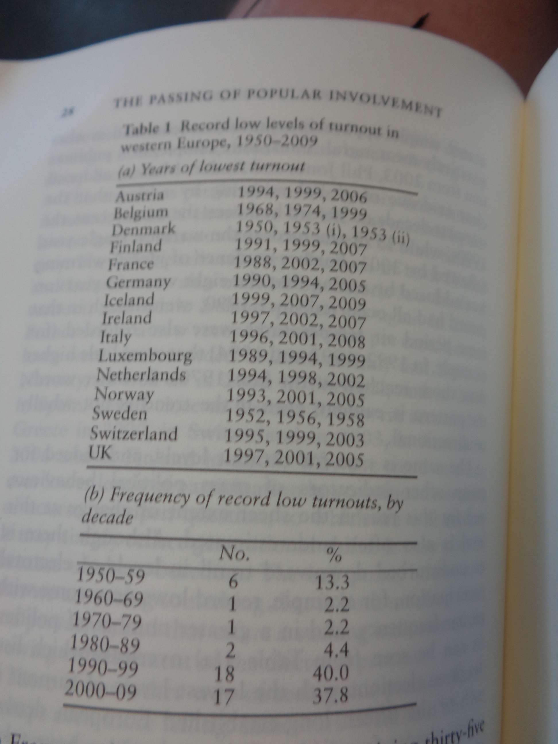 I have these thoughts in mind as I leaf through Peter Mair’s Ruling the Void, a book I’d picked up in London along with a collection of Thomas Paine’s writings. Both are now completely sodden by the rain, pages all stuck together, but remain just about legible. Mair died before finishing the book, but its argument is that the age of democracy is passing. With the decline of support for political parties, and a corresponding decline of interest and engagement in electoral politics, governments are becoming increasingly representative of an elite.