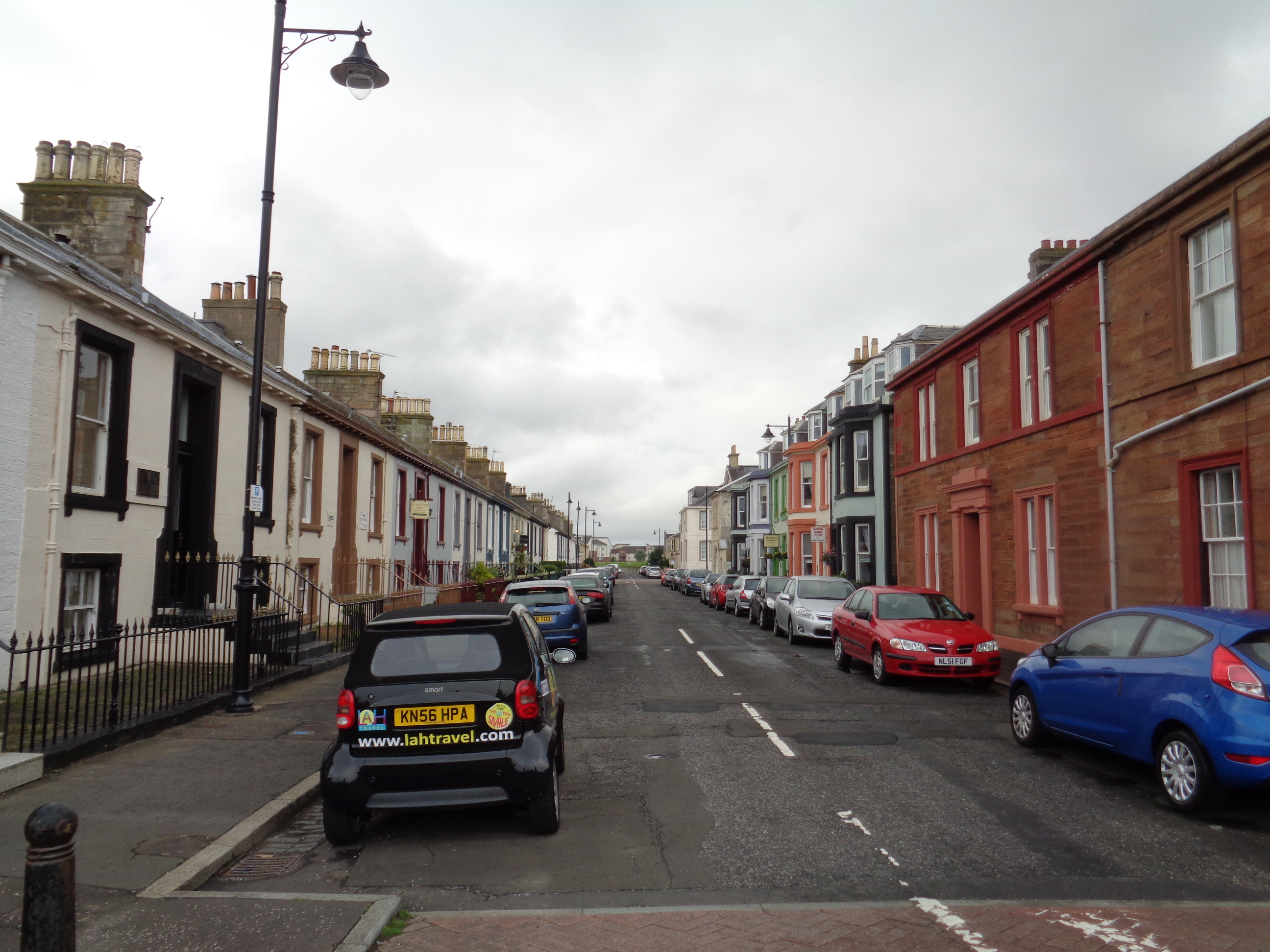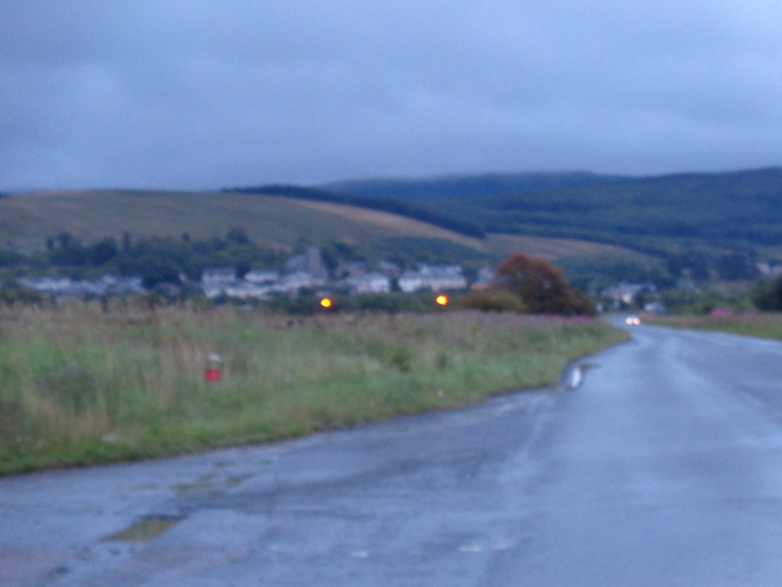 We totter on these conundrums, and part ways. I head out towards Ayr’s seafront, a grand Victorian thing that matches the high street. There are dozens of old Victorian hotels that haven’t lost too much of their splendour, and the place carries a little more grace than Rothesay. It’s been dry since I’ve arrived, but the drizzle starts to return. Not wishing to wash away in it, I head out of Ayr towards the south-east. I’m not sure where to stop, but a degree of dusk is settling down.