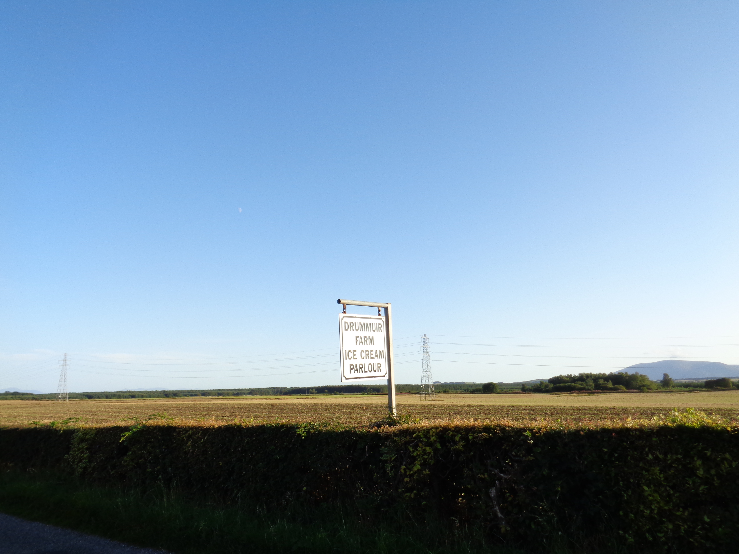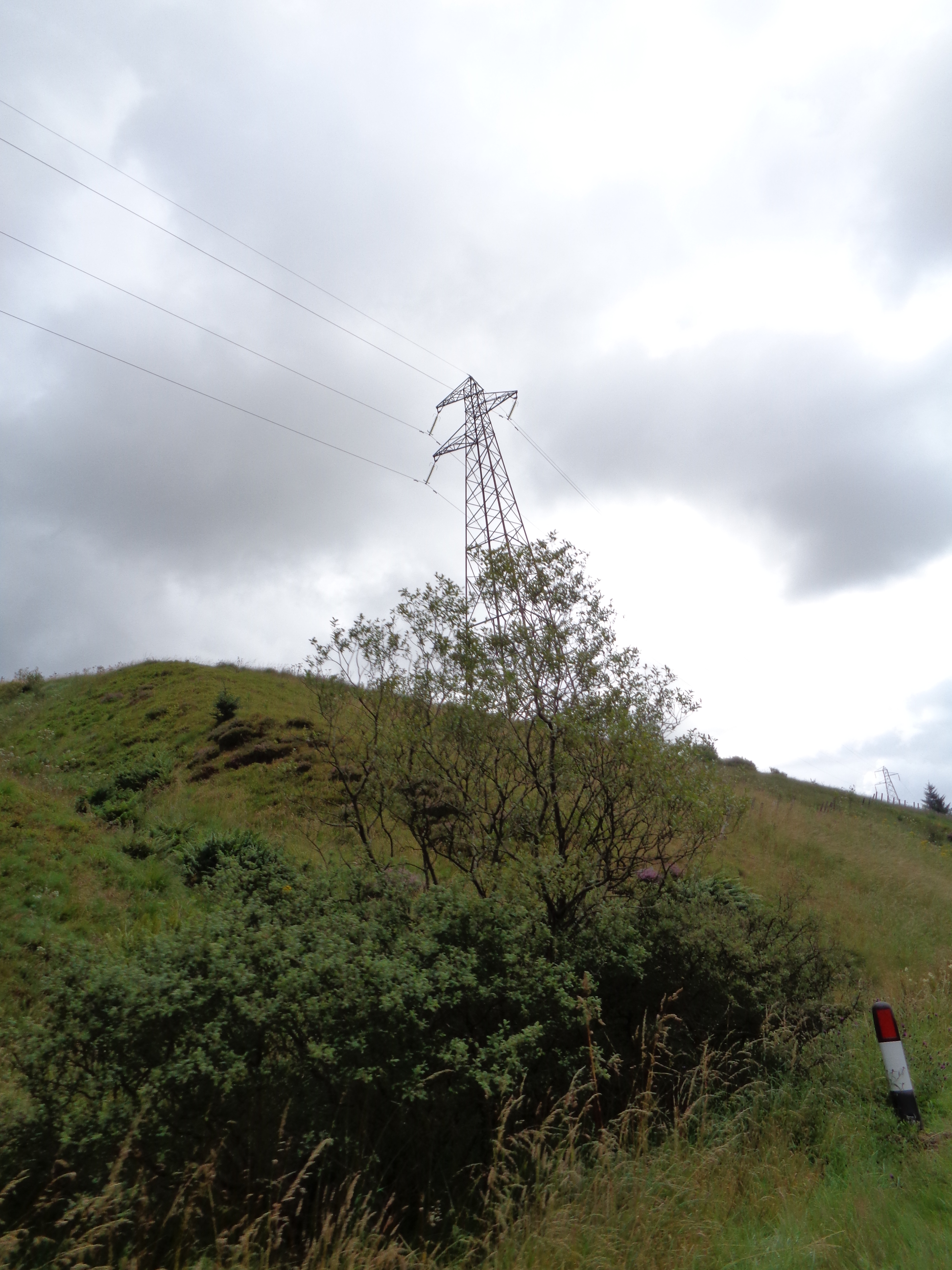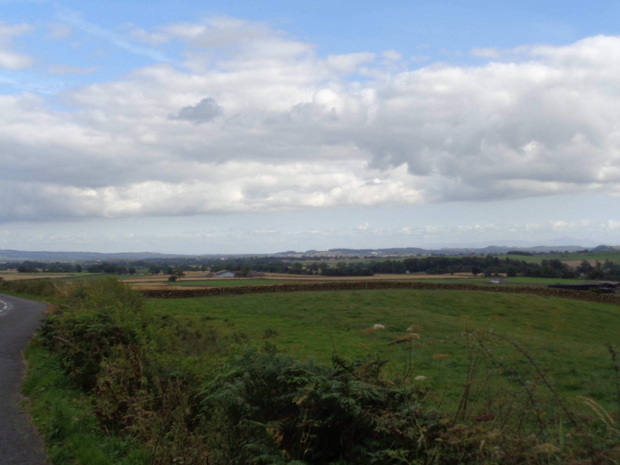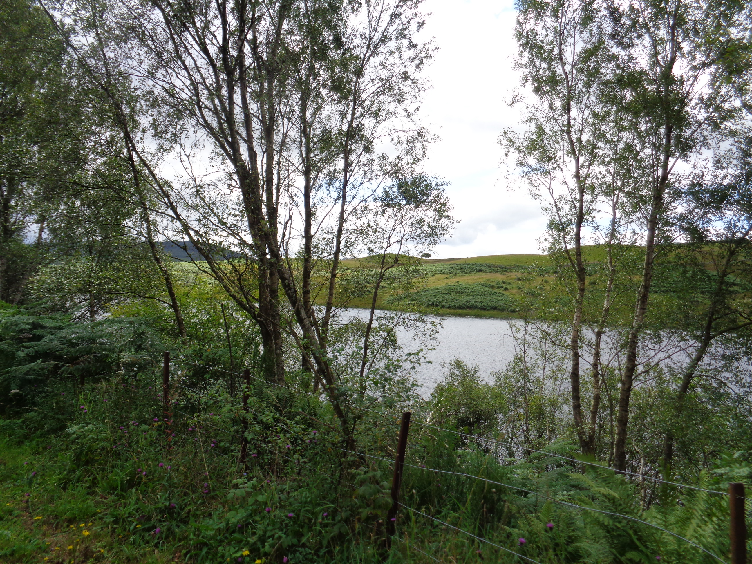 The countryside leaving Dalmellington has been farmed with cattle, as has much of Ayrshire, and it gently slopes here and there with a pleasant though familiar aspect: green, farmed fields give way at their peaks to the beginnings of gentle mountains, marked with bursts of trees and shrubs. Further along, the road drills through a valley, small mountains sloping into the distance. It’s a relatively quiet road and there’s no threat of rain today. I pedal along gently, slowly building up a pace.